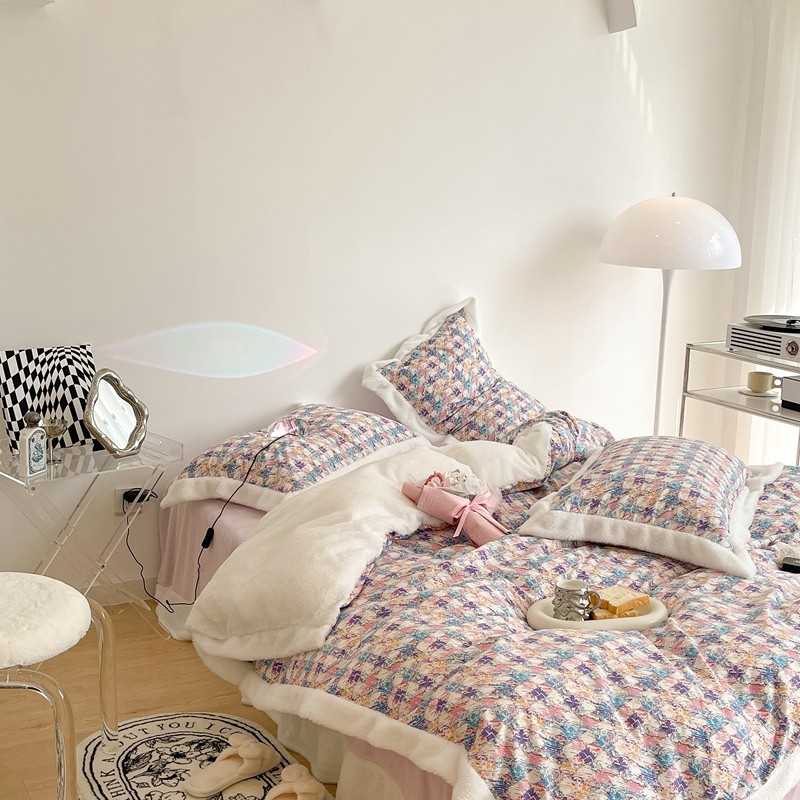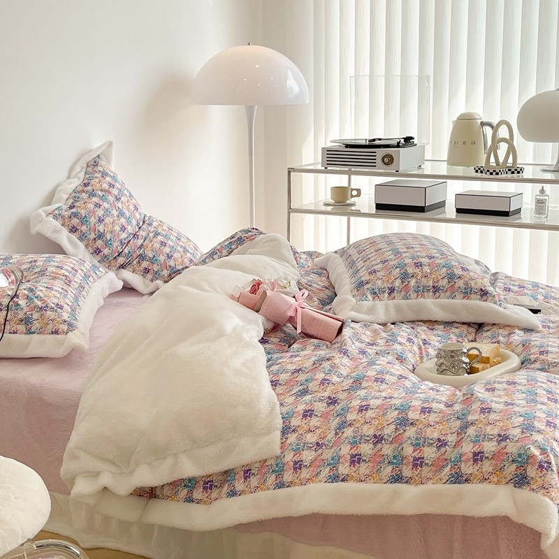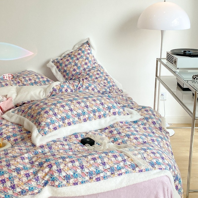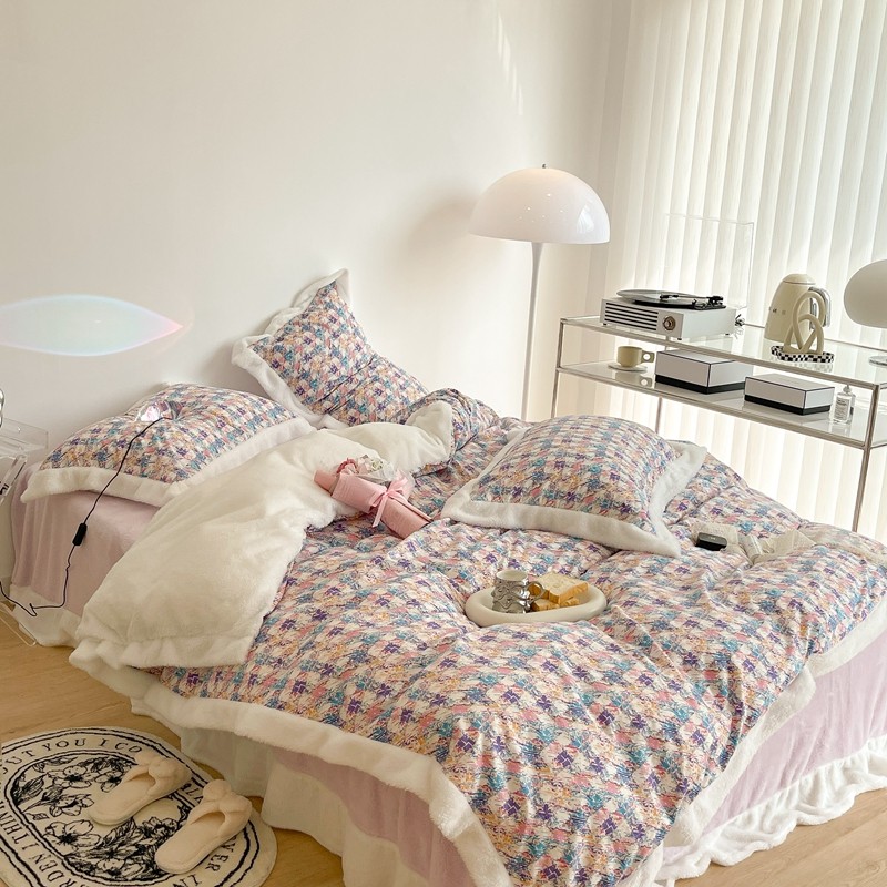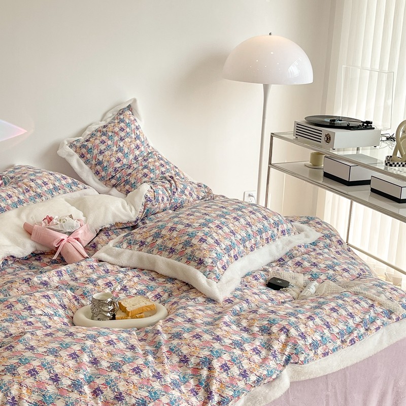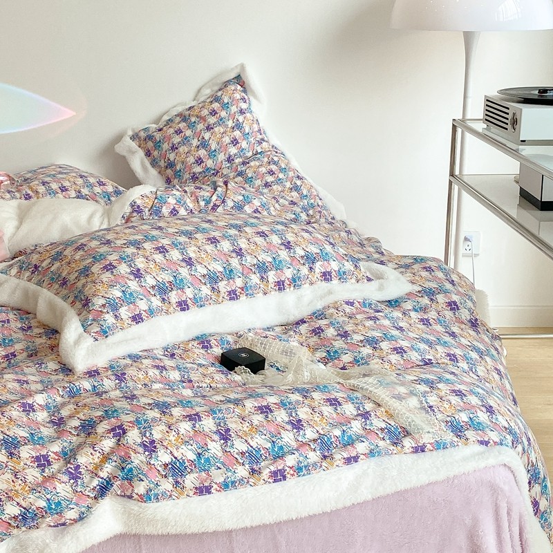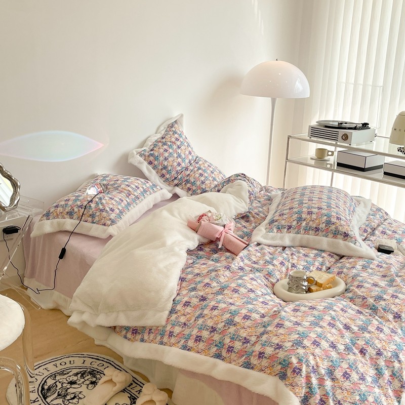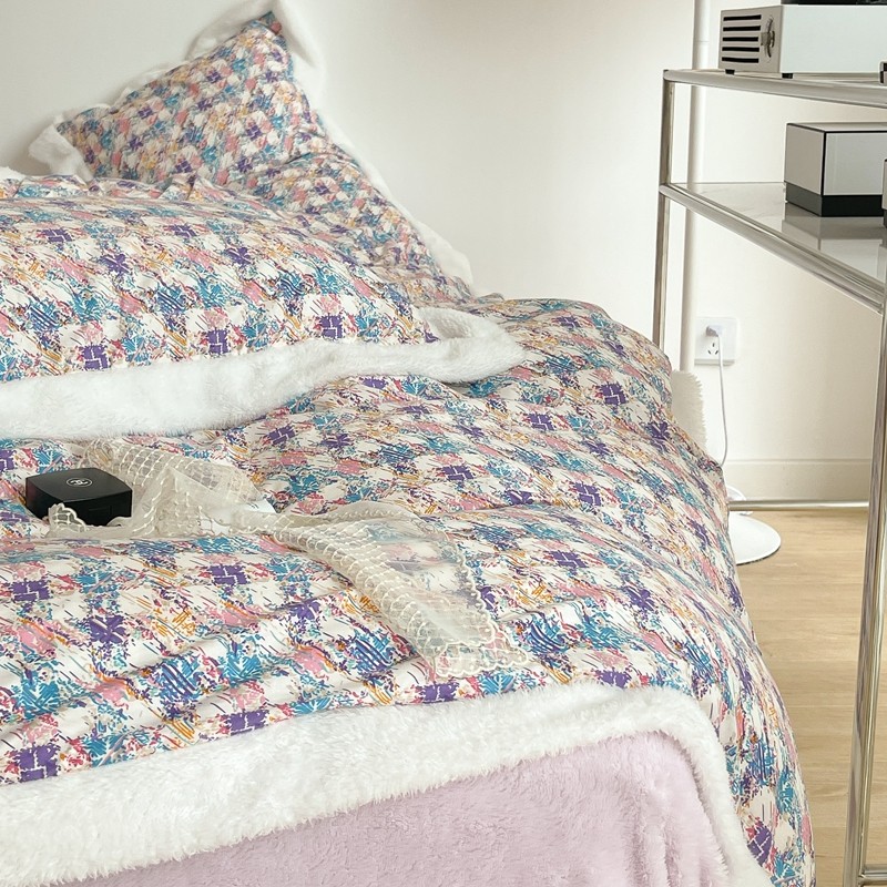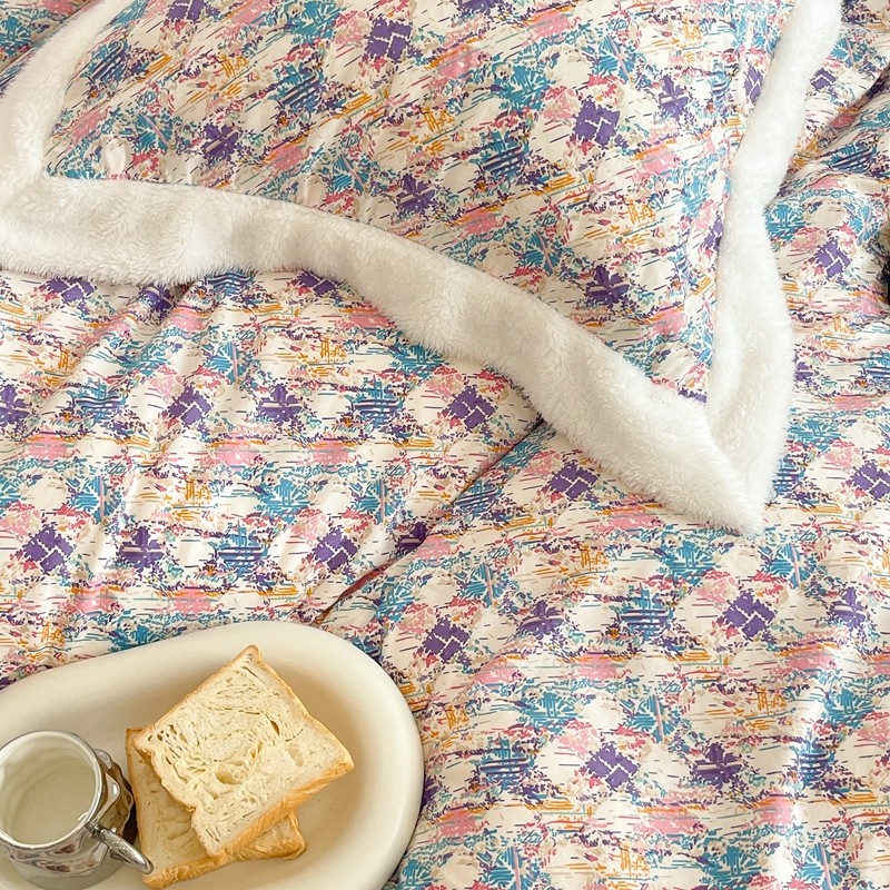 昔可家纺 2021新款小香香风棉加泰迪绒四件套 香香紫