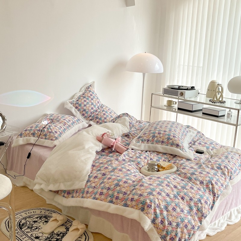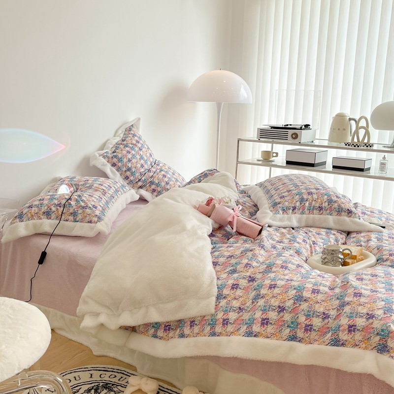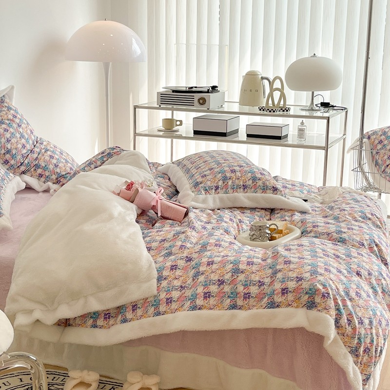 (总)昔可家纺 2024新款印花牛奶绒四件套系列-洛丽塔风,萝莉小兔,小熊烘焙屋,小熊玩偶屋