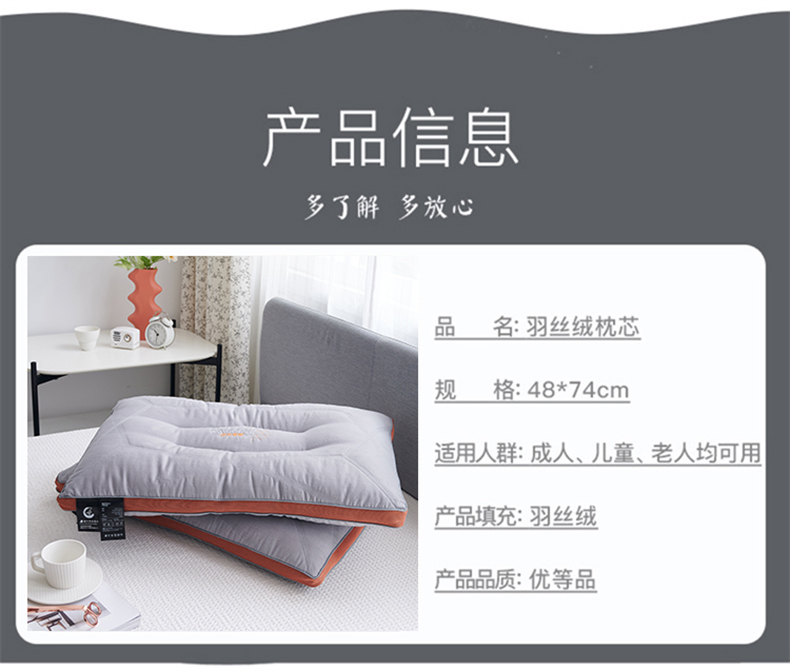 当前位置: 91家纺网 > 商品网购 > 枕头/枕芯/保健枕/颈椎枕 > 普通枕芯 > 赛格时代家居 竹炭纤维羽丝绒枕 枕头 低枕