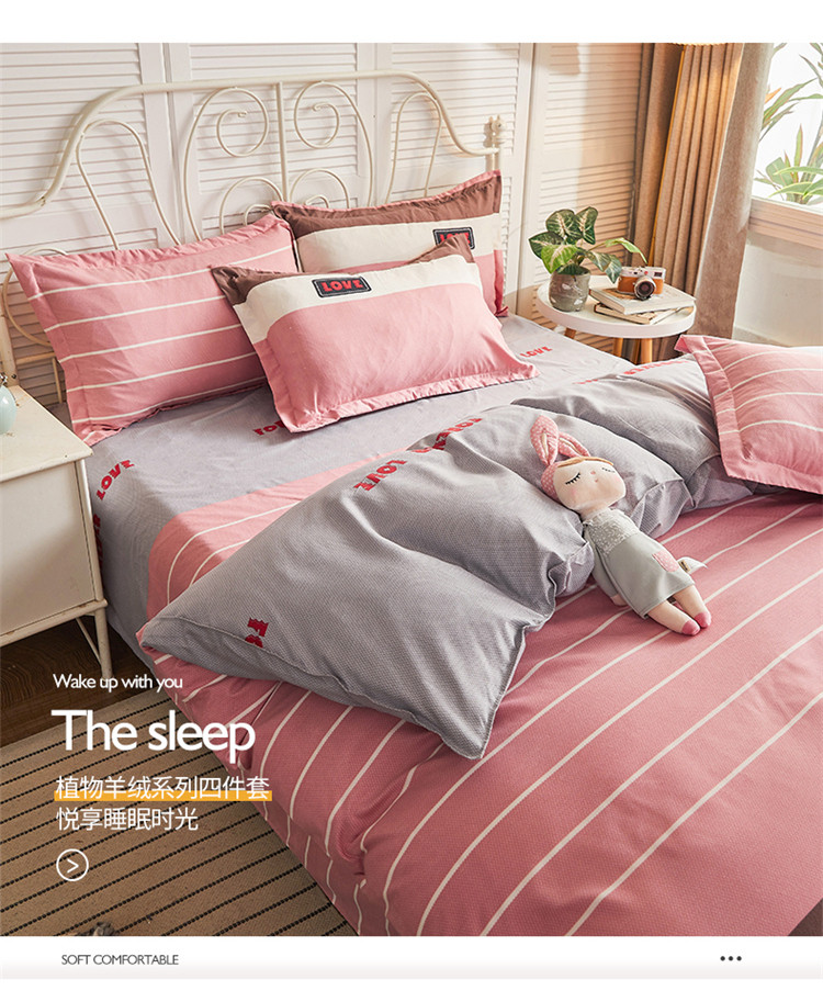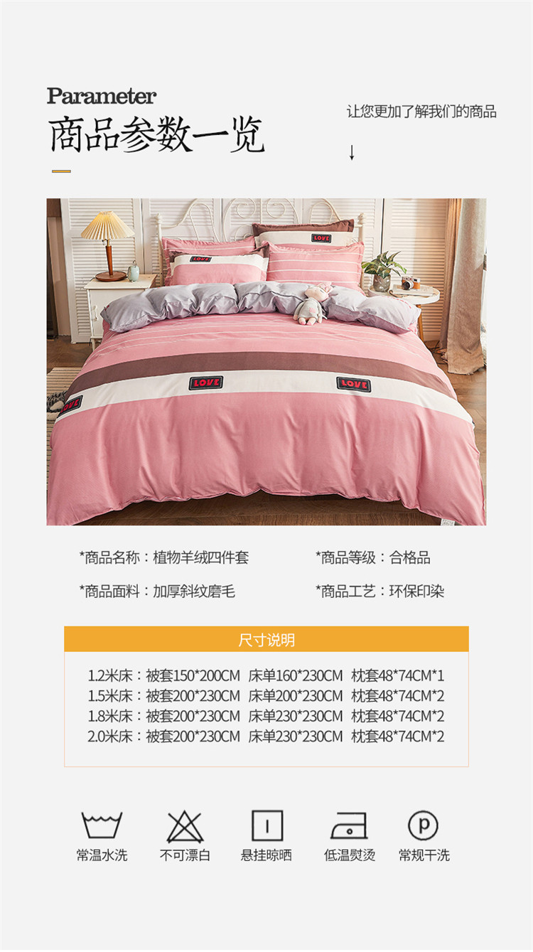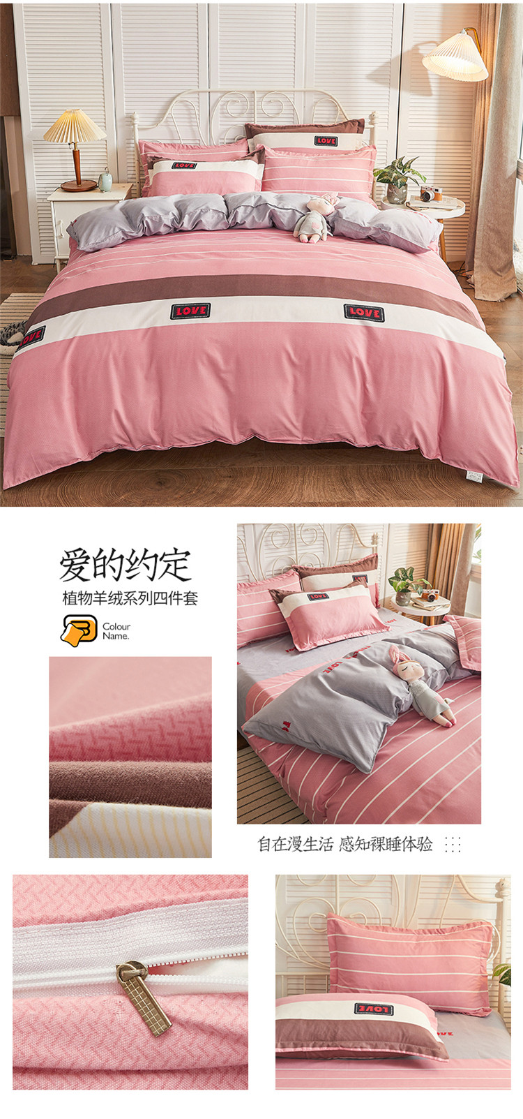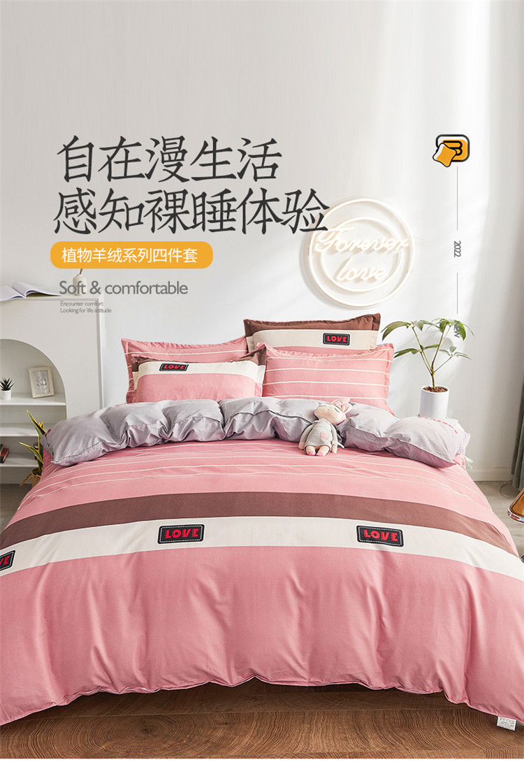 当前位置: 91家纺网 > 商品网购 > 床品套件 > 四件套 > 化纤普通四件套 > 优家居 2023新款植物羊绒四件套 爱的约定