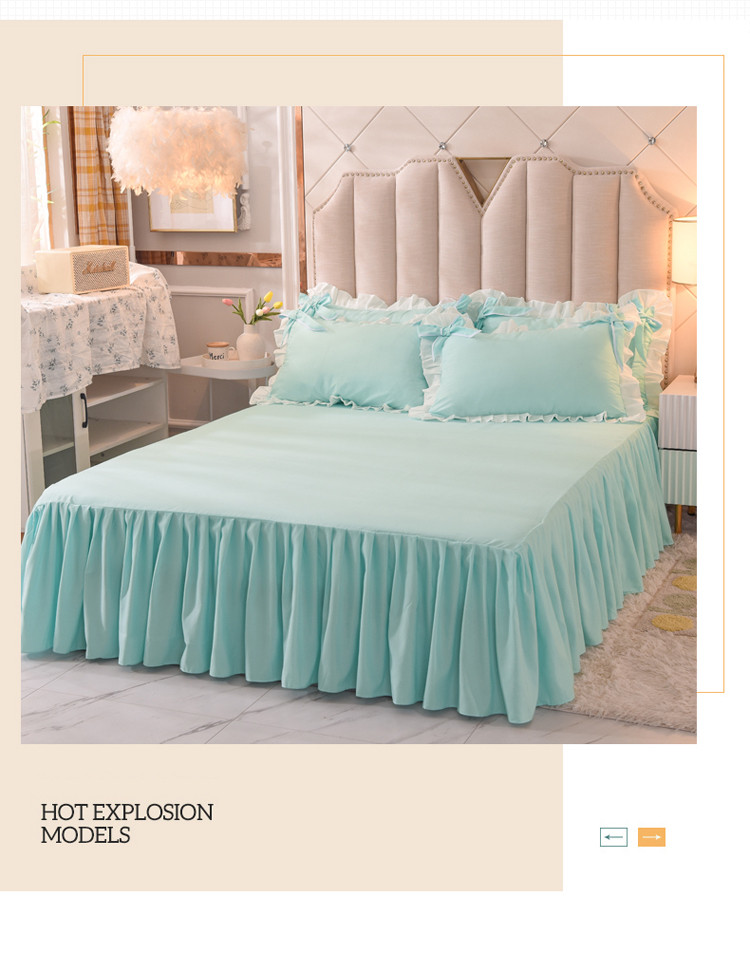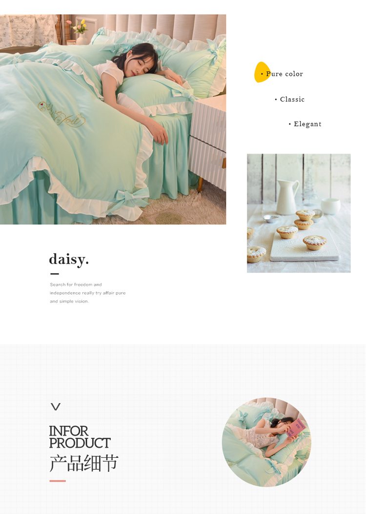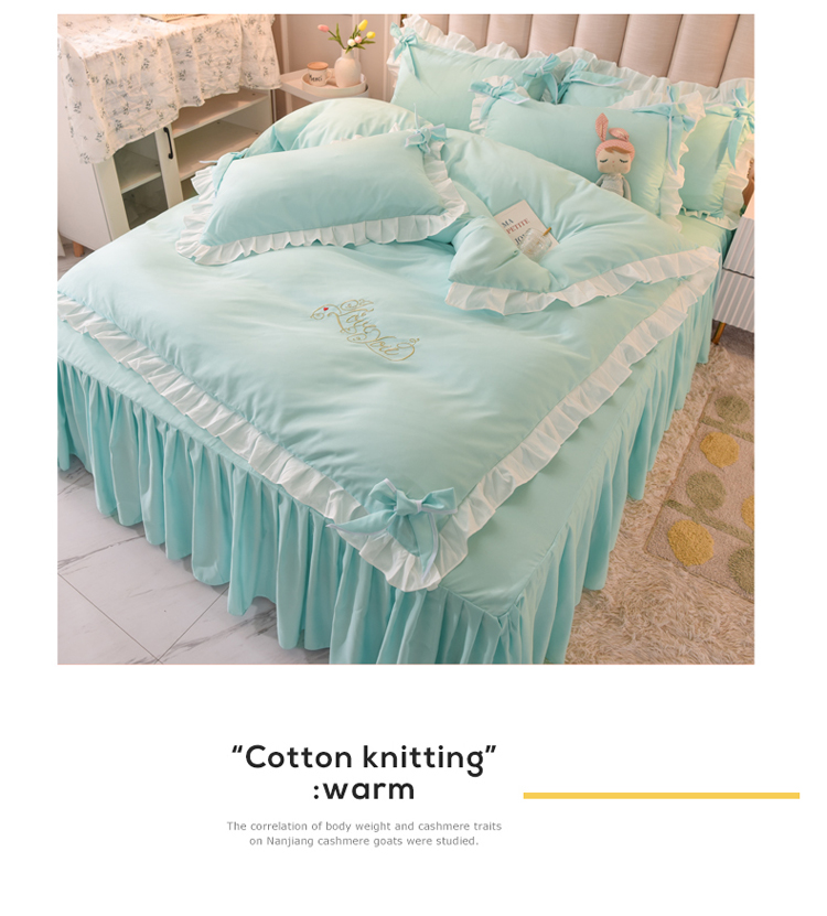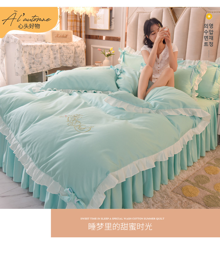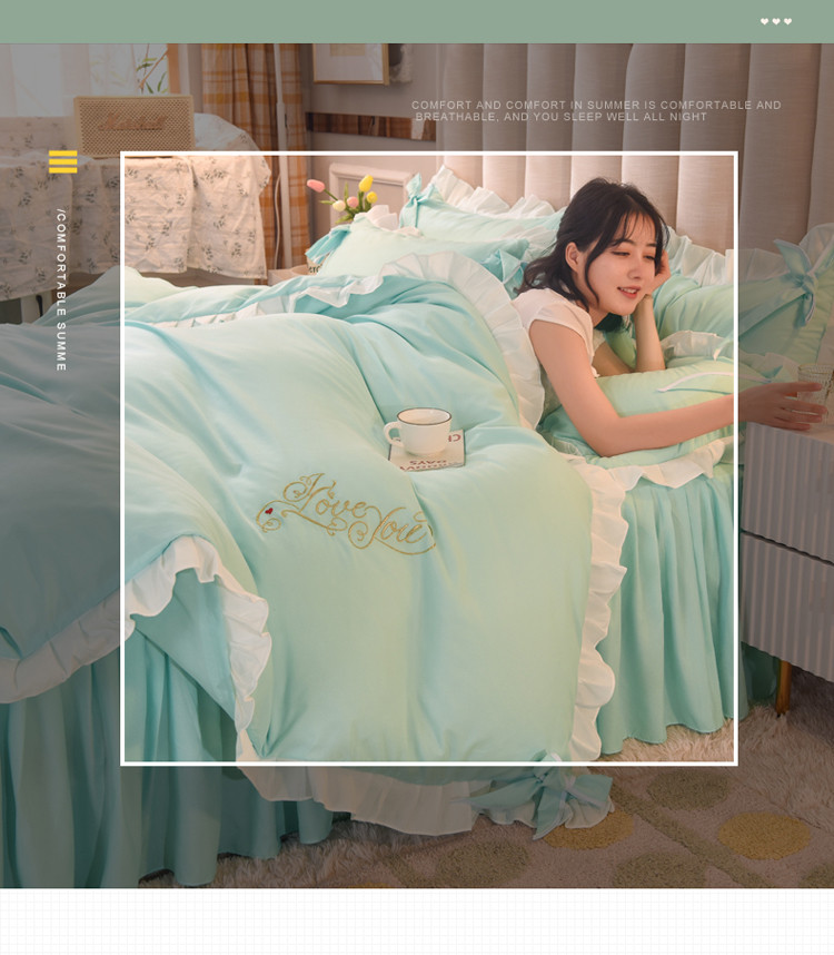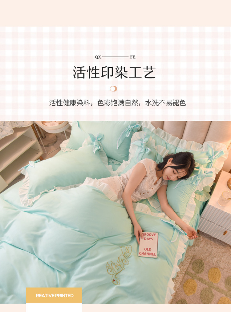 当前位置: 91家纺网 > 商品网购 > 床品套件 > 四件套 > 水洗棉四件套 > 欧冠 2022新款潮系列爱巢款床裙款刺绣四件套 碧绿