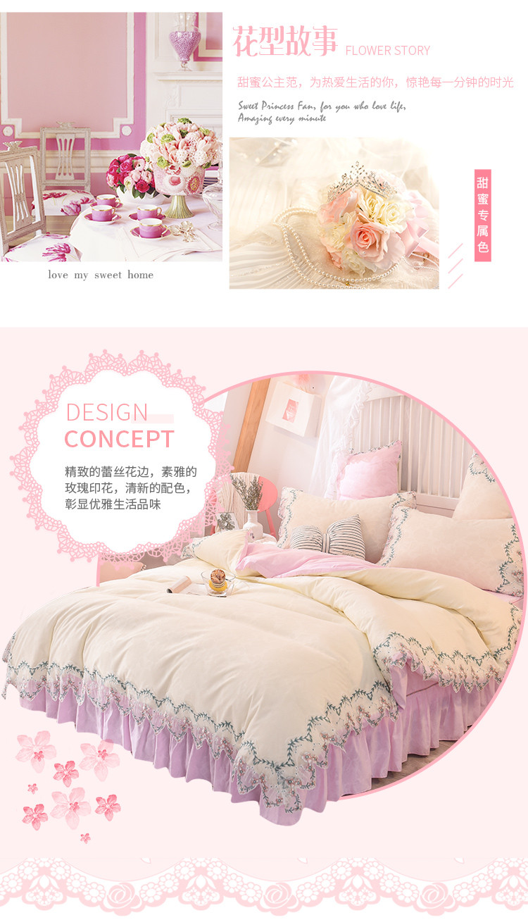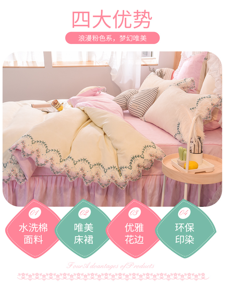 当前位置: 91家纺网 > 商品网购 > 床品套件 > 四件套 > 水洗棉四件套 > 欧冠 2022新款韩版水洗棉蕾丝玫瑰秘密系列四件套 玫瑰秘密-粉白
