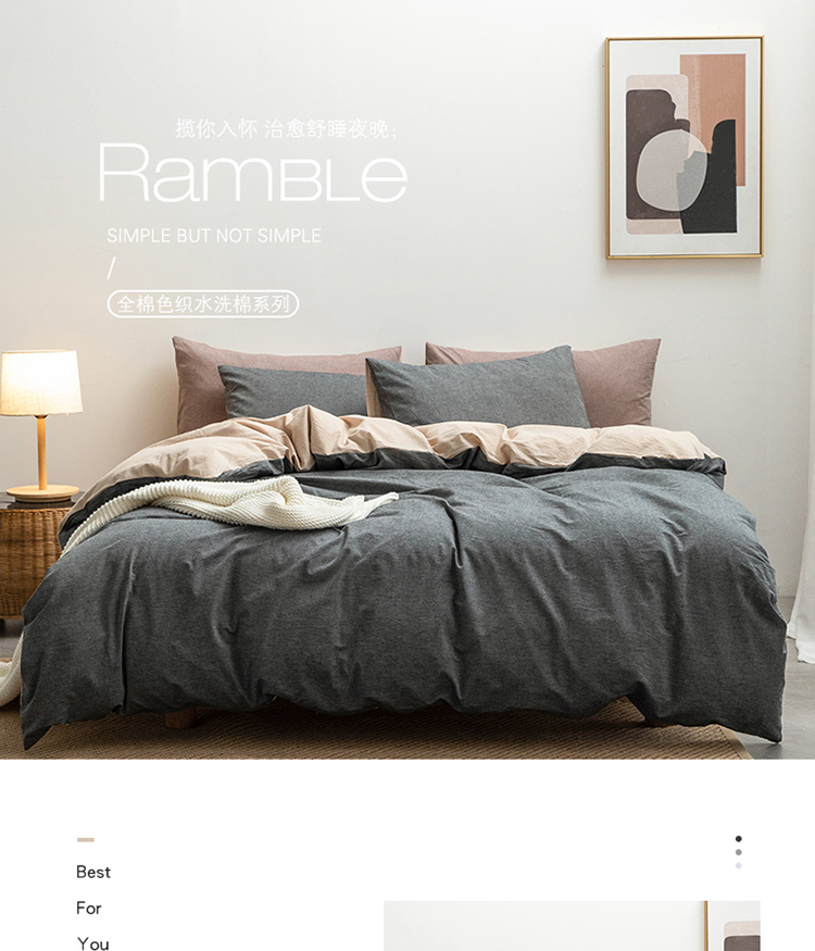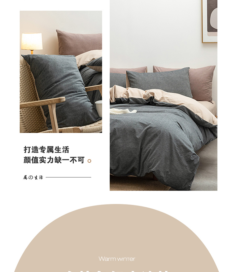当前位置: 91家纺网 > 商品网购 > 床品套件 > 四件套 > 全棉活性四件套 > 棉邦 2022新款全棉色织水洗棉四件套 深灰+卡其