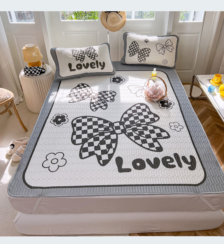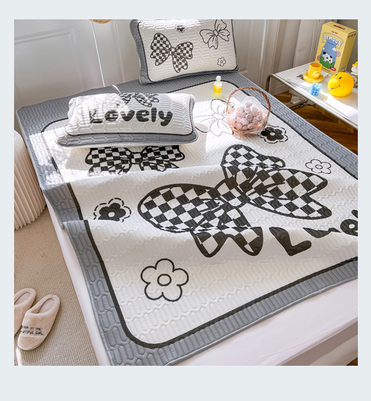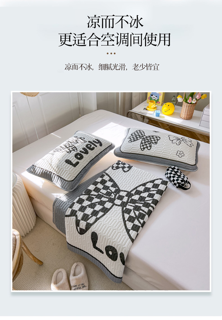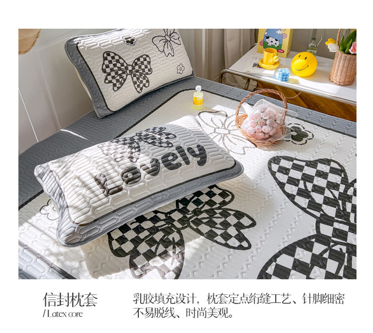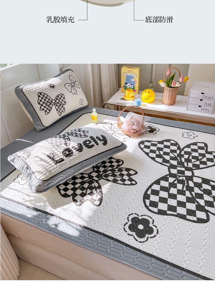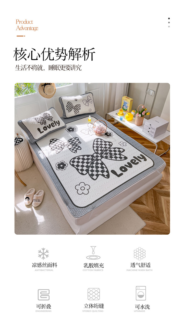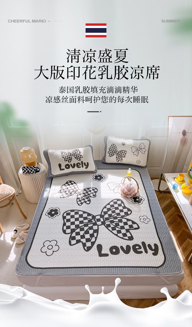 寐居2022新款凉感丝0.5乳胶大版乳胶凉席三件套韩式蝴蝶结