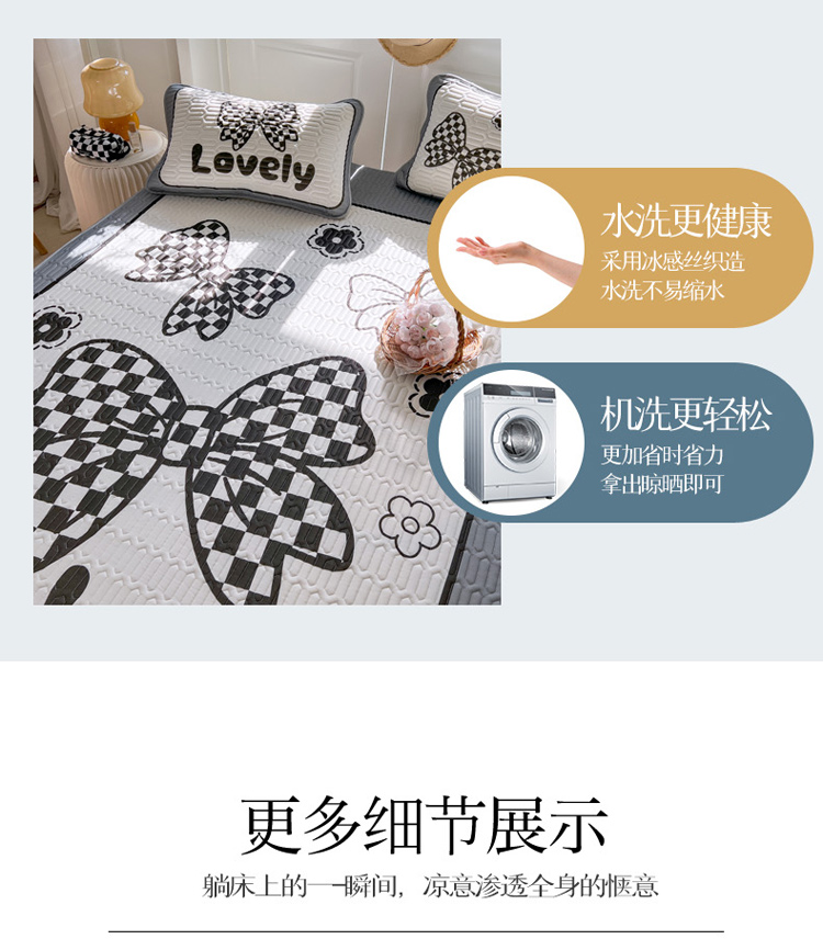 商品名称:寐居2022新款凉感丝0.5乳胶大版乳胶凉席三件套韩式蝴蝶结