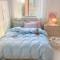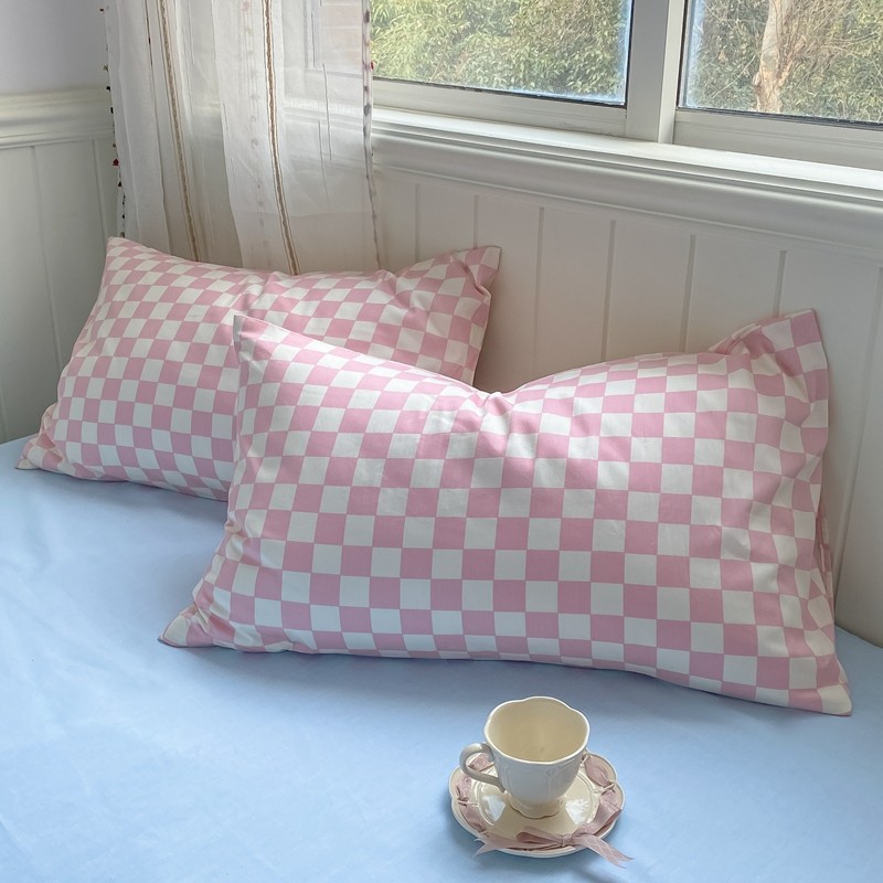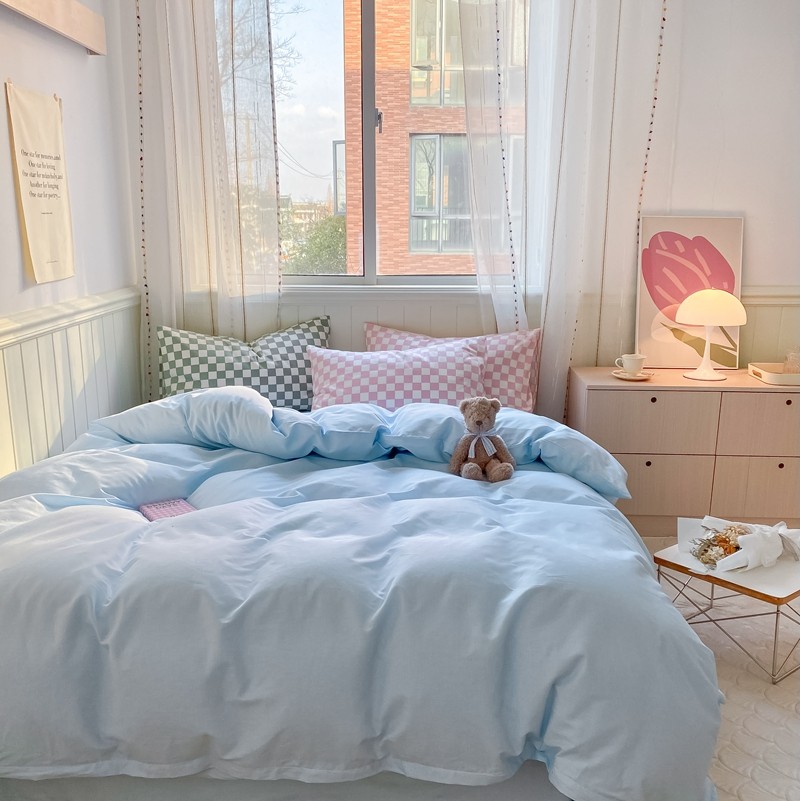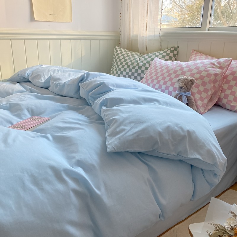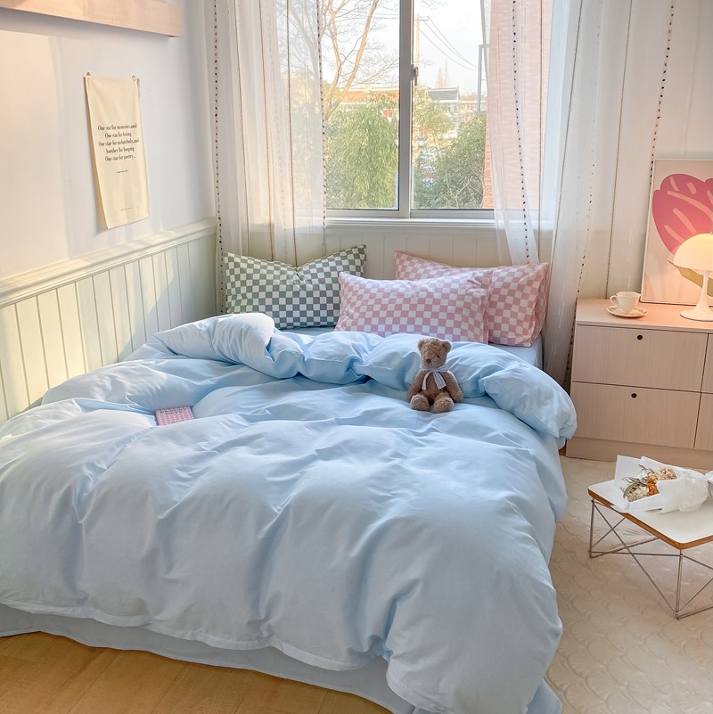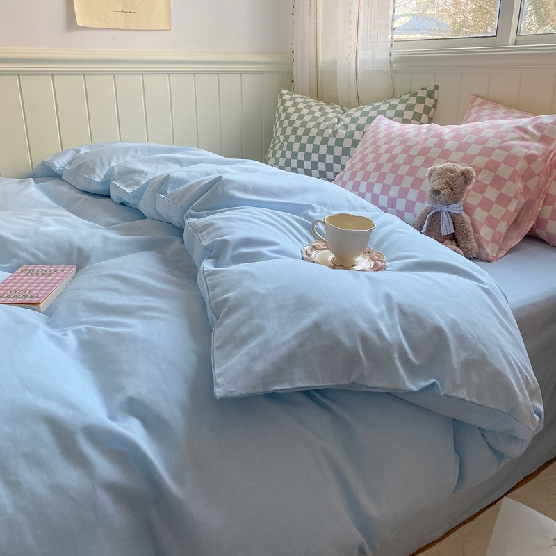 昔可2022新款混搭纯色棋盘格套件四件套 奶蓝粉棋盘