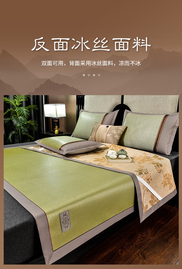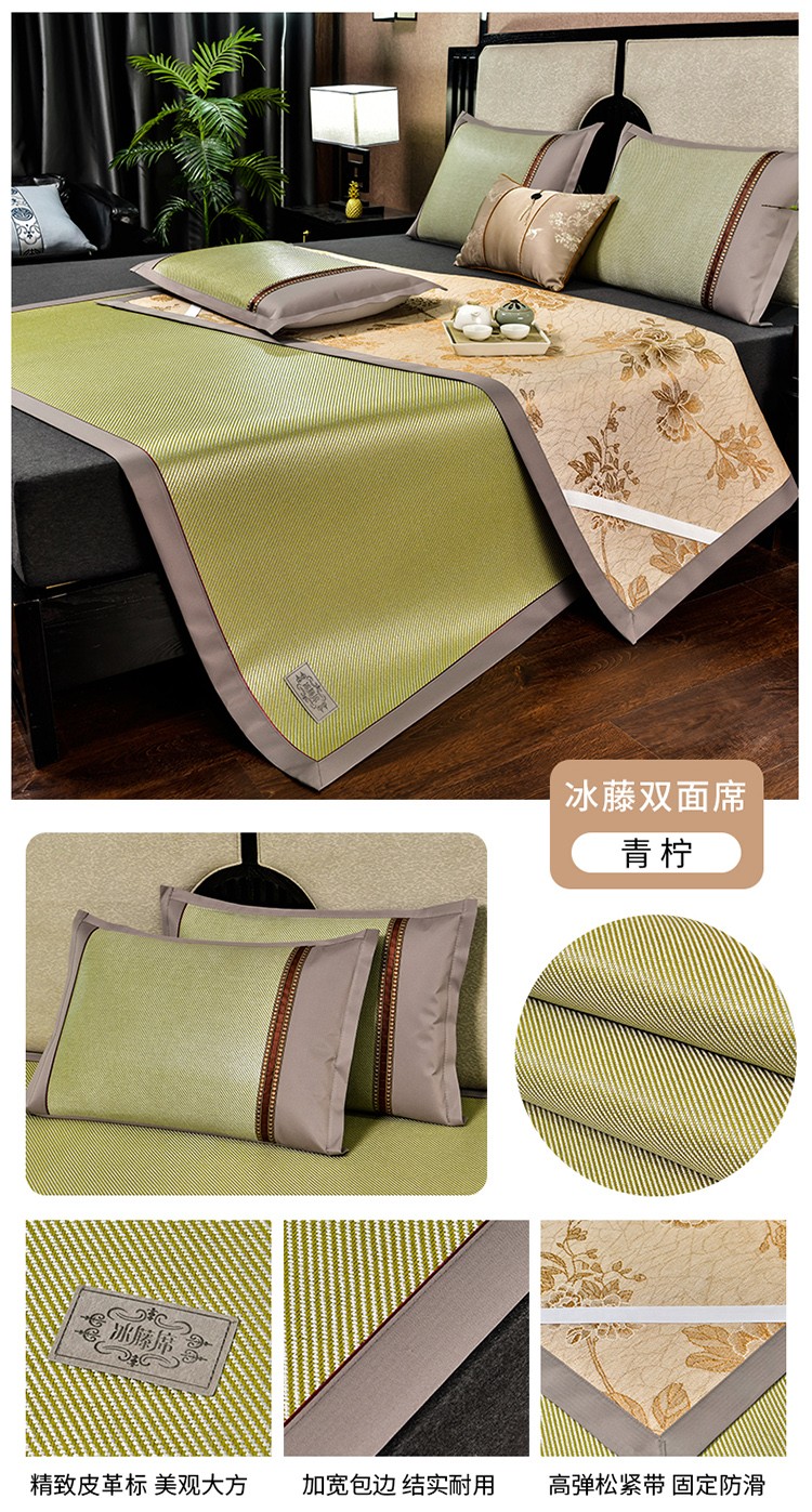 2023新款夏日冰点-冰藤双面席凉席藤席竹席冰丝席乳胶席,咖色,蓝色,绿色,香槟