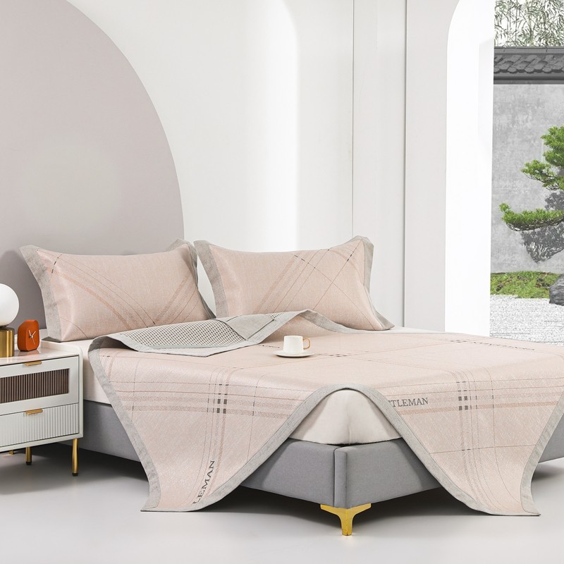 馨蕊 2022新款高端可水洗抗菌冰感席四件套 英伦时光-咖
