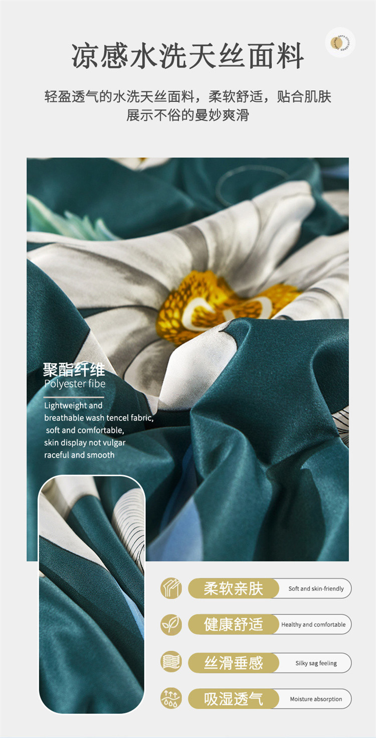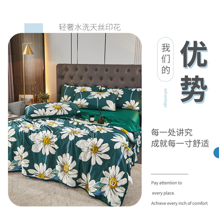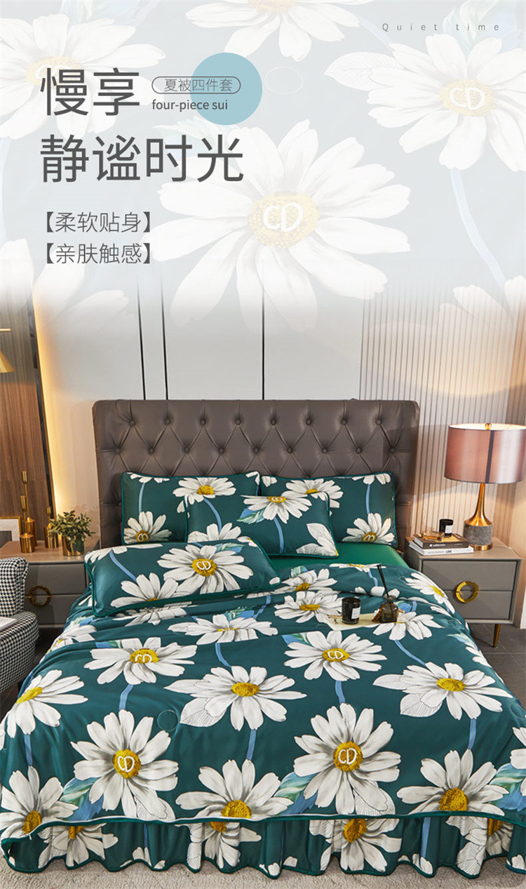 • 91家纺网 家纺一手货源 找家纺 铠畅 2022新款天丝夏被四件套床裙 优雅盛夏