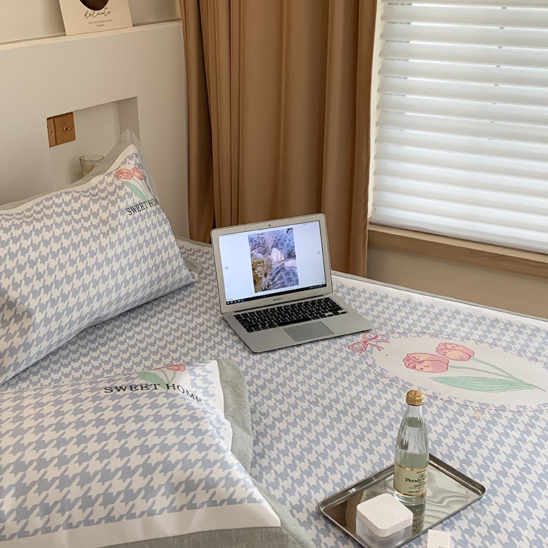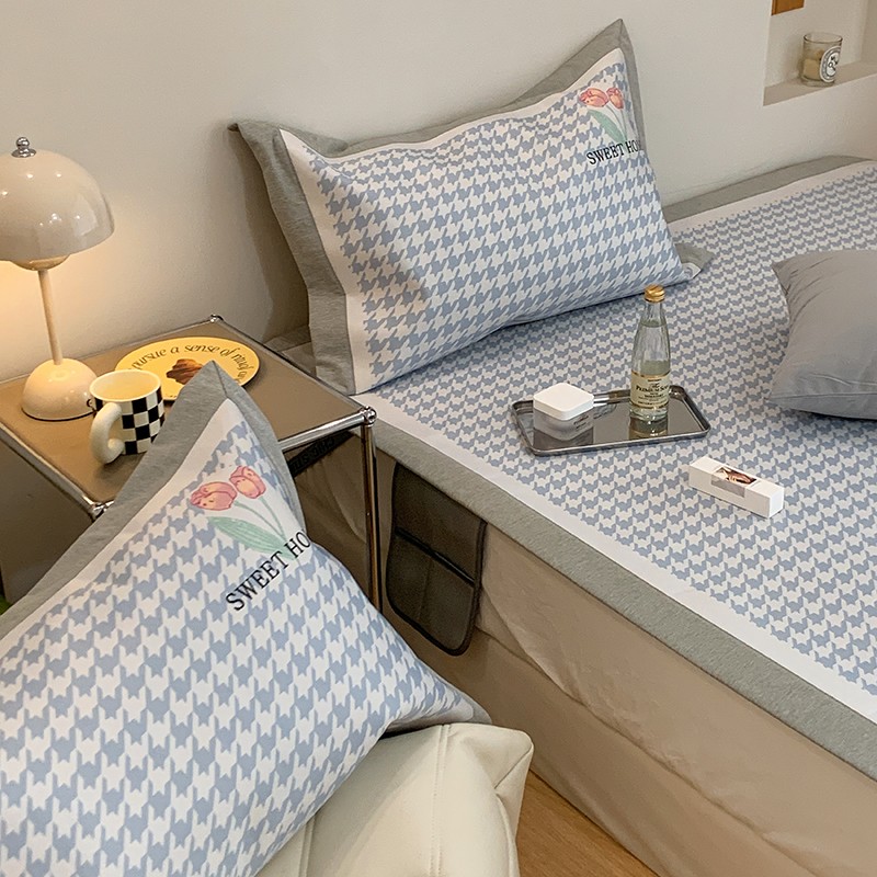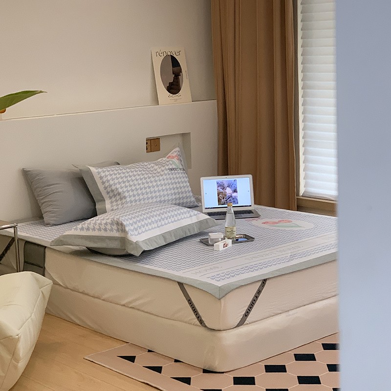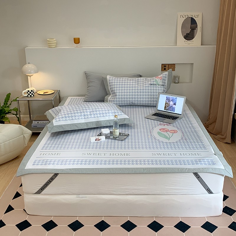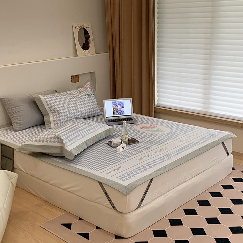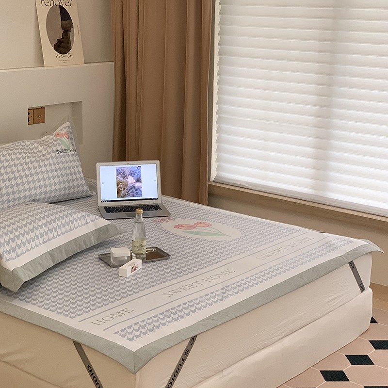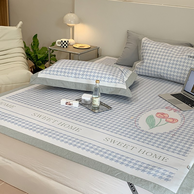 昔可 2022新款高端大版数码印花冰沐丝养生席 千鸟格郁金香