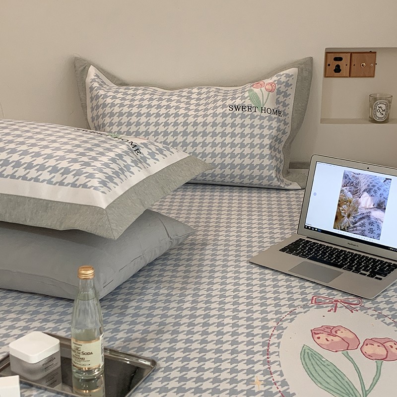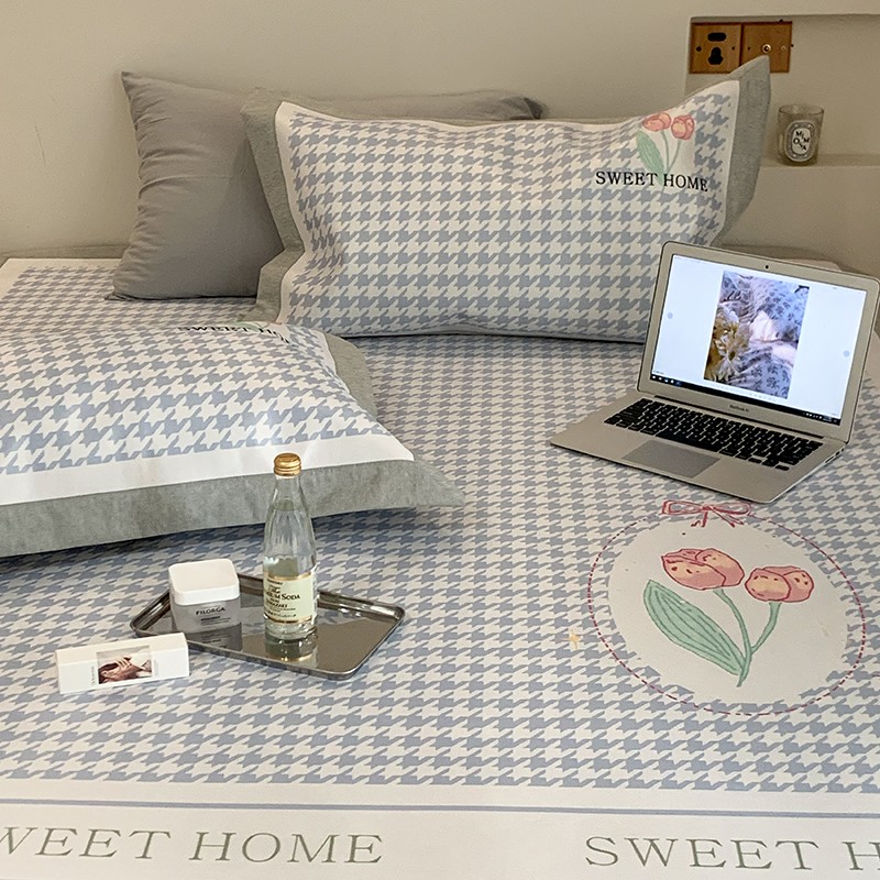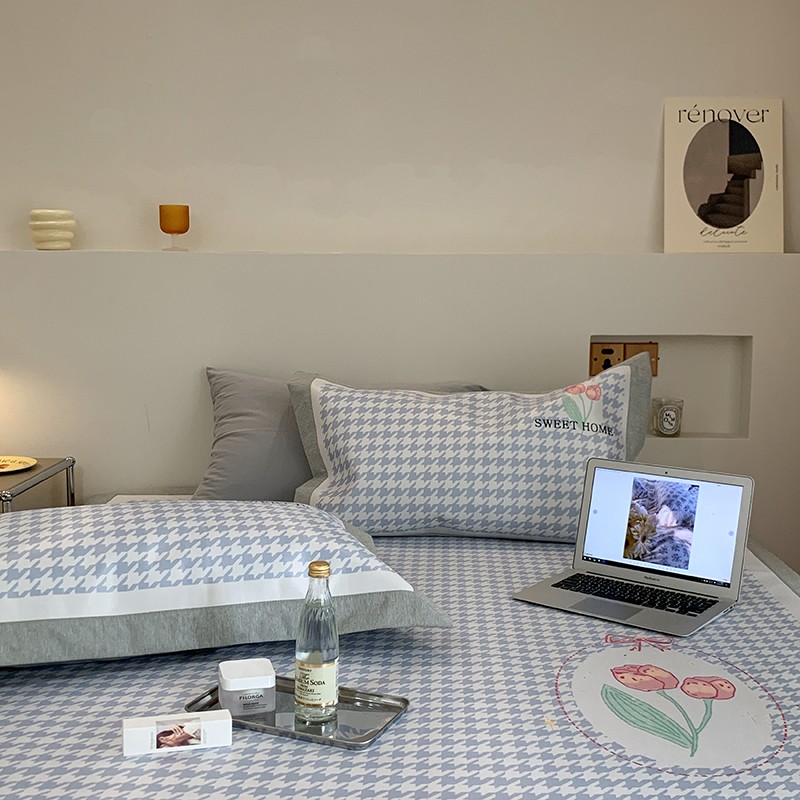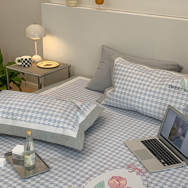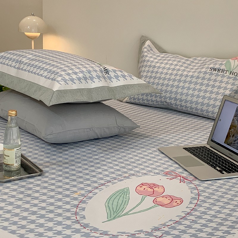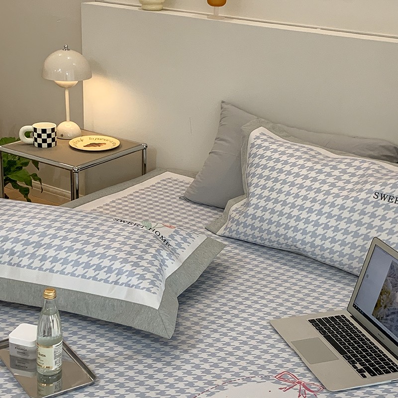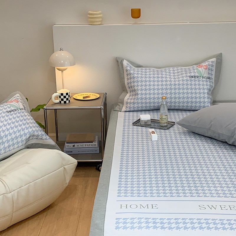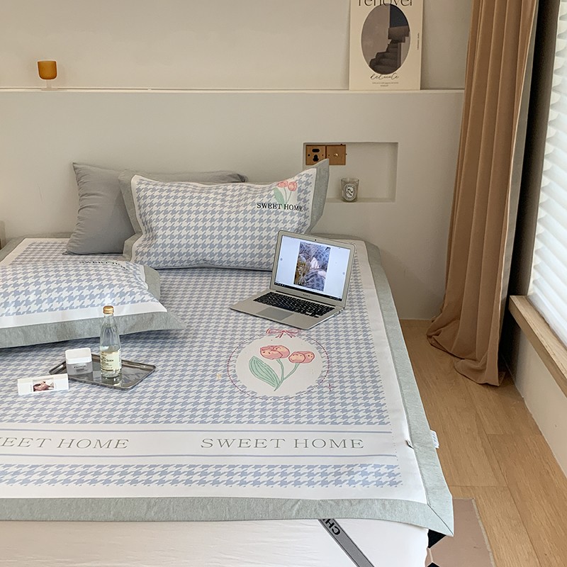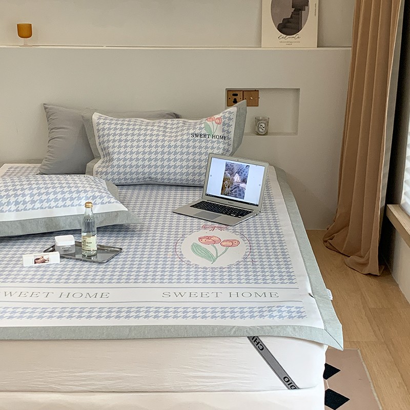 (总)昔可 2023新款全棉ins格子混搭系列四件套,ins简约绿格,粉蓝格,开心果格,学院格纹,粉绿格,海盐兰格,黄绿格,夏日蓝条,芝士黄条,紫芋泥芝士格