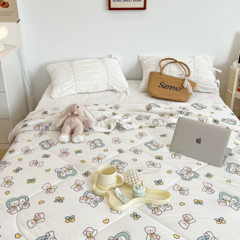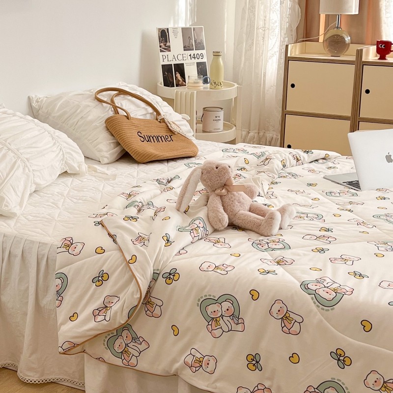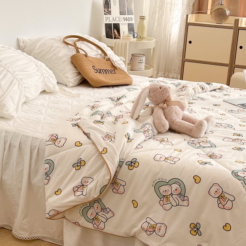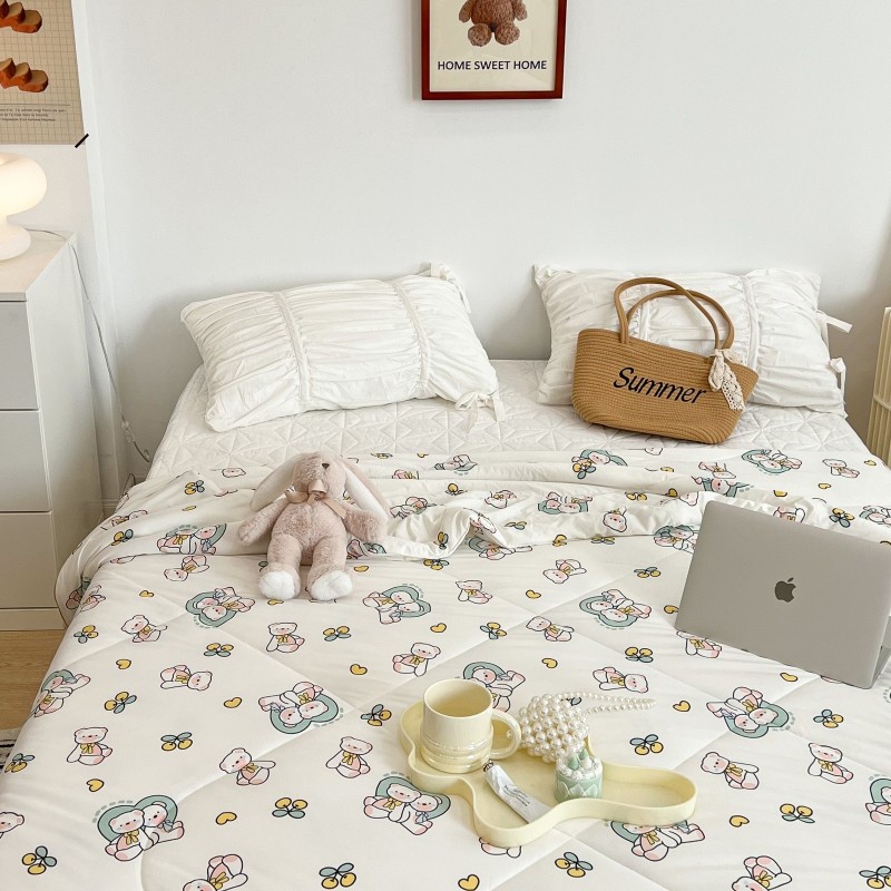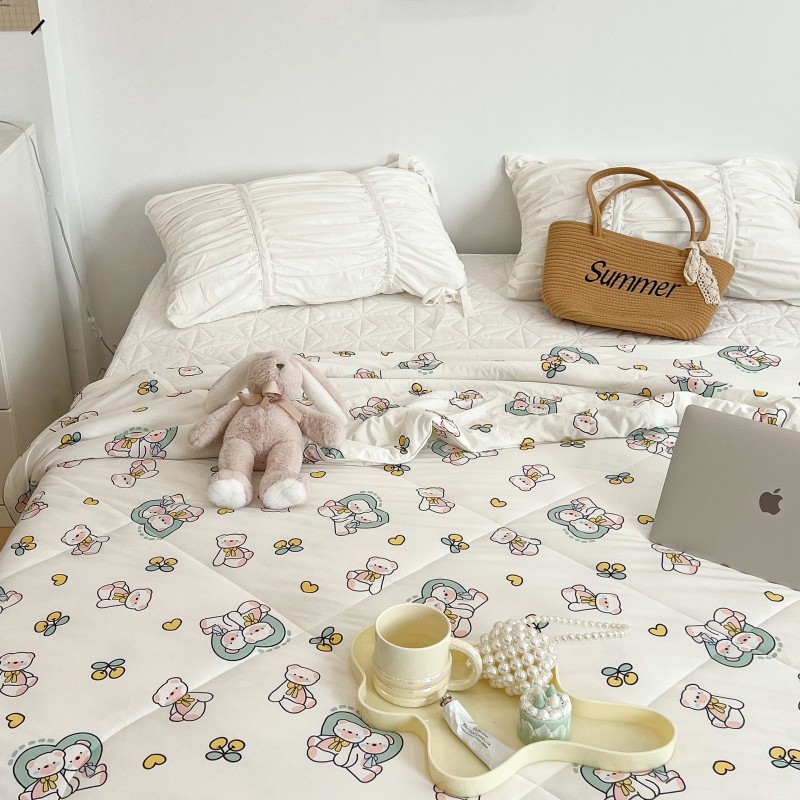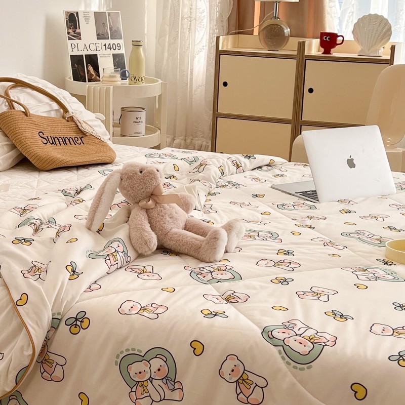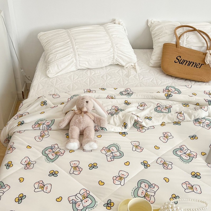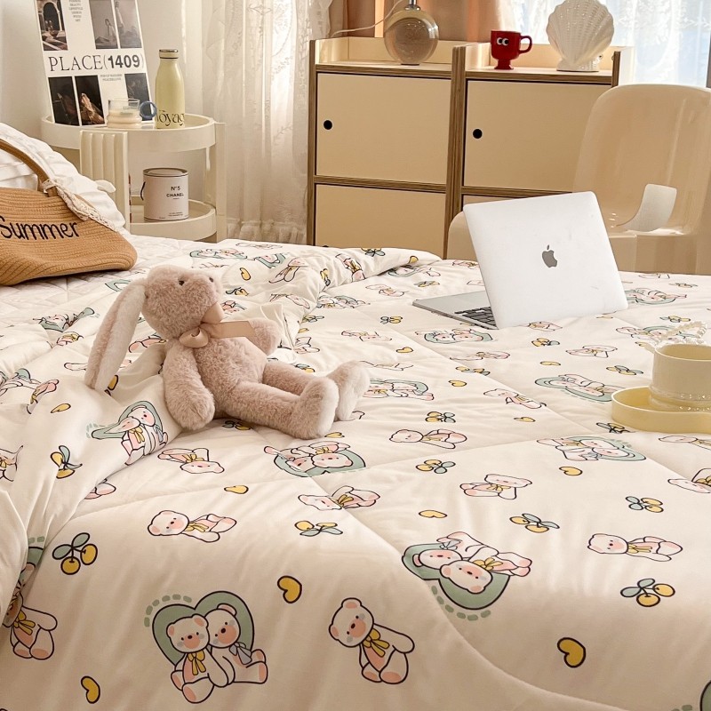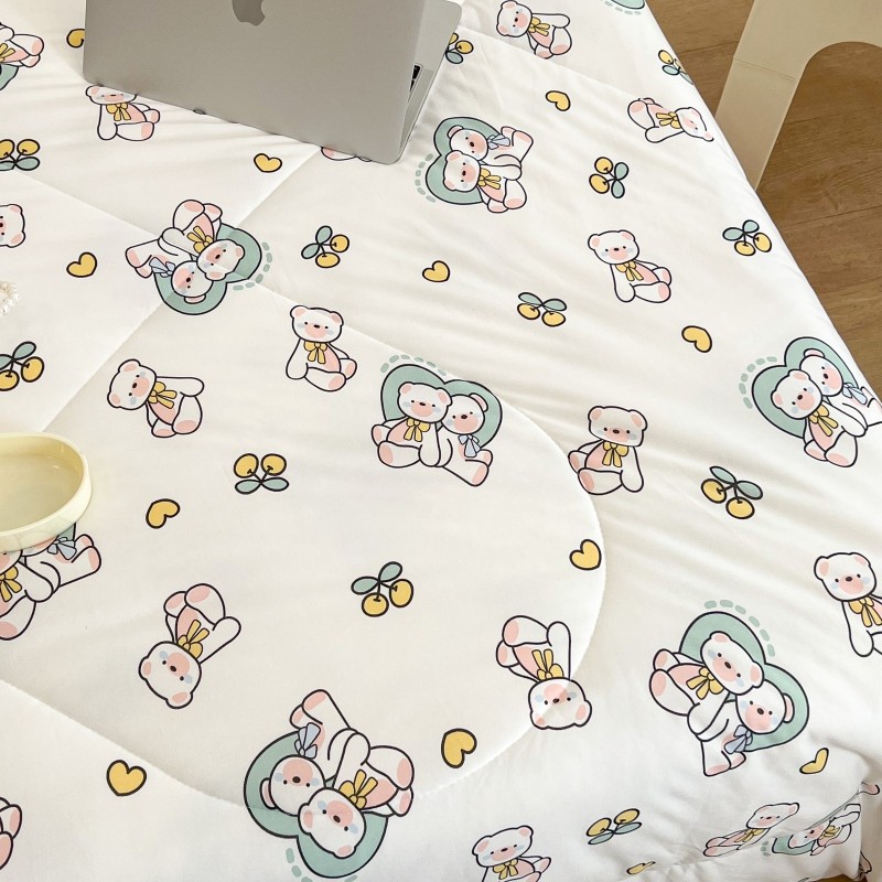 昔可 2022新款卡通印花牛奶丝针织夏被 恋恋熊