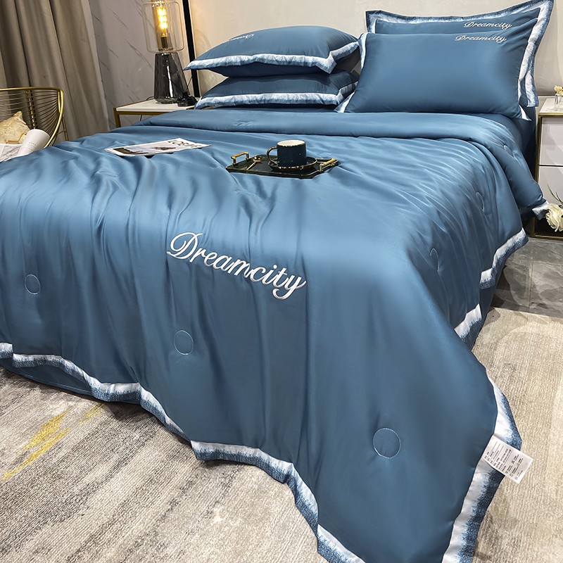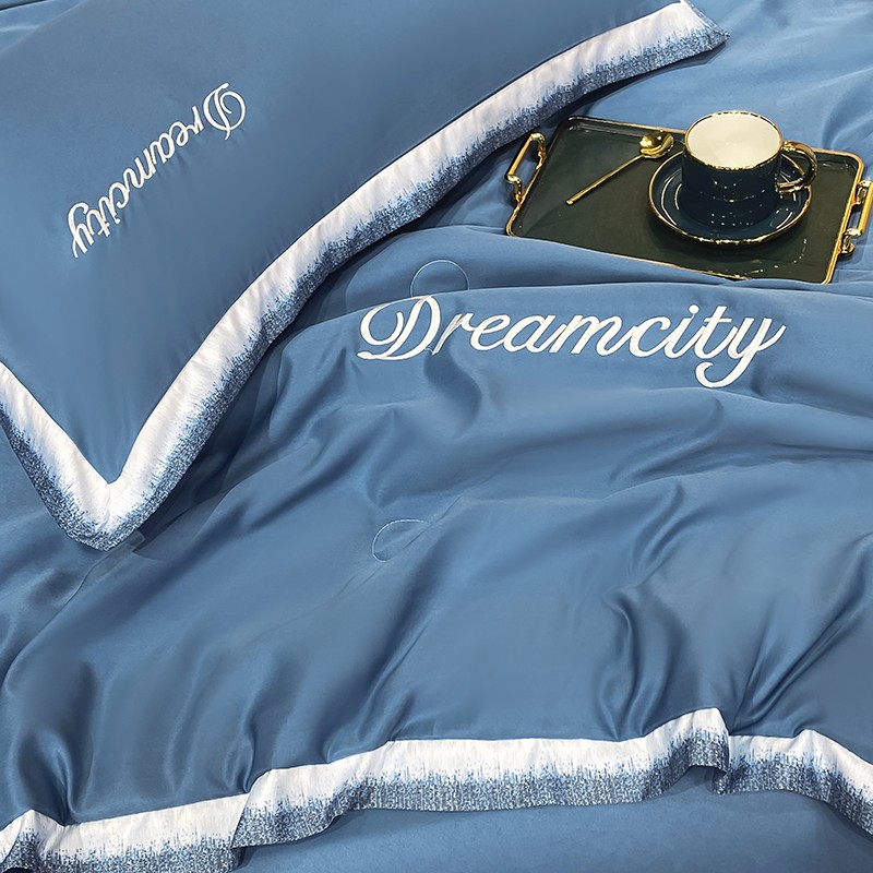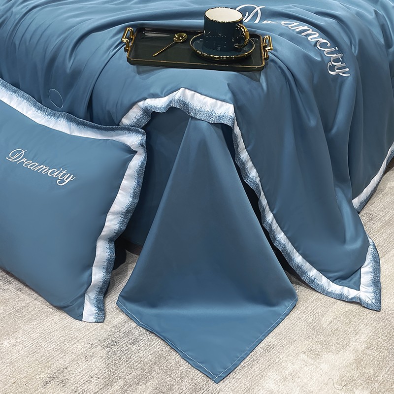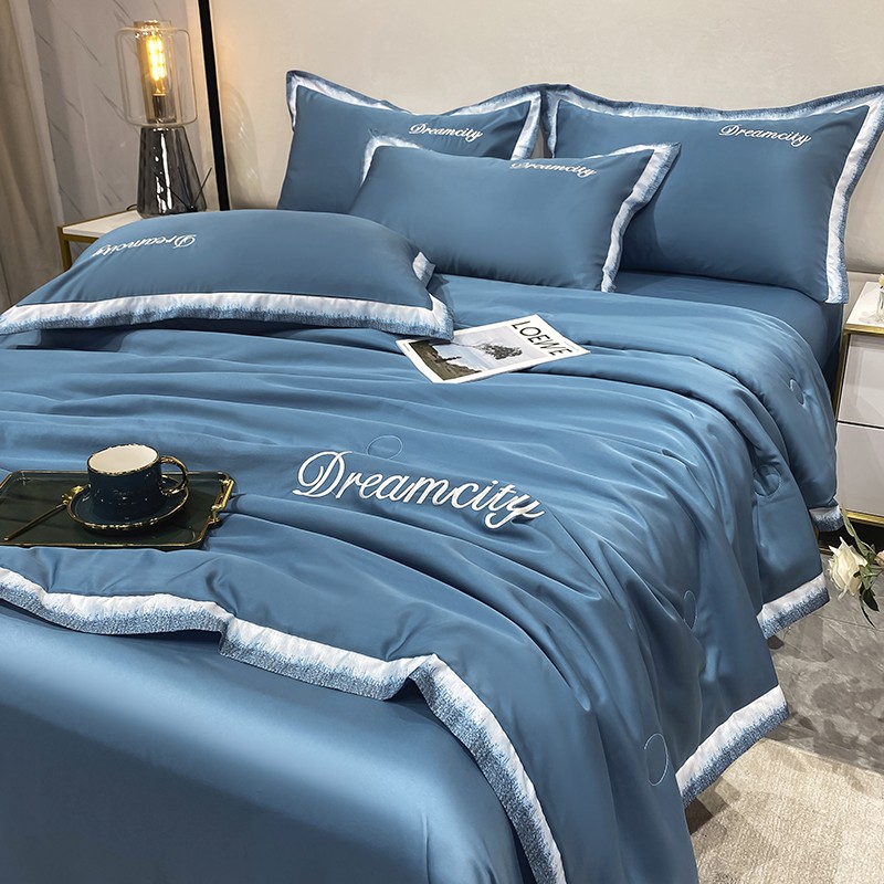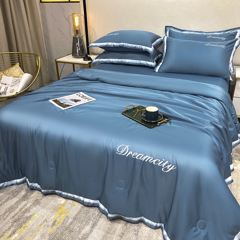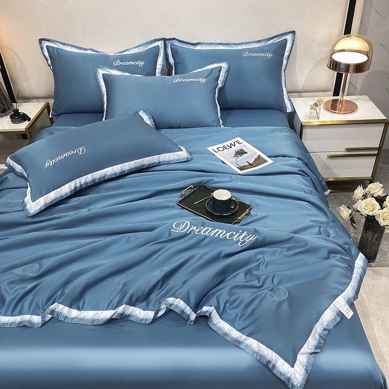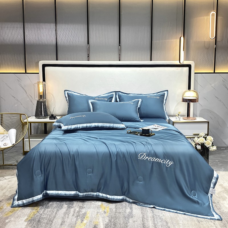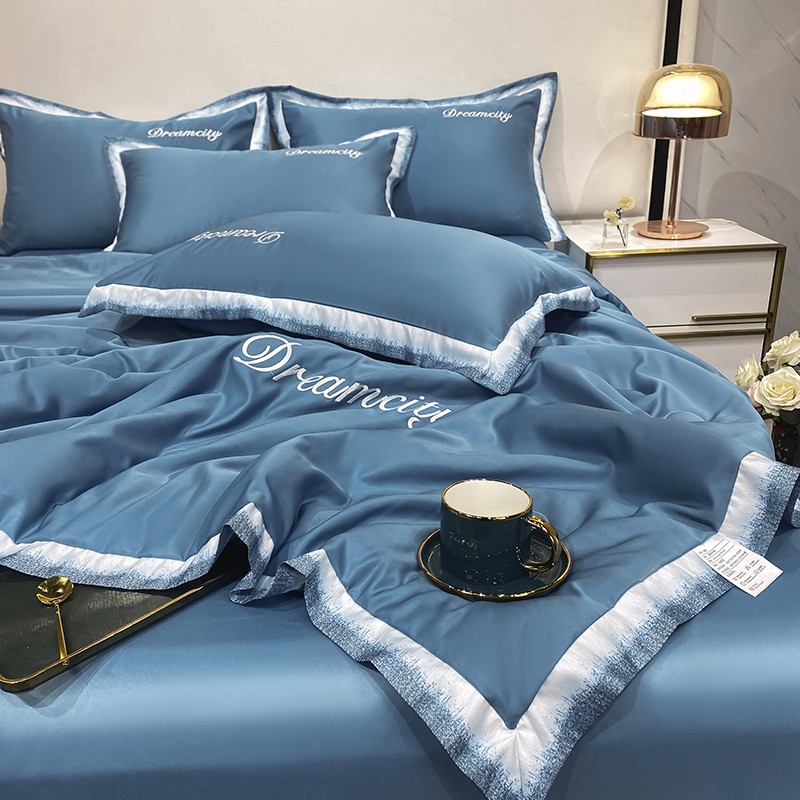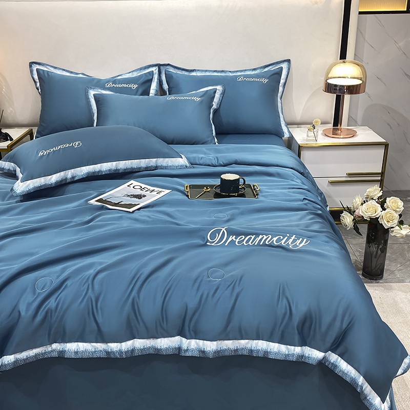 丽卡家纺 2023新款水洗天丝刺绣夏被四件套梦幻-宾利蓝