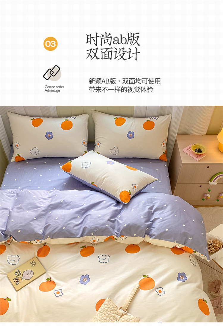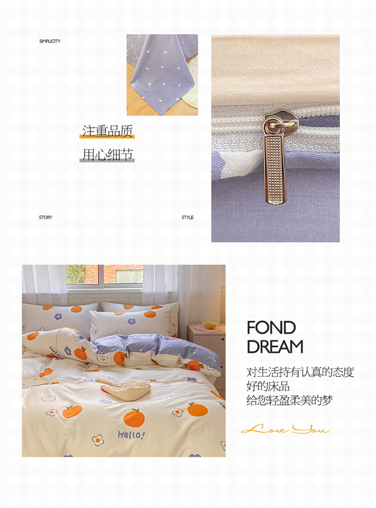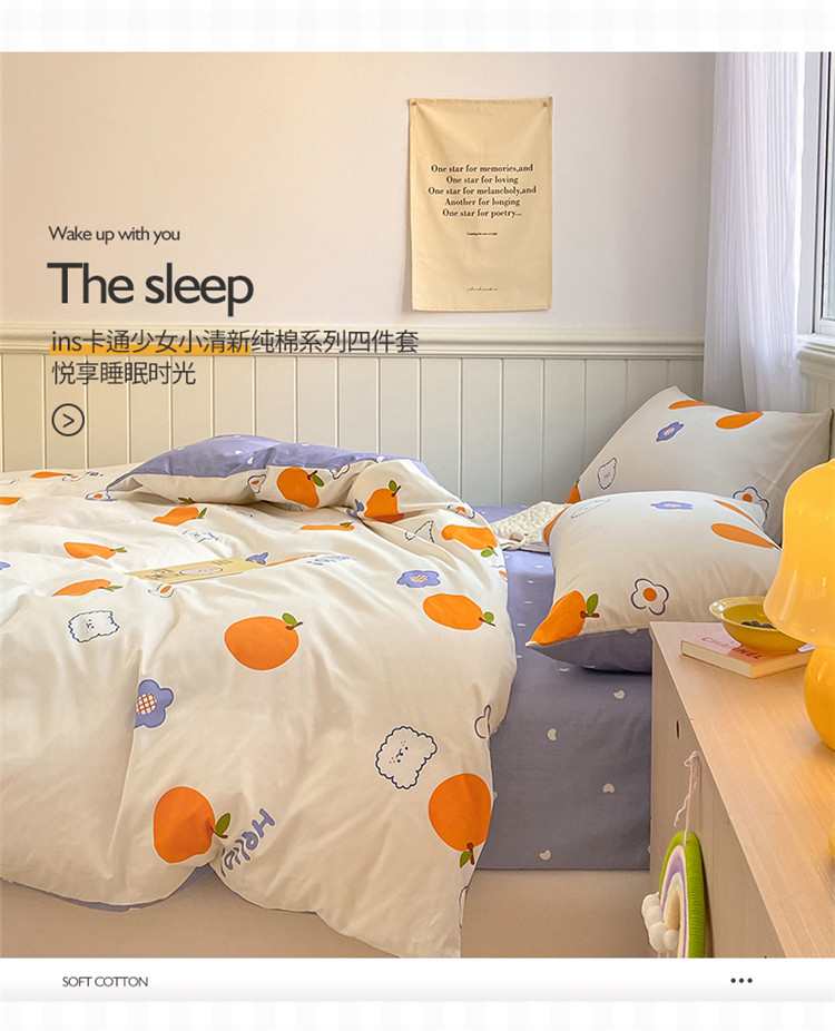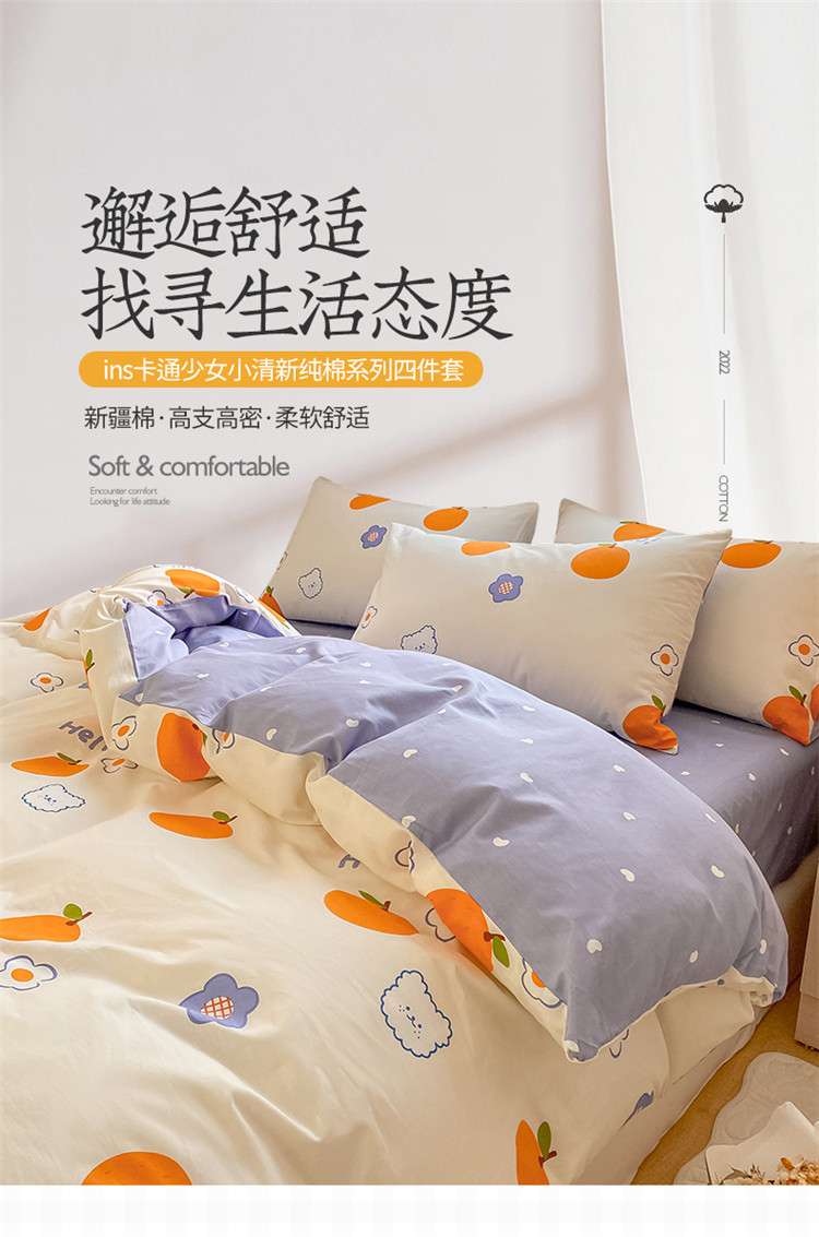 商品名称:桃子家居 2022新款ins小清新奶油卡通纯棉系列四件套 桔子熊