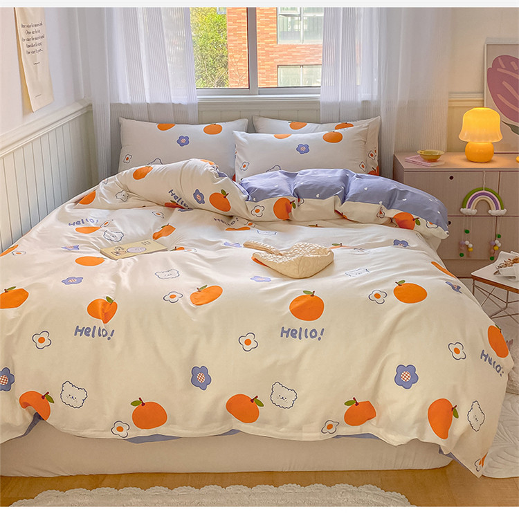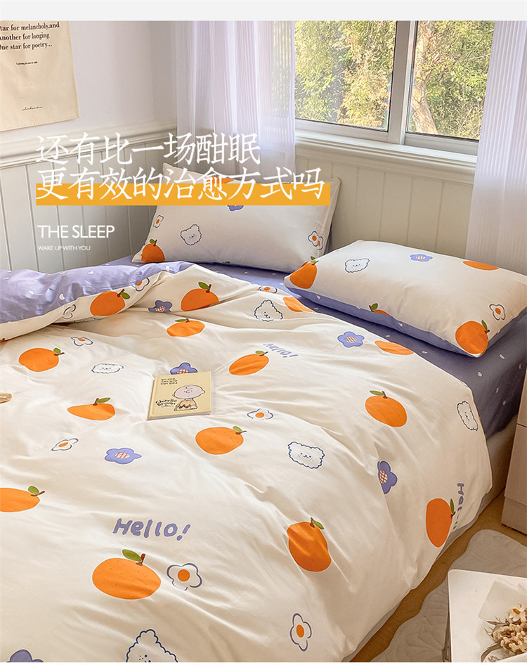 桃子家居 2022新款ins小清新奶油卡通纯棉系列四件套 桔子熊