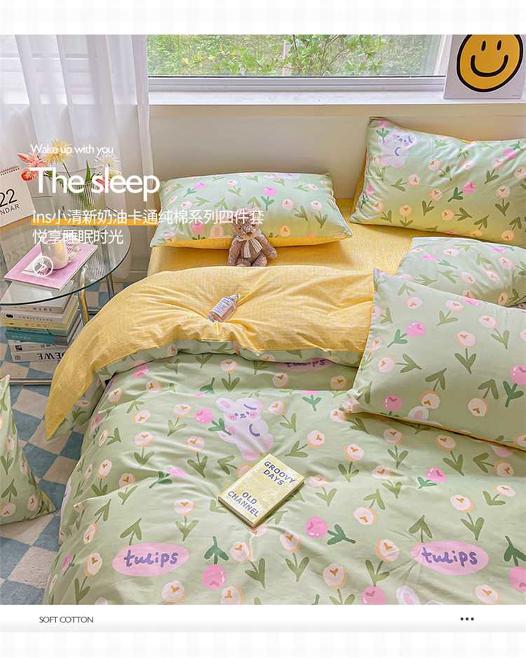 商品名称:桃子家居 2022新款ins小清新奶油卡通纯棉系列四件套 伊甸