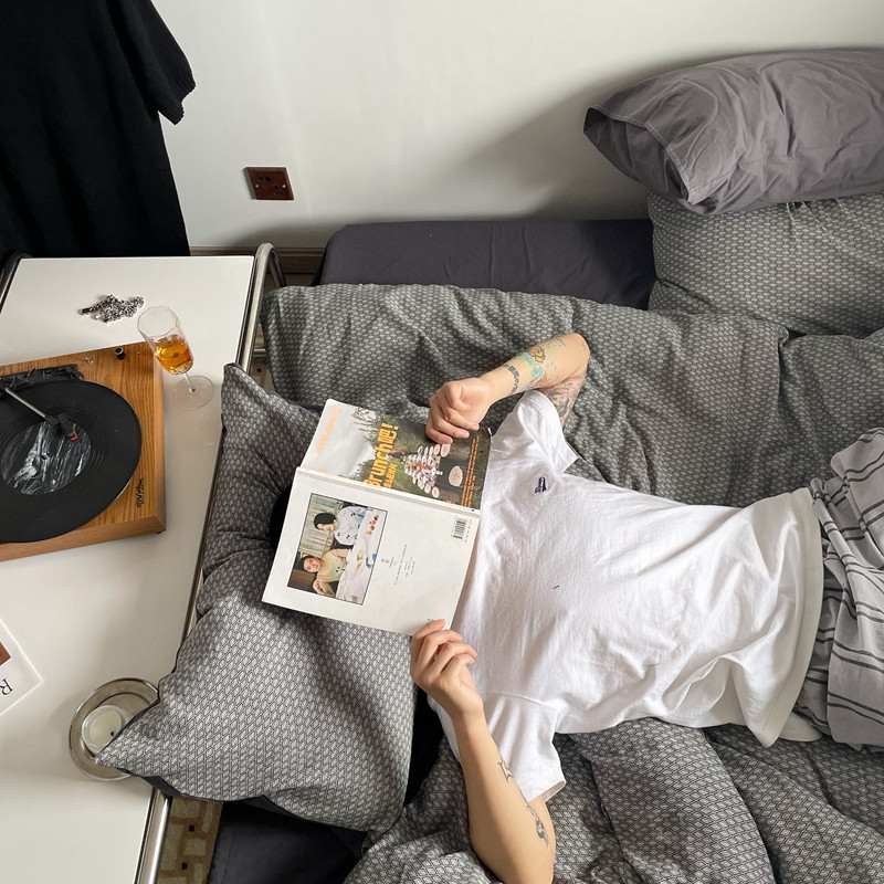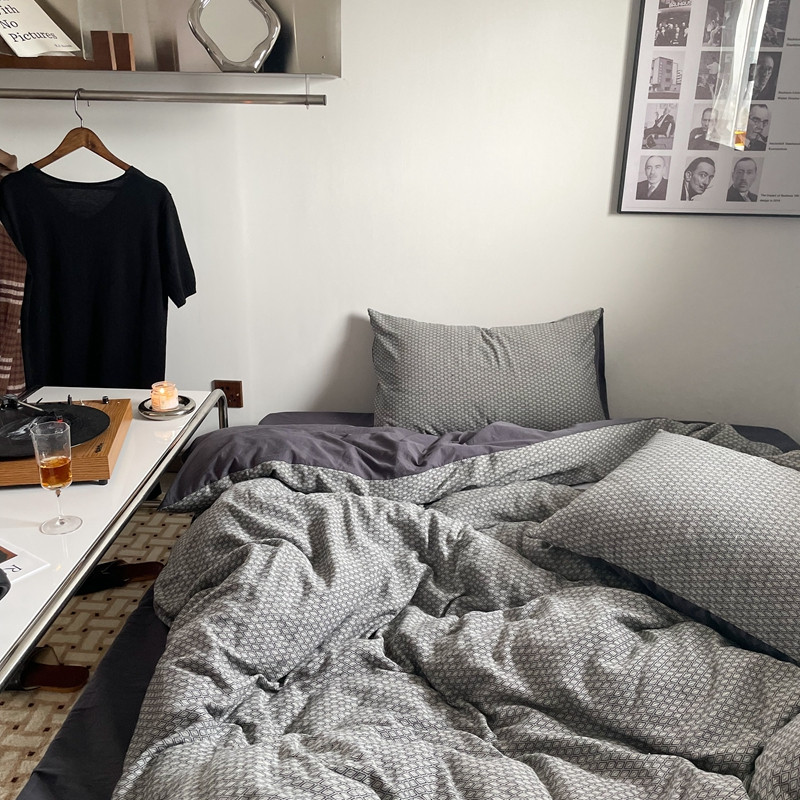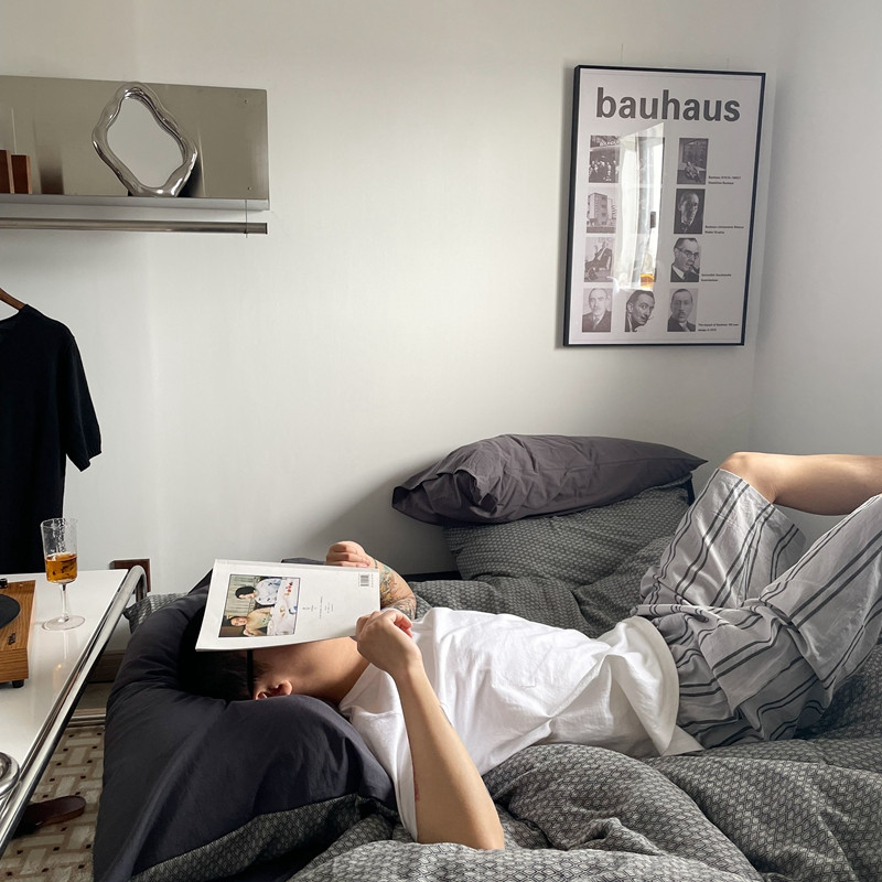 (总)恋恋三季 2025新款ins博主简约条纹极简风纯棉单被套,色织水洗-黑白世界,色织水洗-空白格