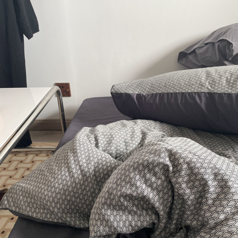 (总)恋恋三季 2024新40支全棉水洗棉提花四件套-西格黑
