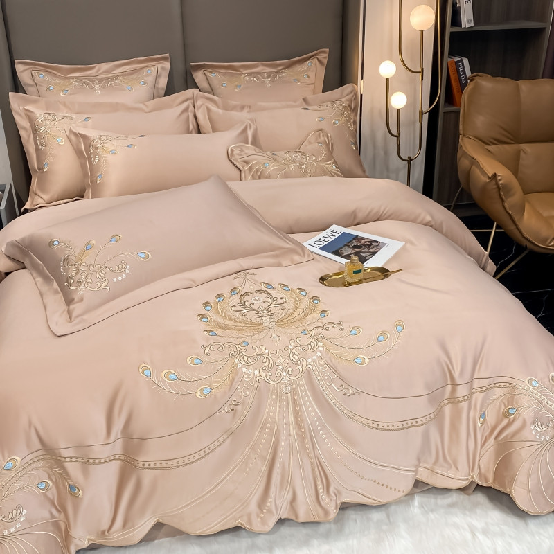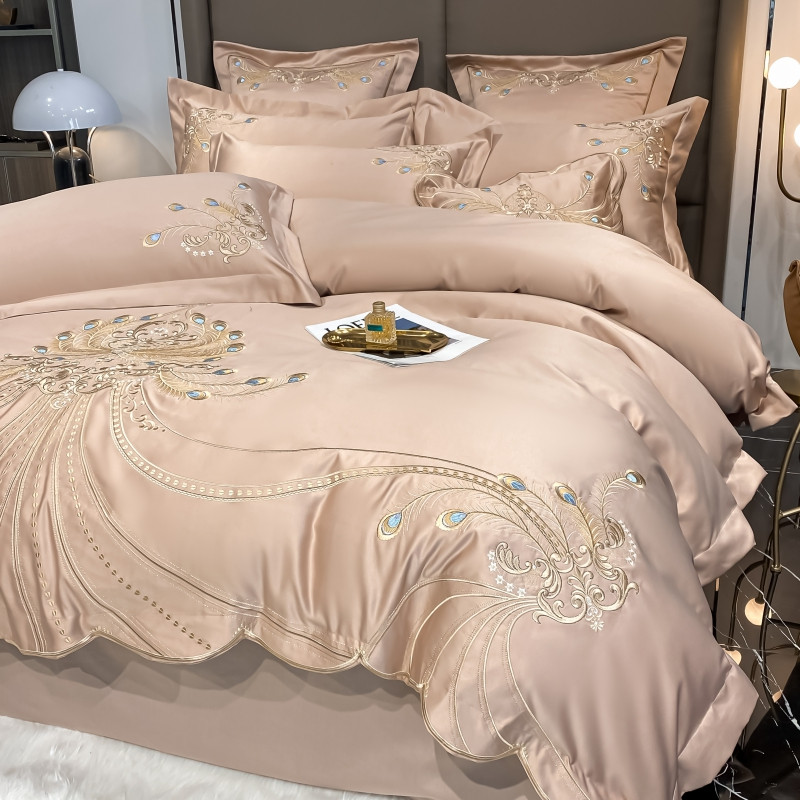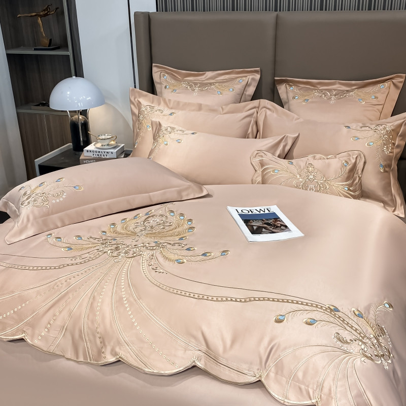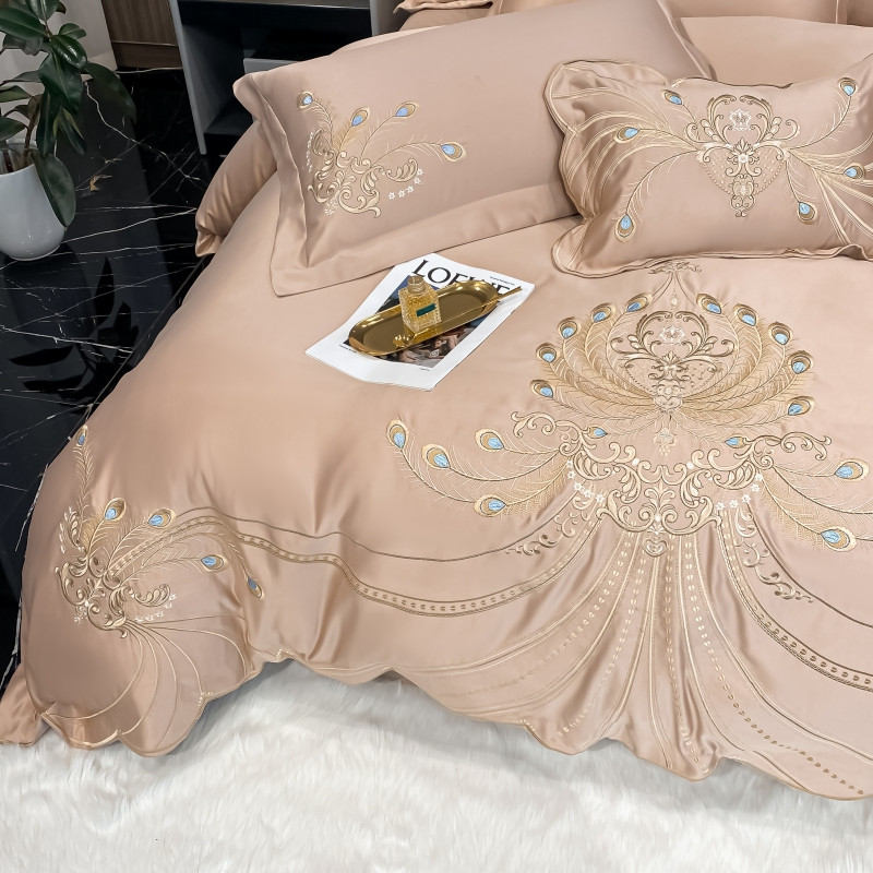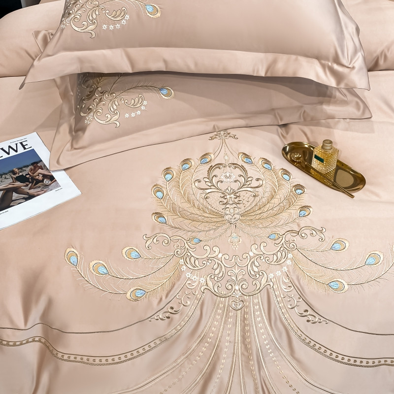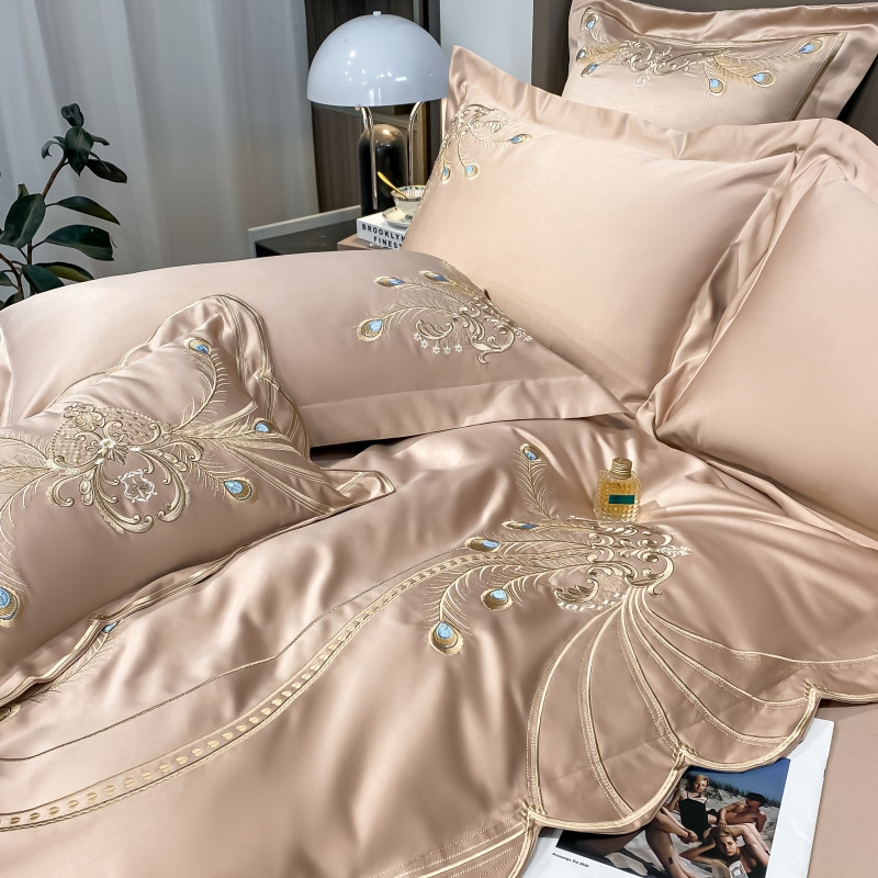 博纳 2022新款60S水洗真丝四件套-雀羽 雀羽-金咖