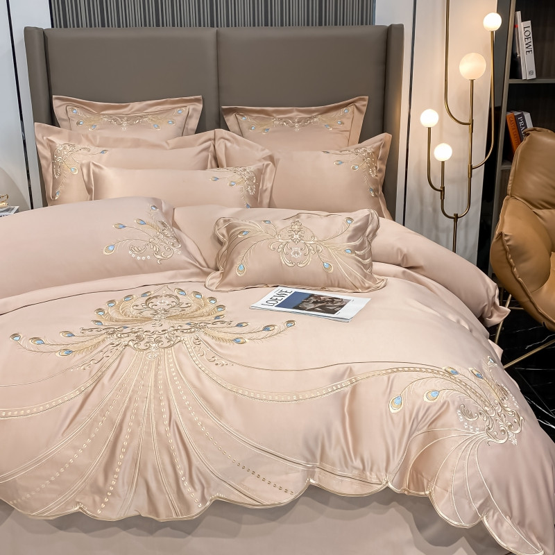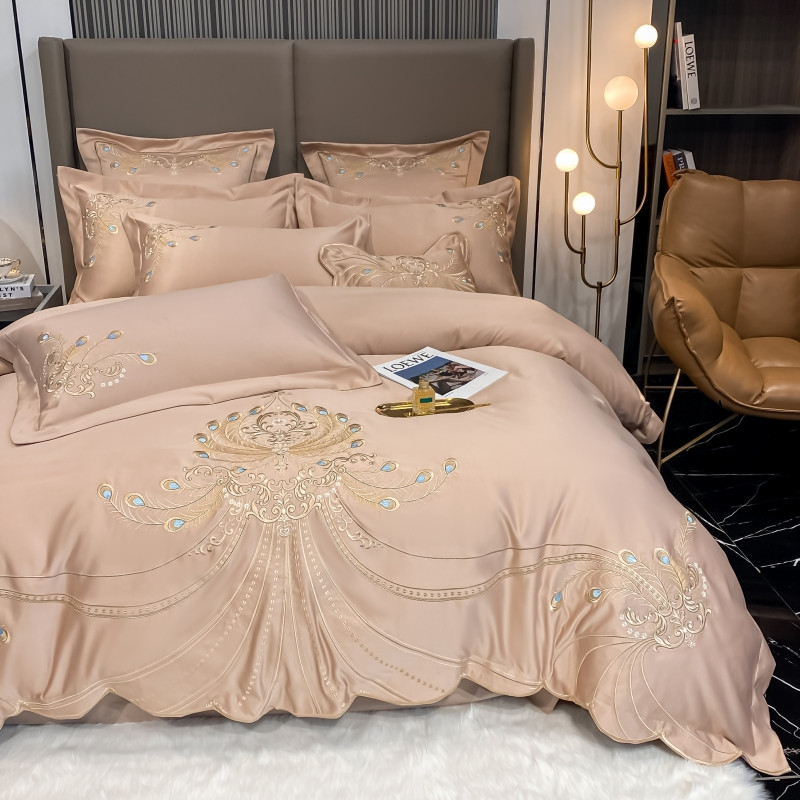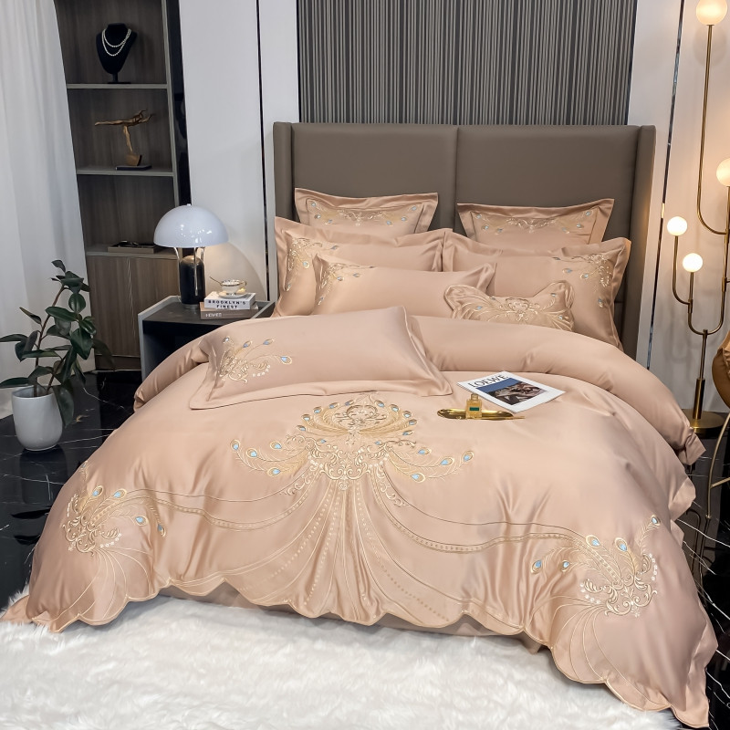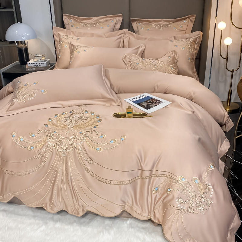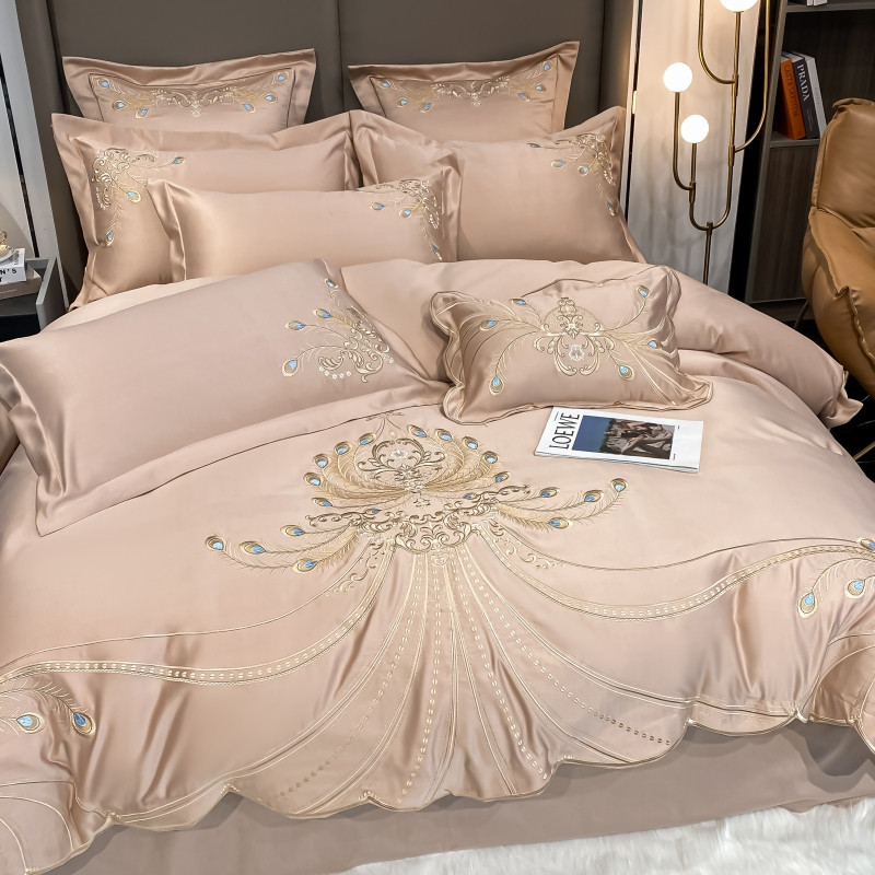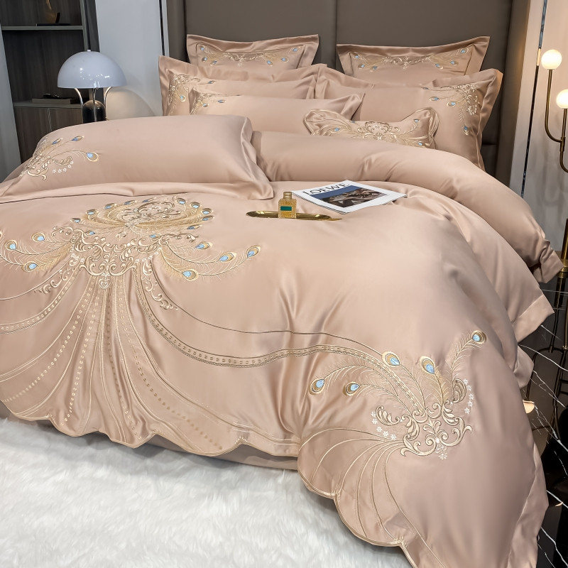 博纳 2022新款60S水洗真丝四件套-雀羽 雀羽-金咖