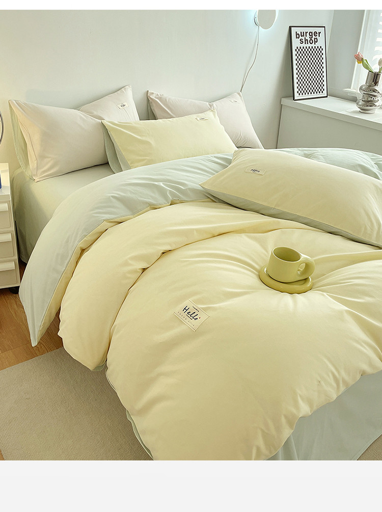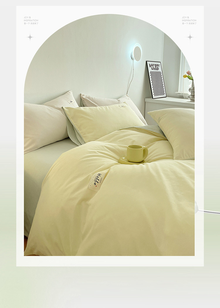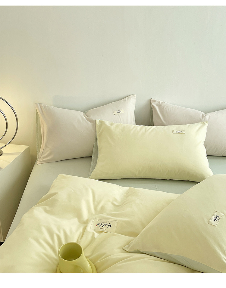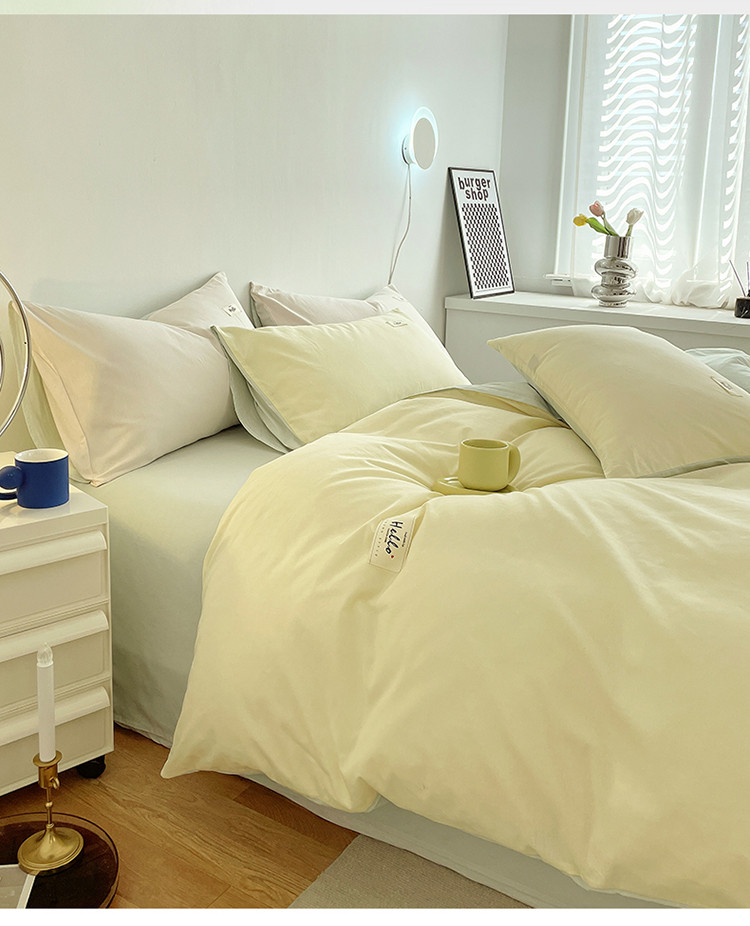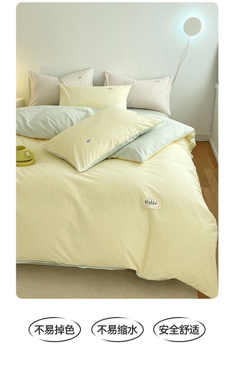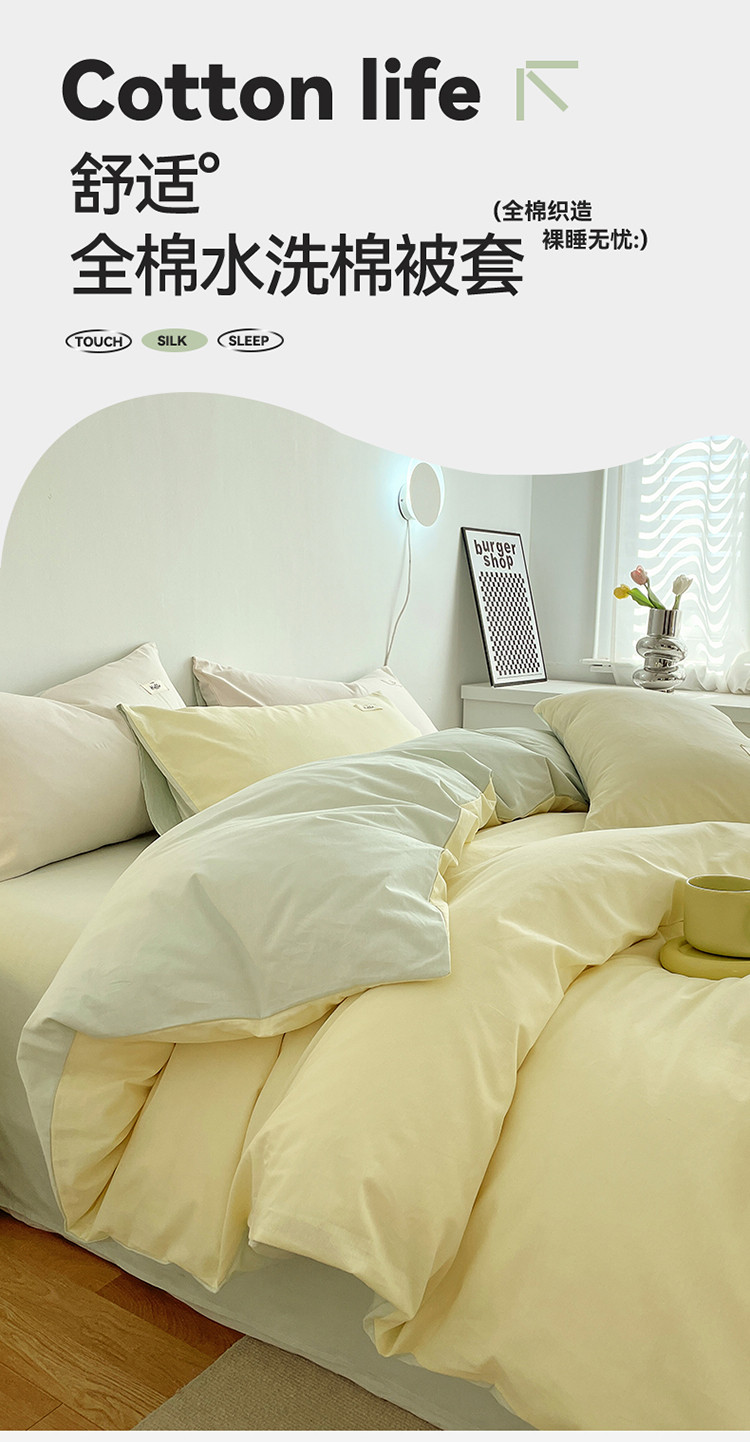 798家纺 2022新款纯色全棉水洗棉单品被套 米黄+豆绿