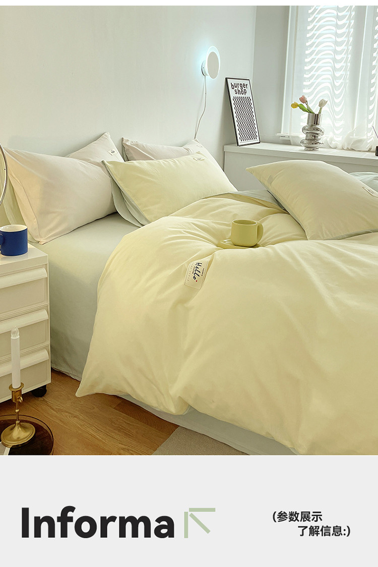 商品名称:798家纺 2022新款纯色全棉水洗棉单品被套 米黄+豆绿
