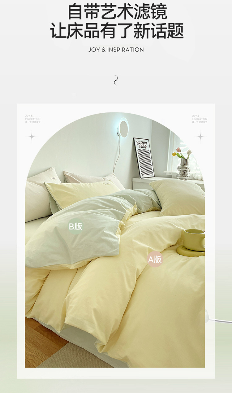 (总)798家纺 2025新款全棉双拼纯色良品四件套,碧绿+奶白,布鲁蓝+梧桐灰,豆绿+芍药粉,奶白+豆绿,奶白+青草绿,浅夏紫+芍药粉,肉肉粉+班尼咖,肉肉粉+千夏紫,肉肉粉+小雏菊,石灰+梧桐灰