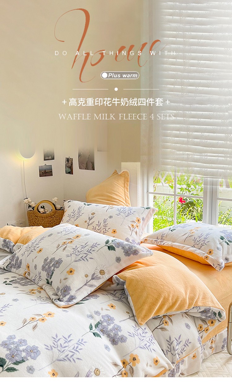 呗旺鹿 2022印花小清新加厚保暖牛奶绒四件套直播 花影暗香