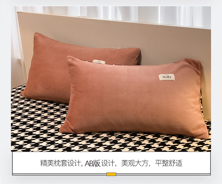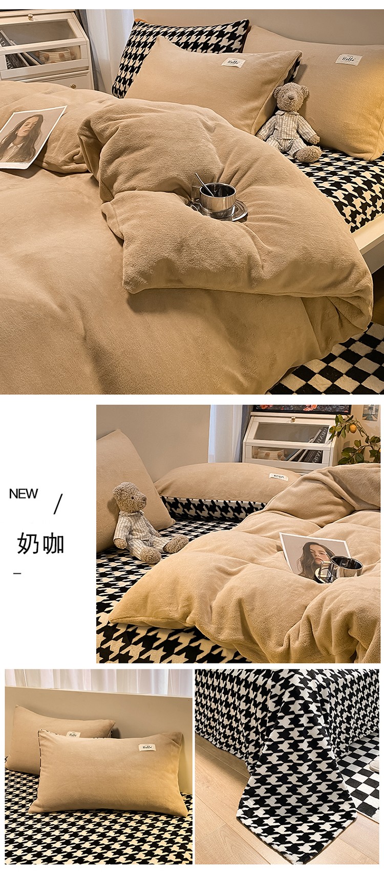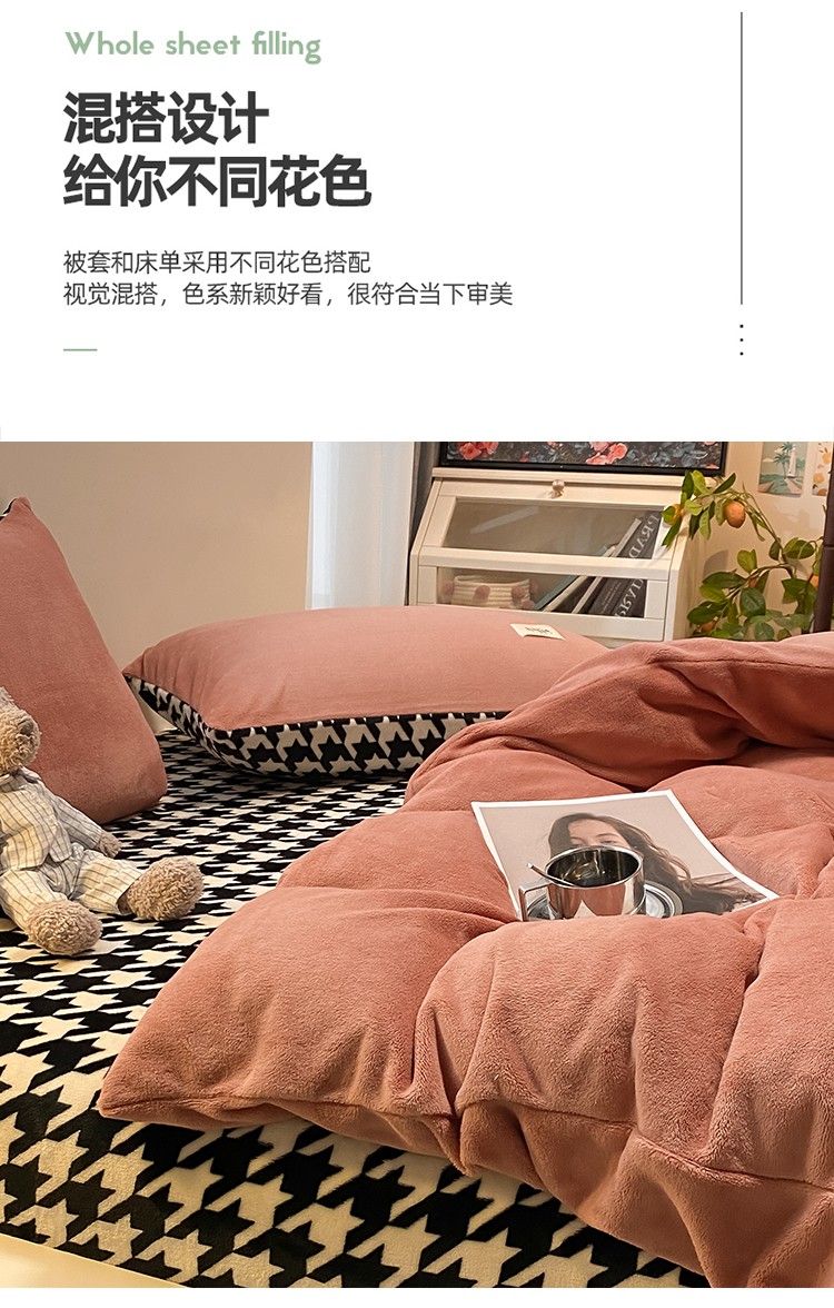 (总)花漾家居 2023新款秋冬新品千鸟格双拼牛奶绒四件套