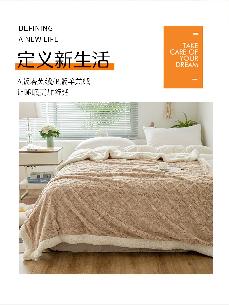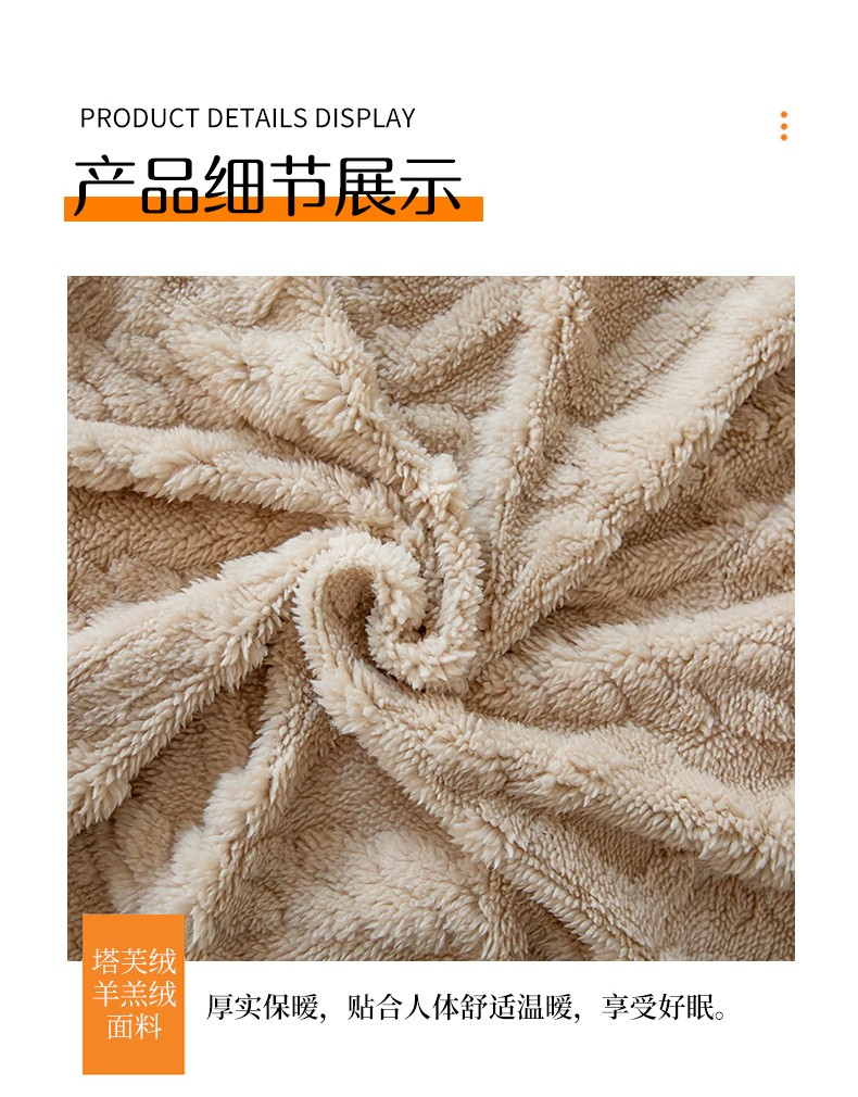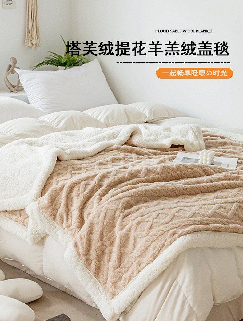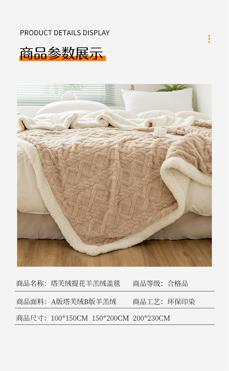商品名称:网客家纺 2024新款塔芙绒提花羊羔绒盖毯 卡其