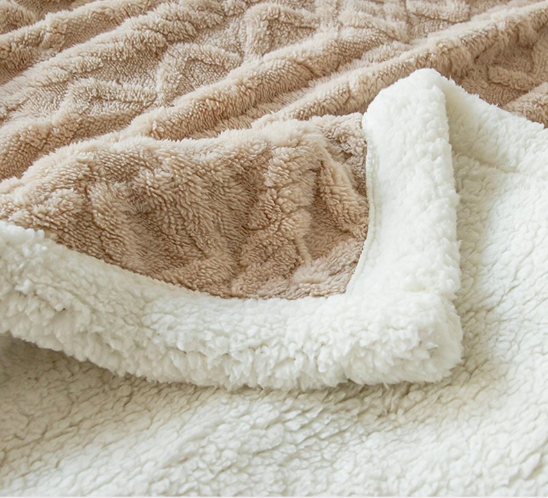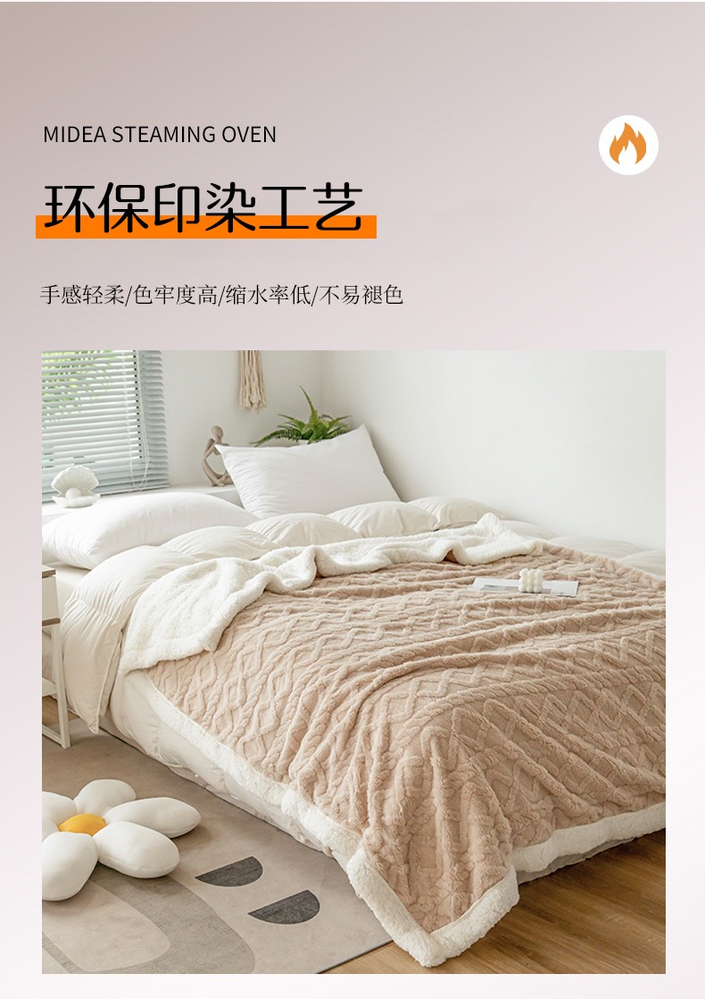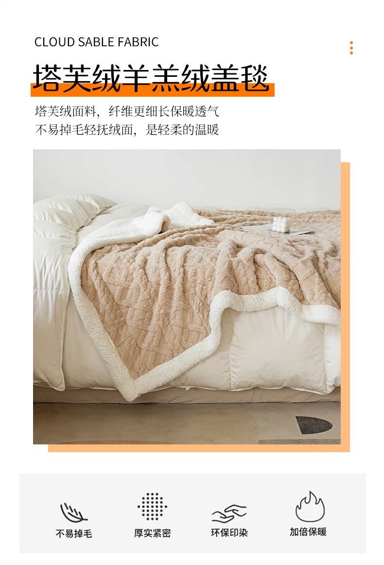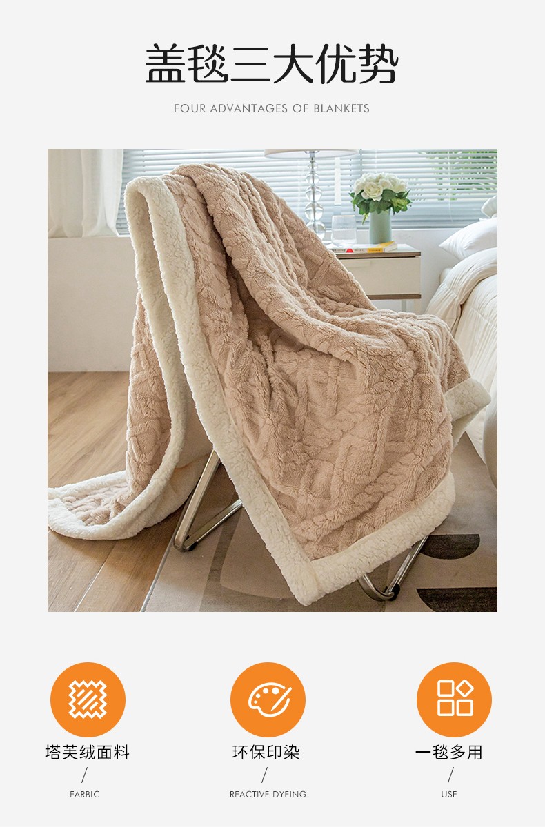 商品名称:网客家纺 2024新款塔芙绒提花羊羔绒盖毯 卡其