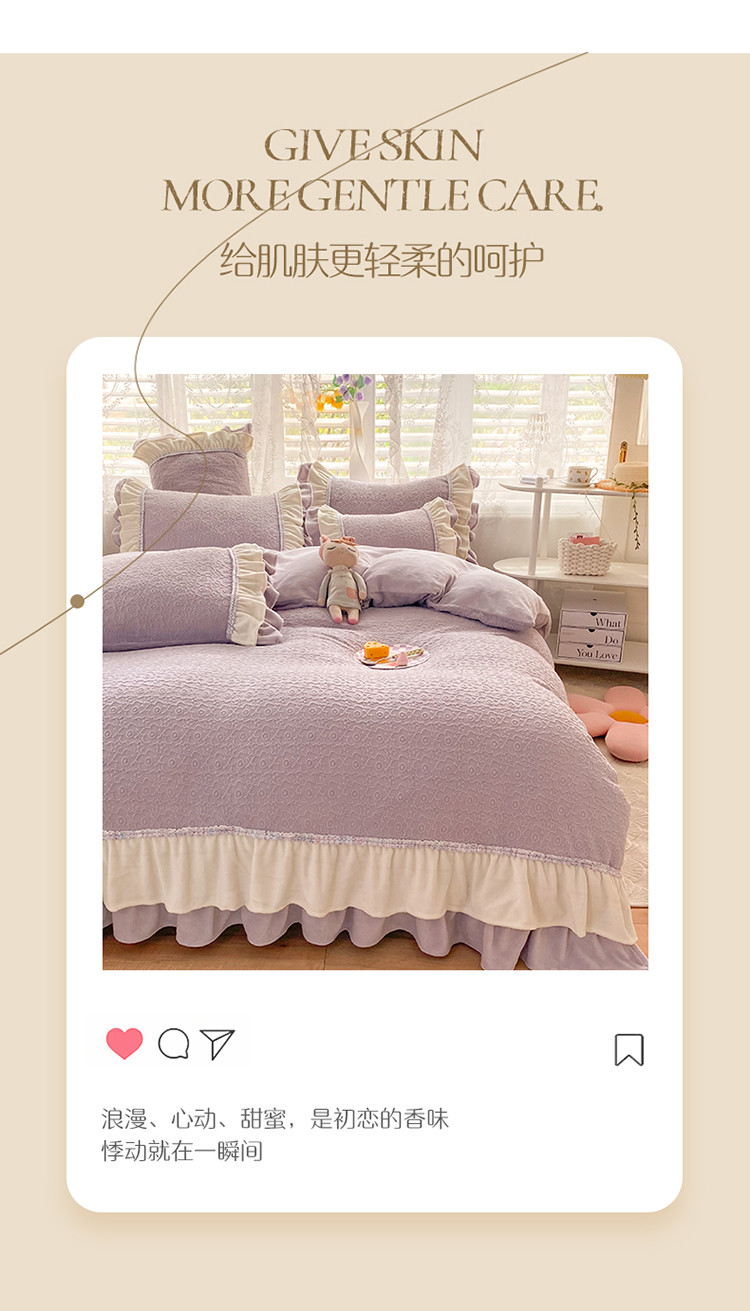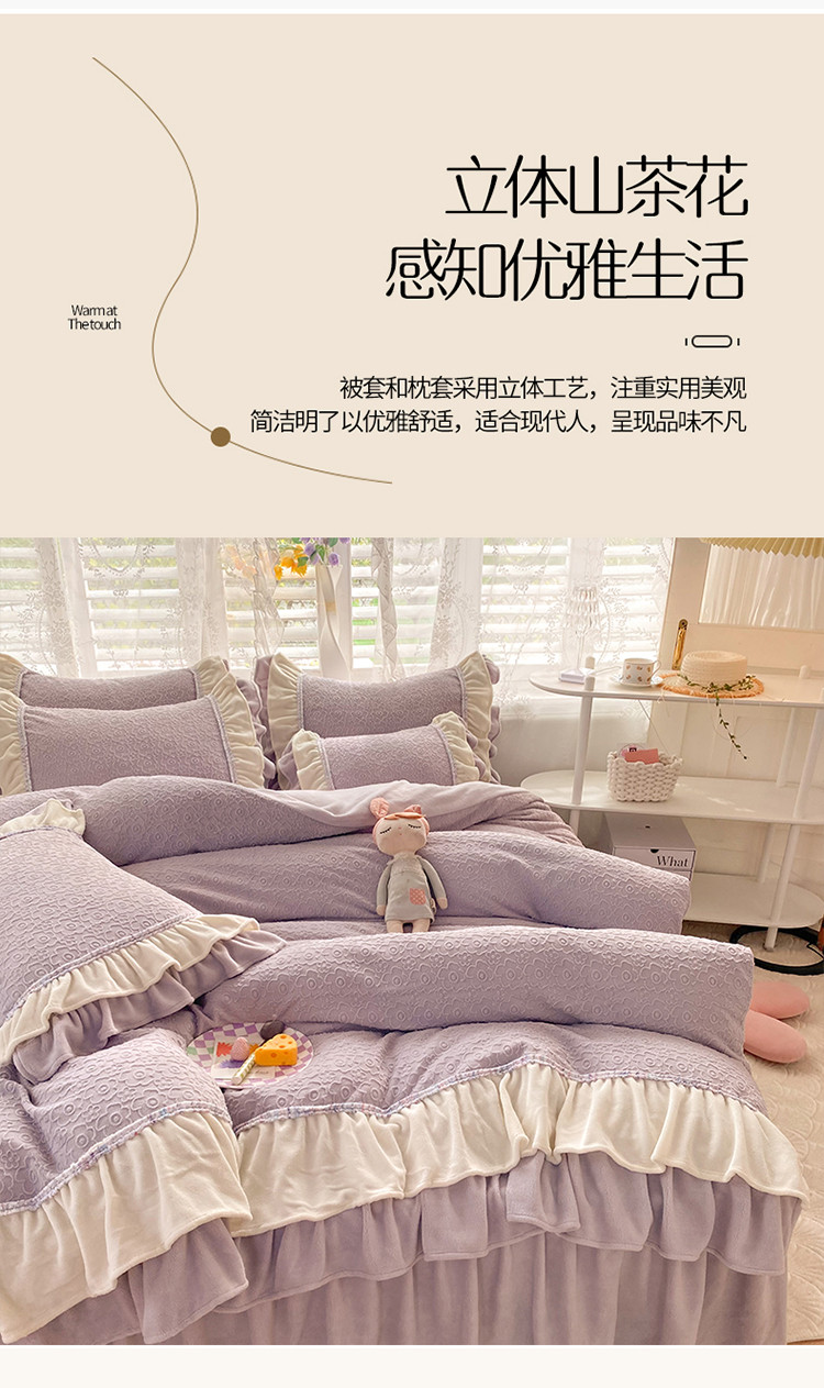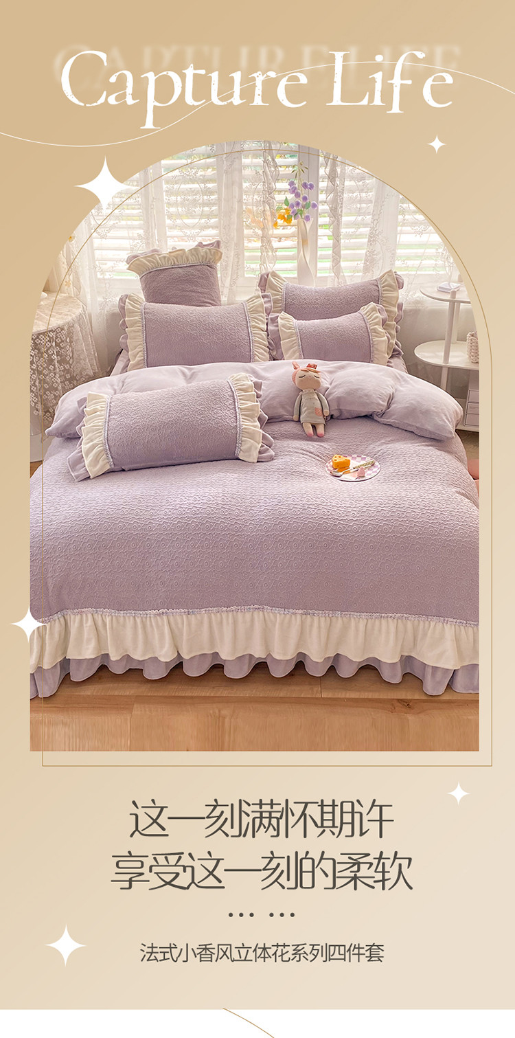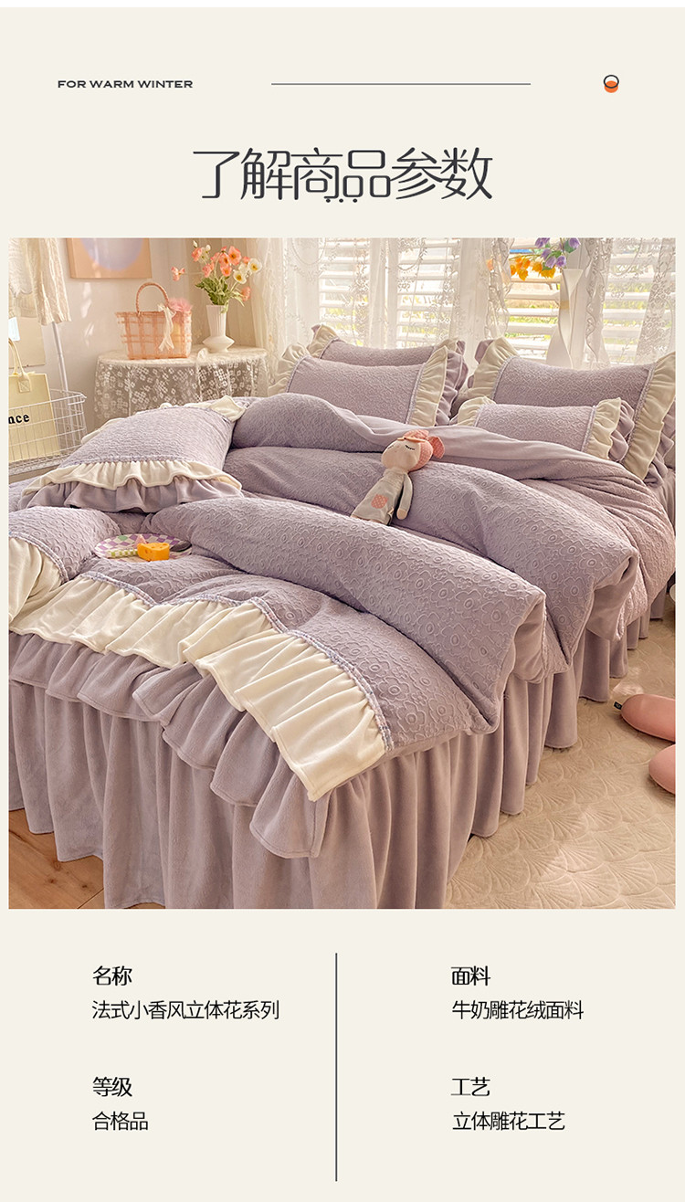 (总)恩和家纺 2025新款泡泡牛奶绒荷叶边款四件套,泡泡绒飞边咖色,泡泡绒飞边款豆沙,泡泡绒飞边款紫色,泡泡绒飞边米白咖,泡泡绒飞边深灰