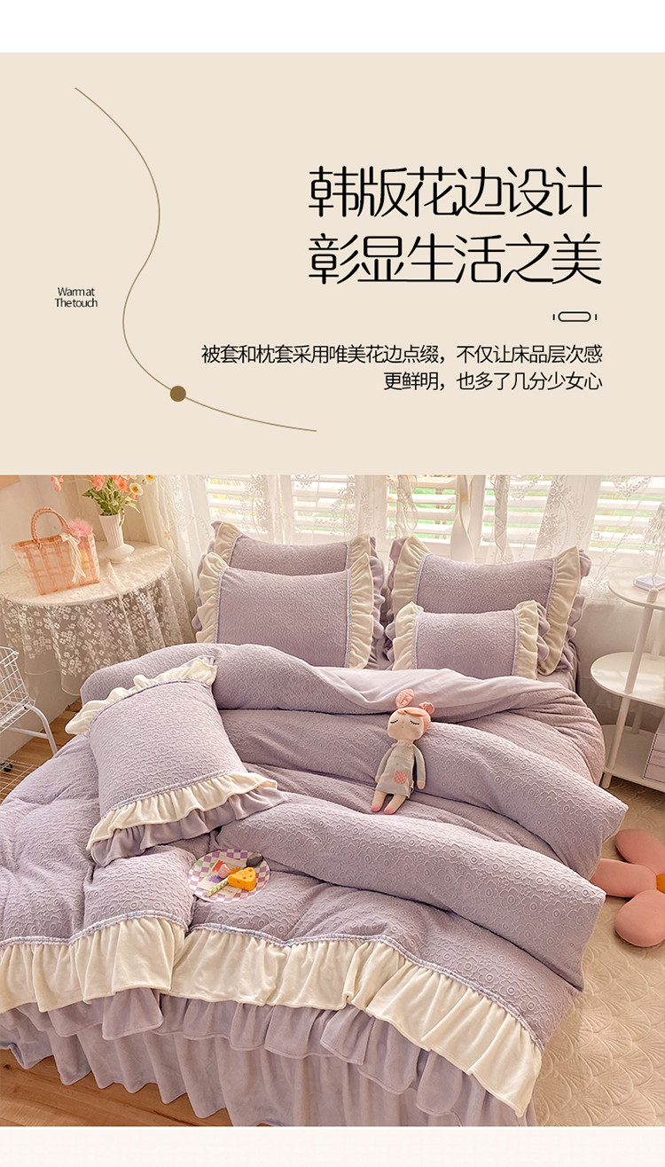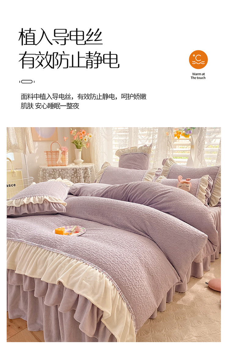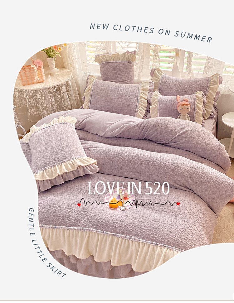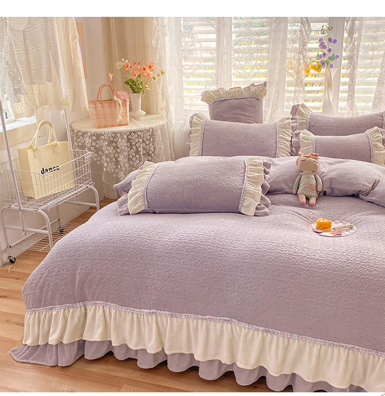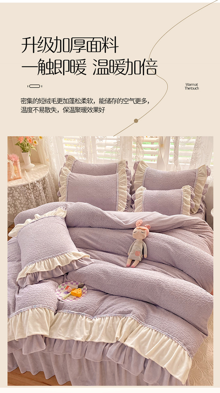 (总)恩和家纺 2025新款泡泡牛奶绒荷叶边款四件套,泡泡绒飞边咖色,泡泡绒飞边款豆沙,泡泡绒飞边款紫色,泡泡绒飞边米白咖,泡泡绒飞边深灰