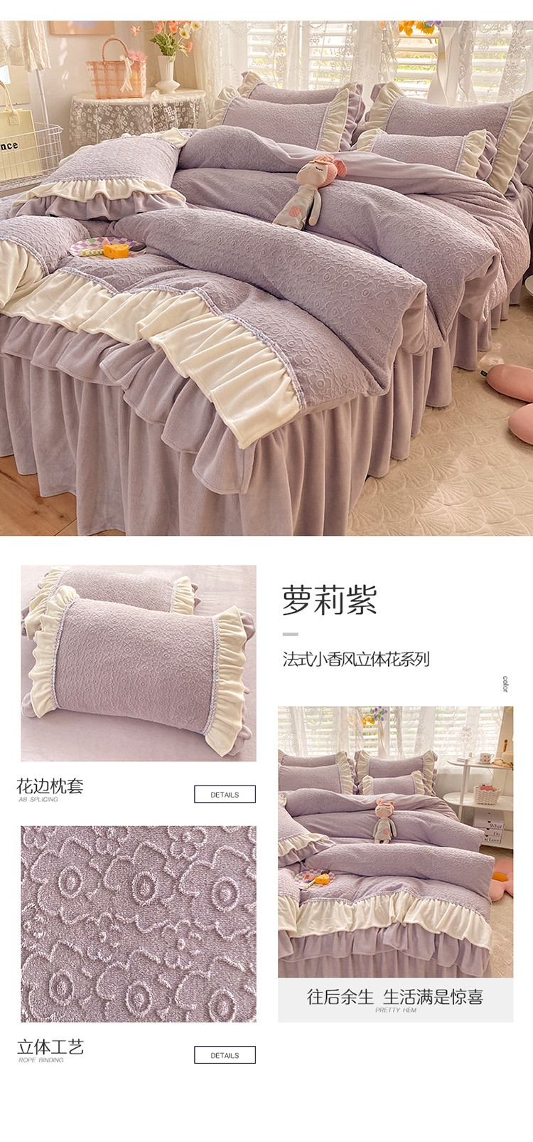 商品名称:恩和 2024新款牛奶绒雕花绒法式小香风四件套 萝莉紫
