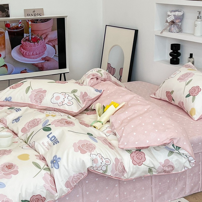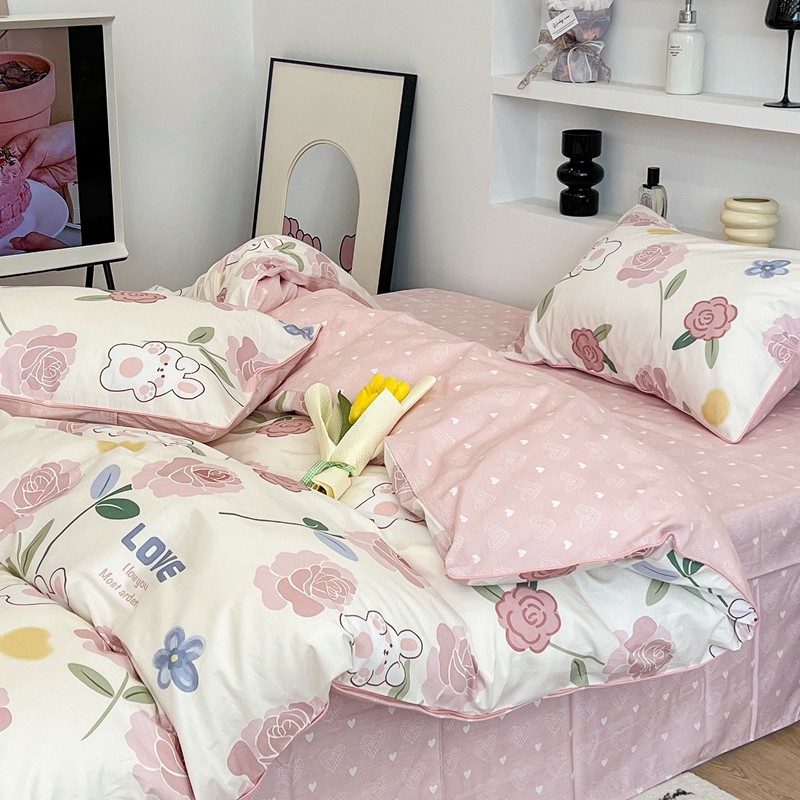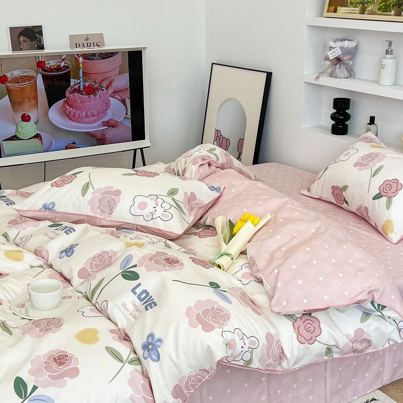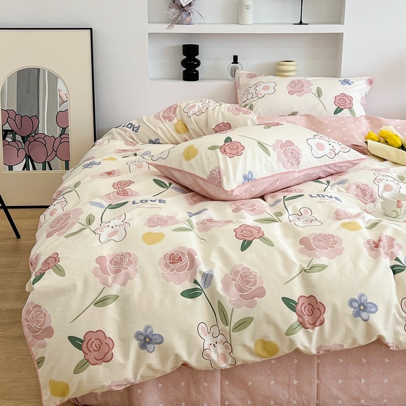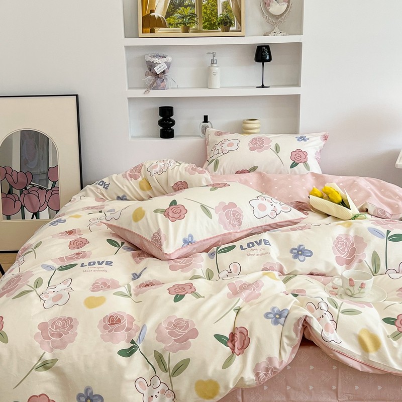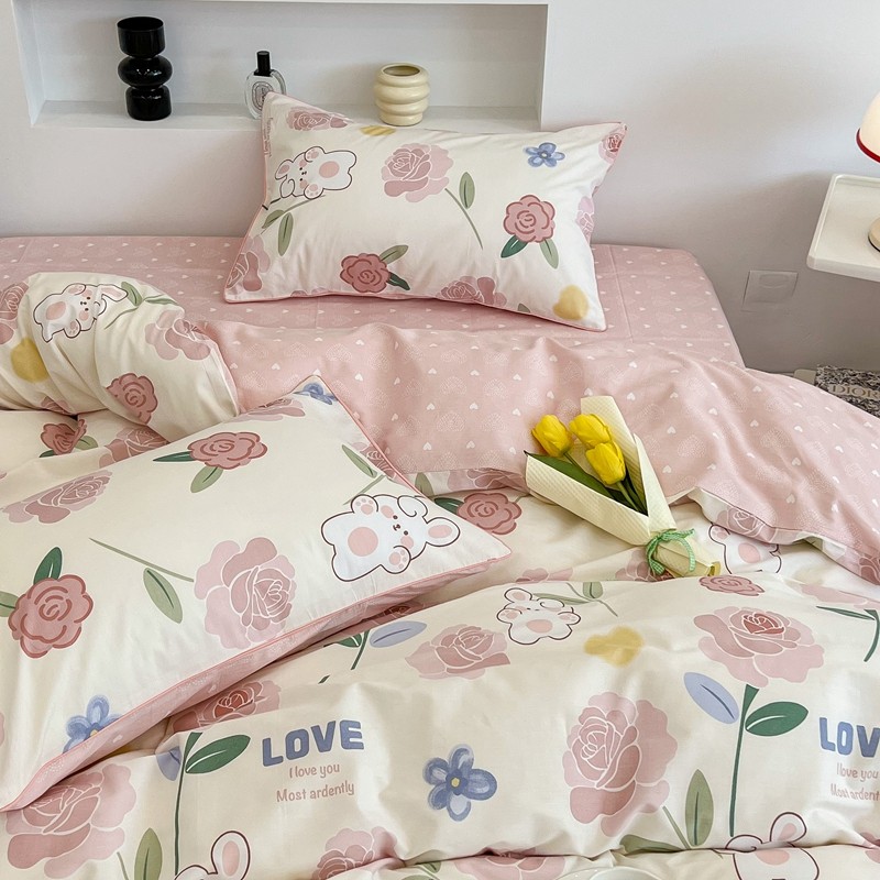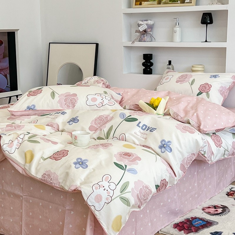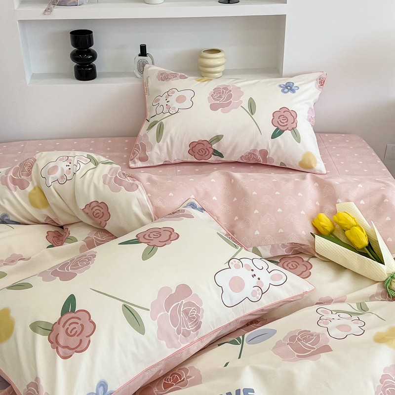 商品名称:昔可2022新款嵌绳全棉四件套组图二 粉蔷薇兔