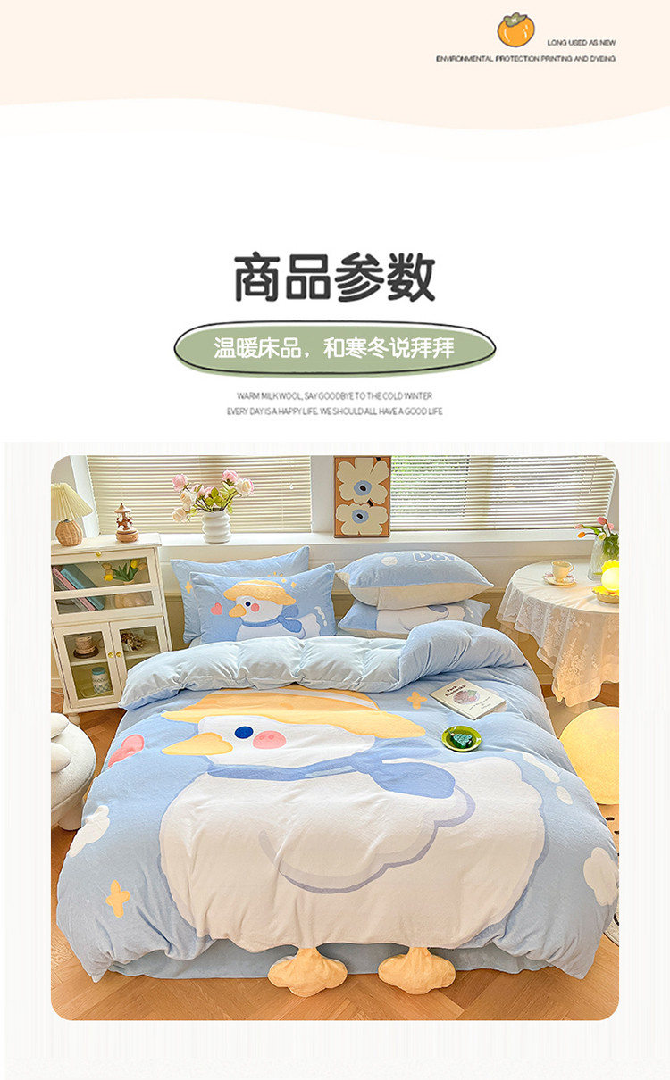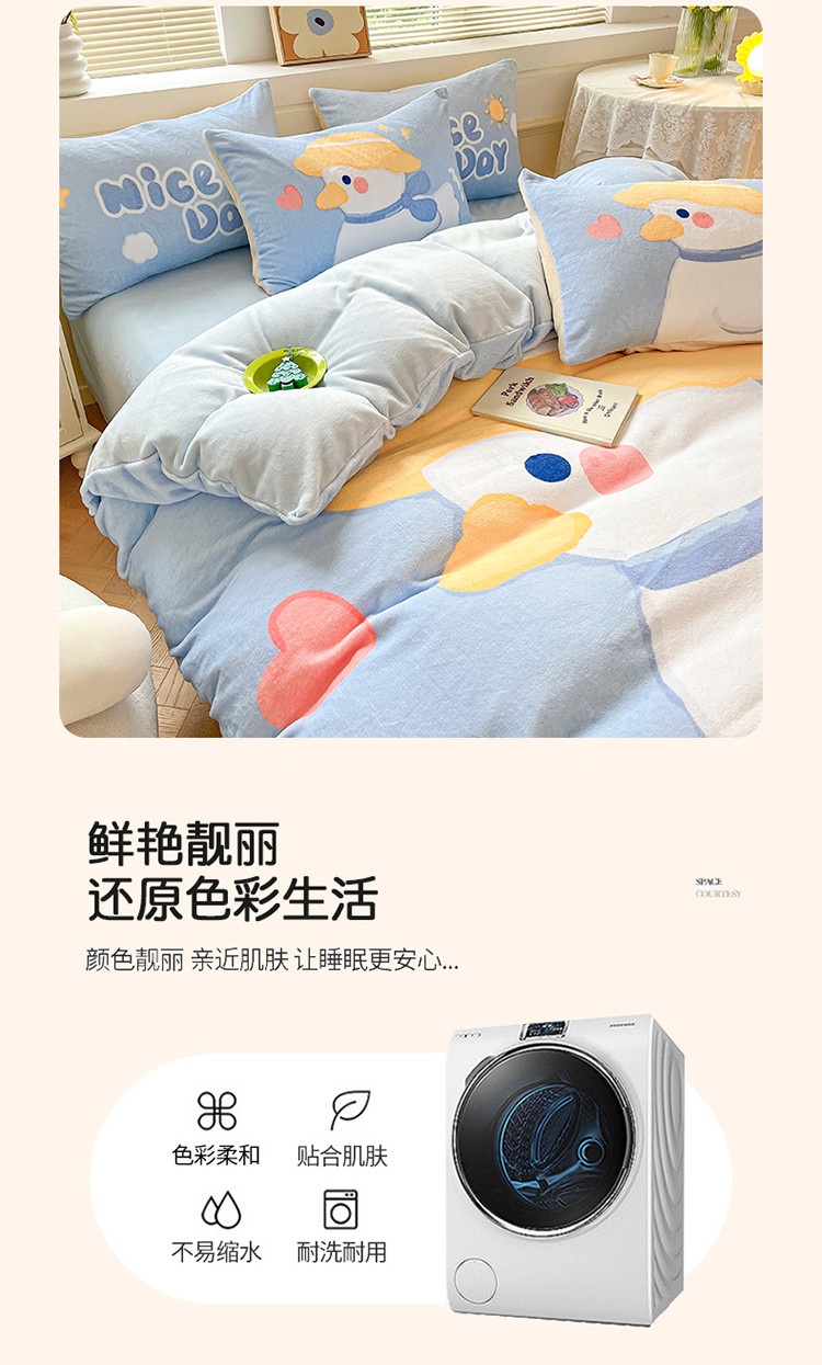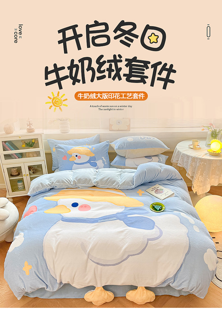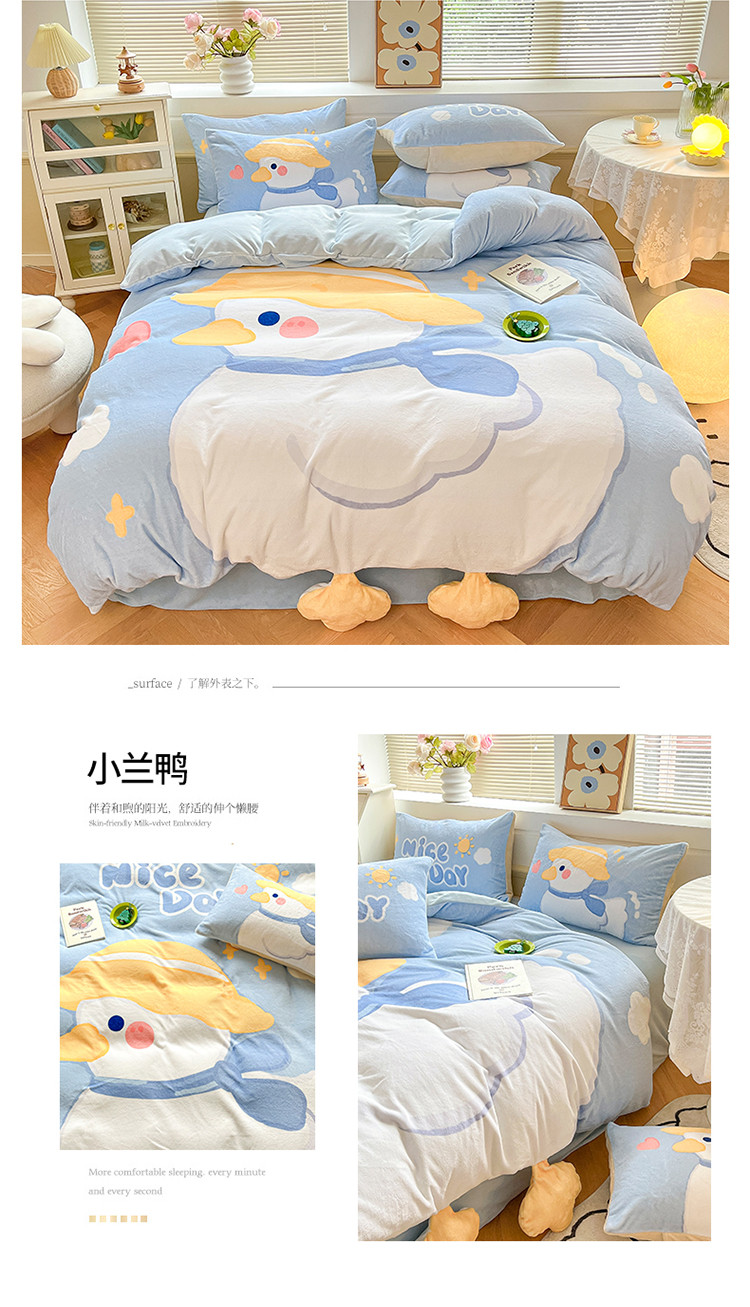 川悦生活 2022新款直播供货大版带脚牛奶绒四件套 小兰鸭