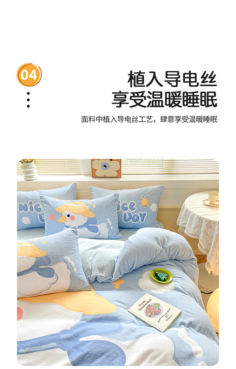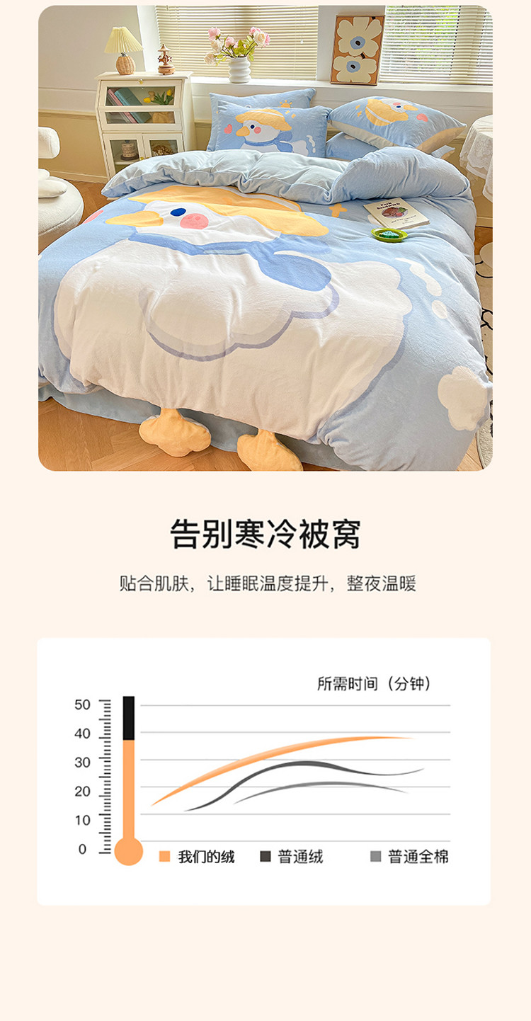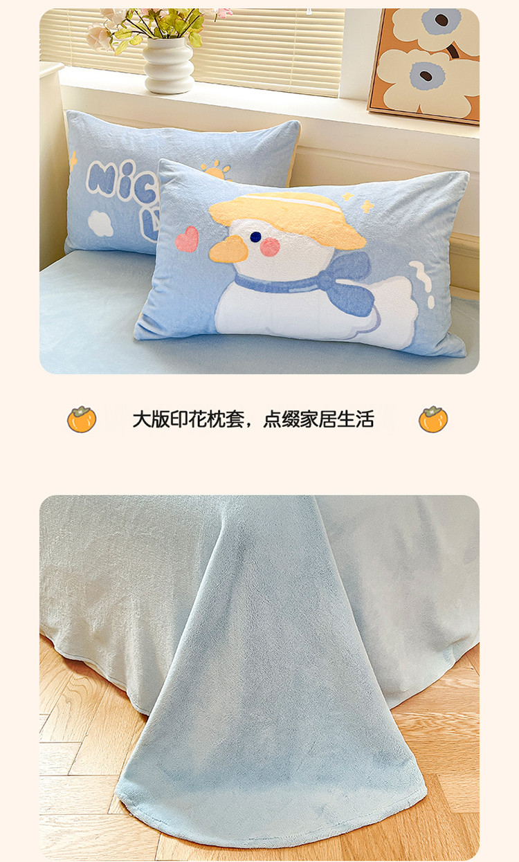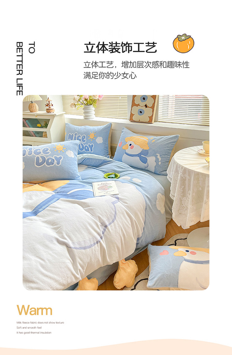 川悦生活 2022新款直播供货大版带脚牛奶绒四件套 小兰鸭