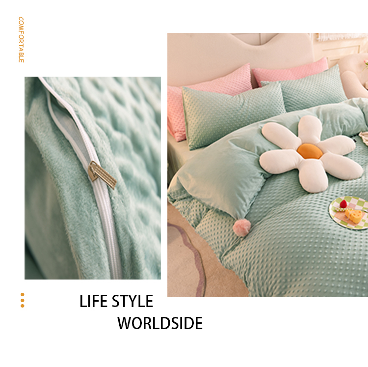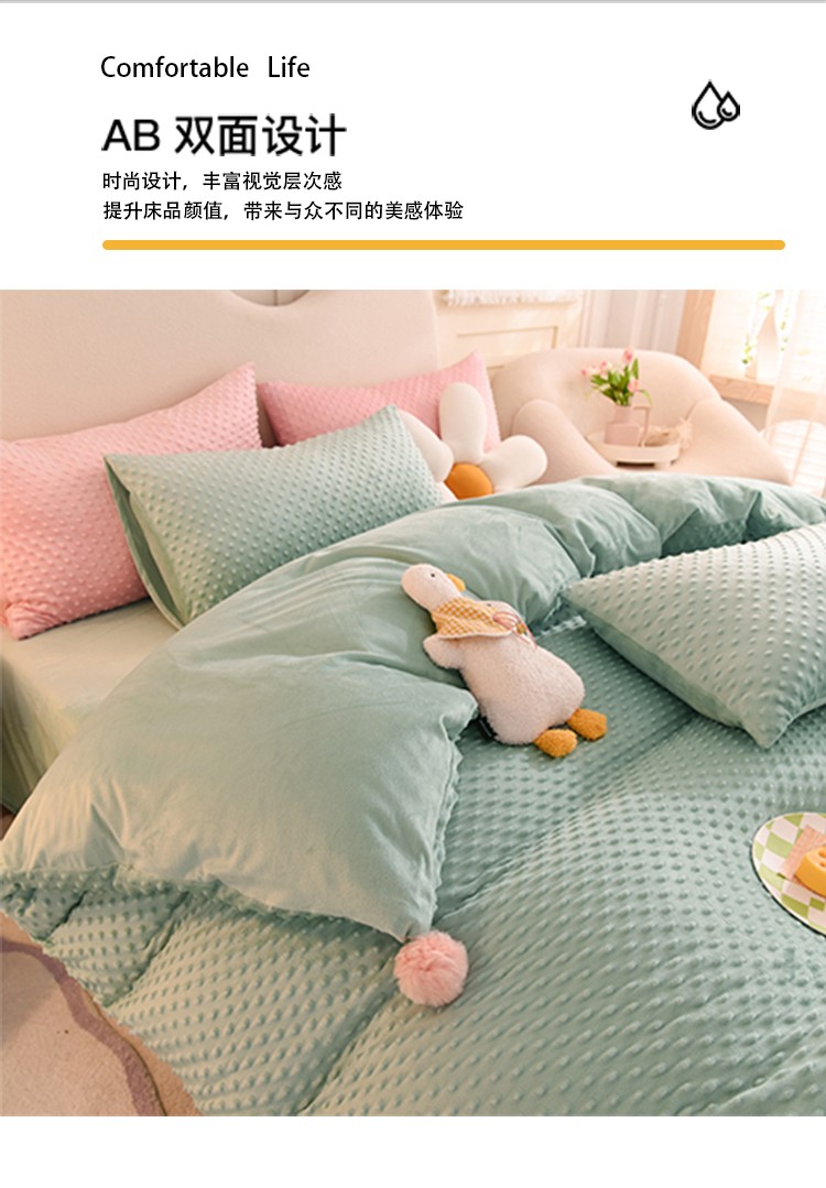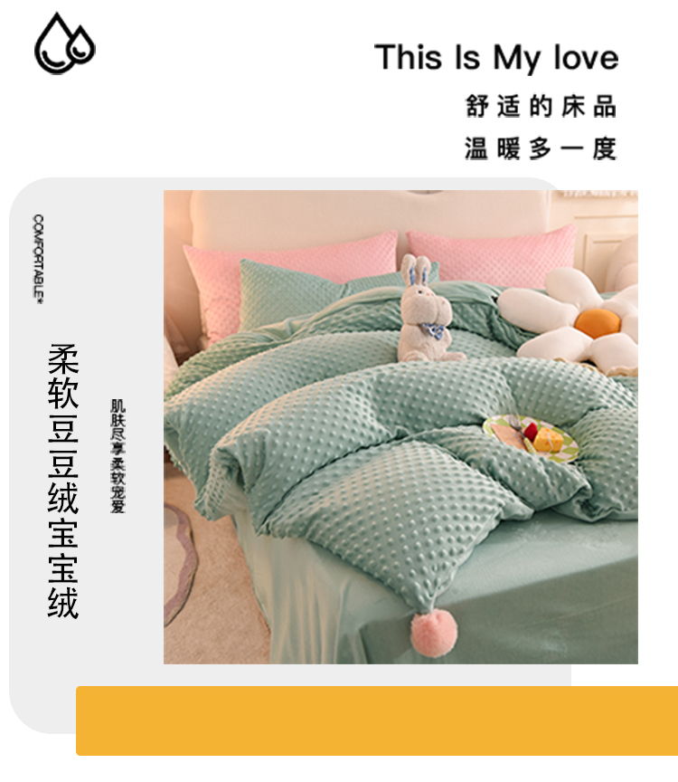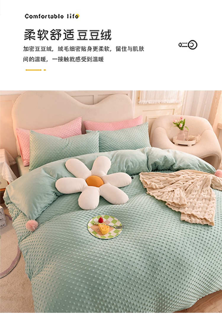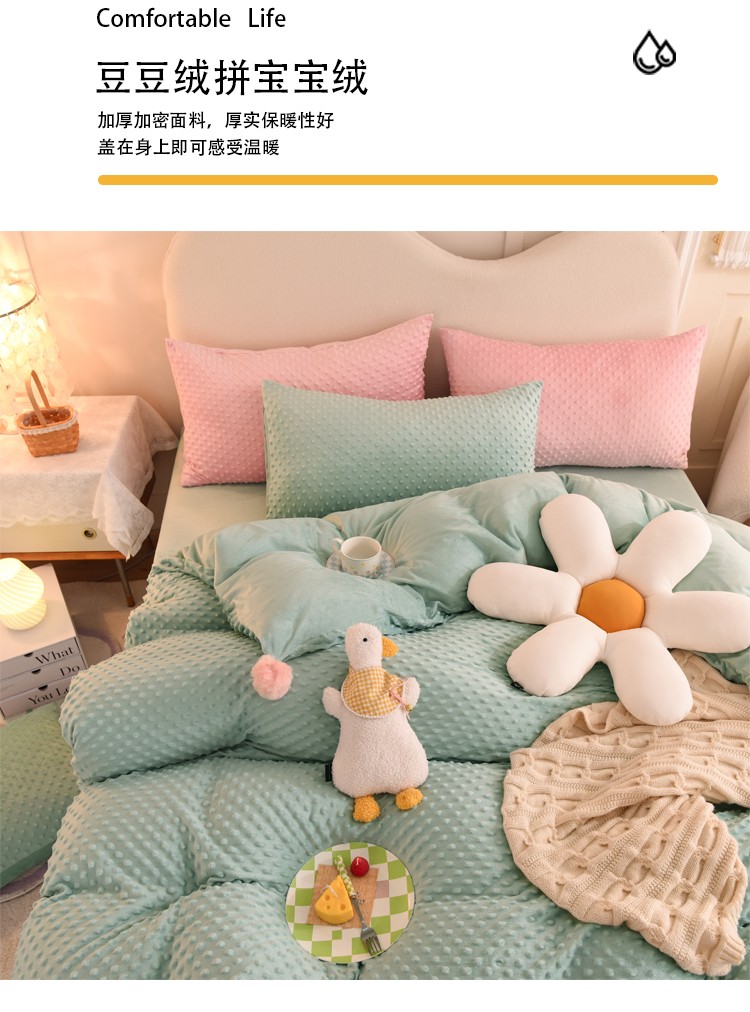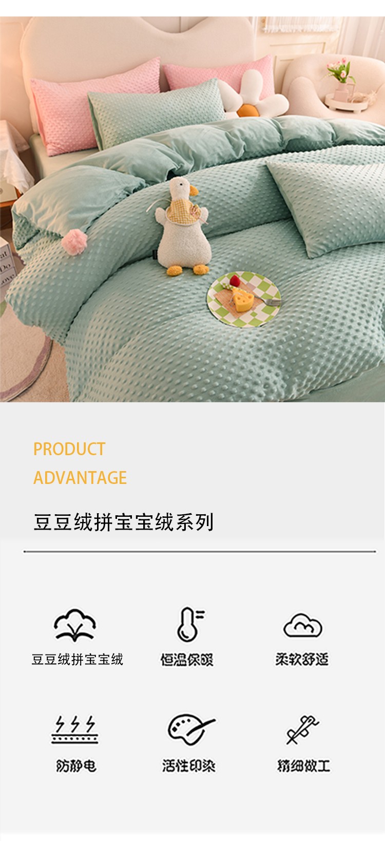 商品名称:艾米家居 2022新款秋冬豆豆绒宝宝绒四件套 水绿
