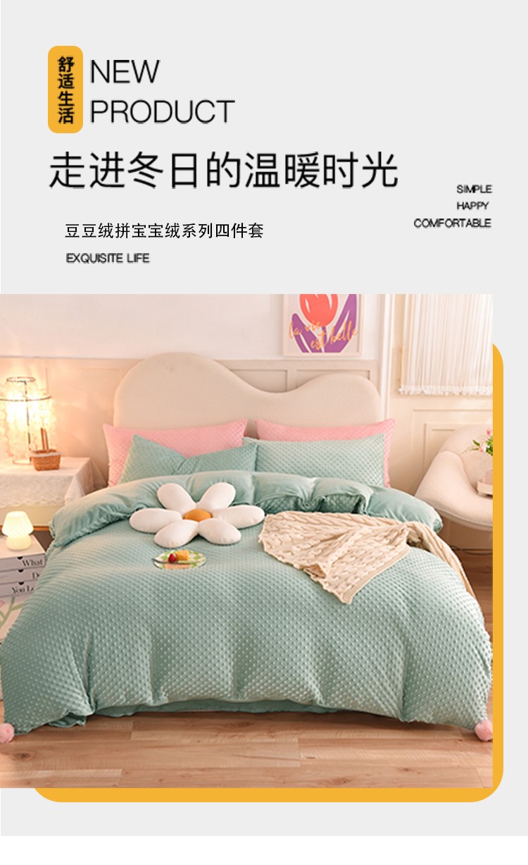 艾米家居 2022新款秋冬豆豆绒宝宝绒四件套 水绿