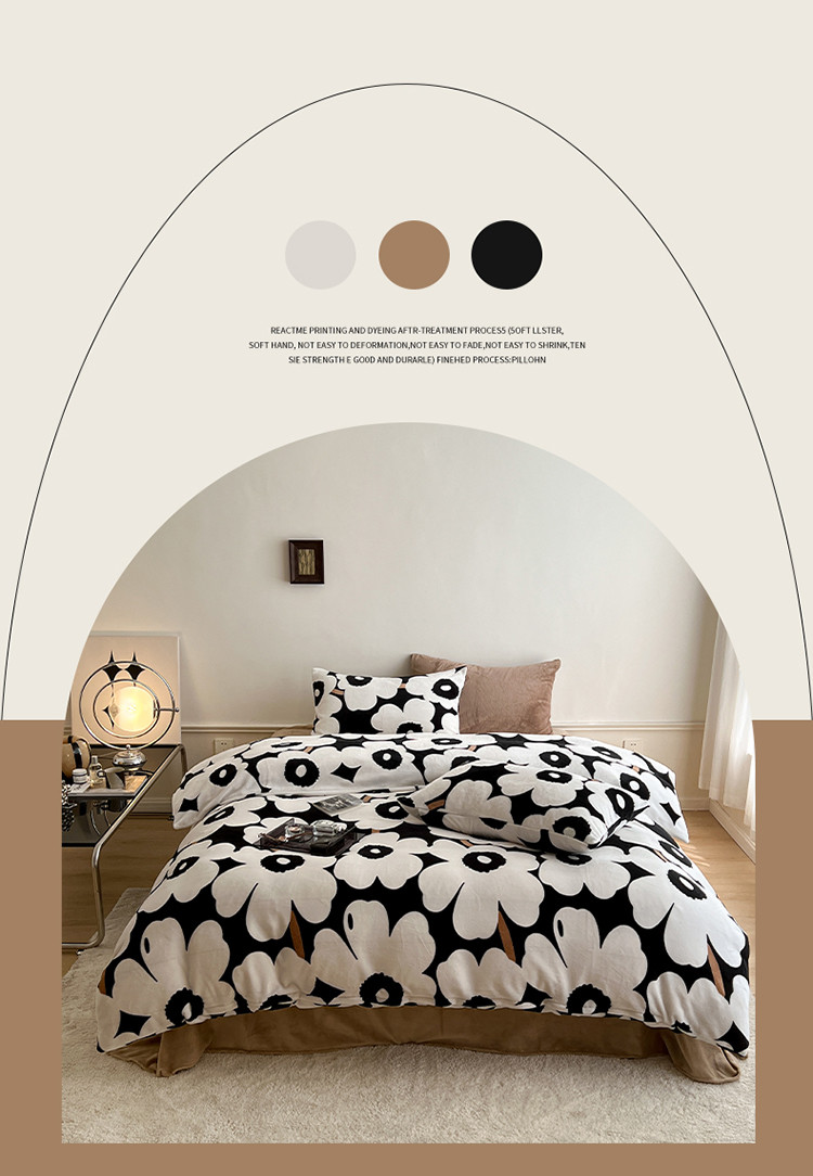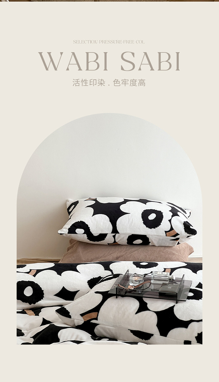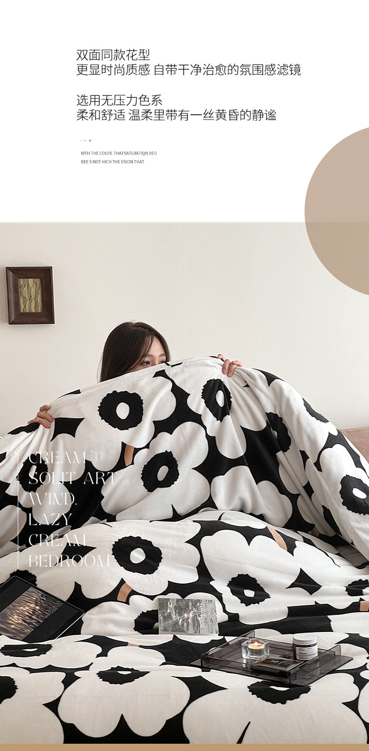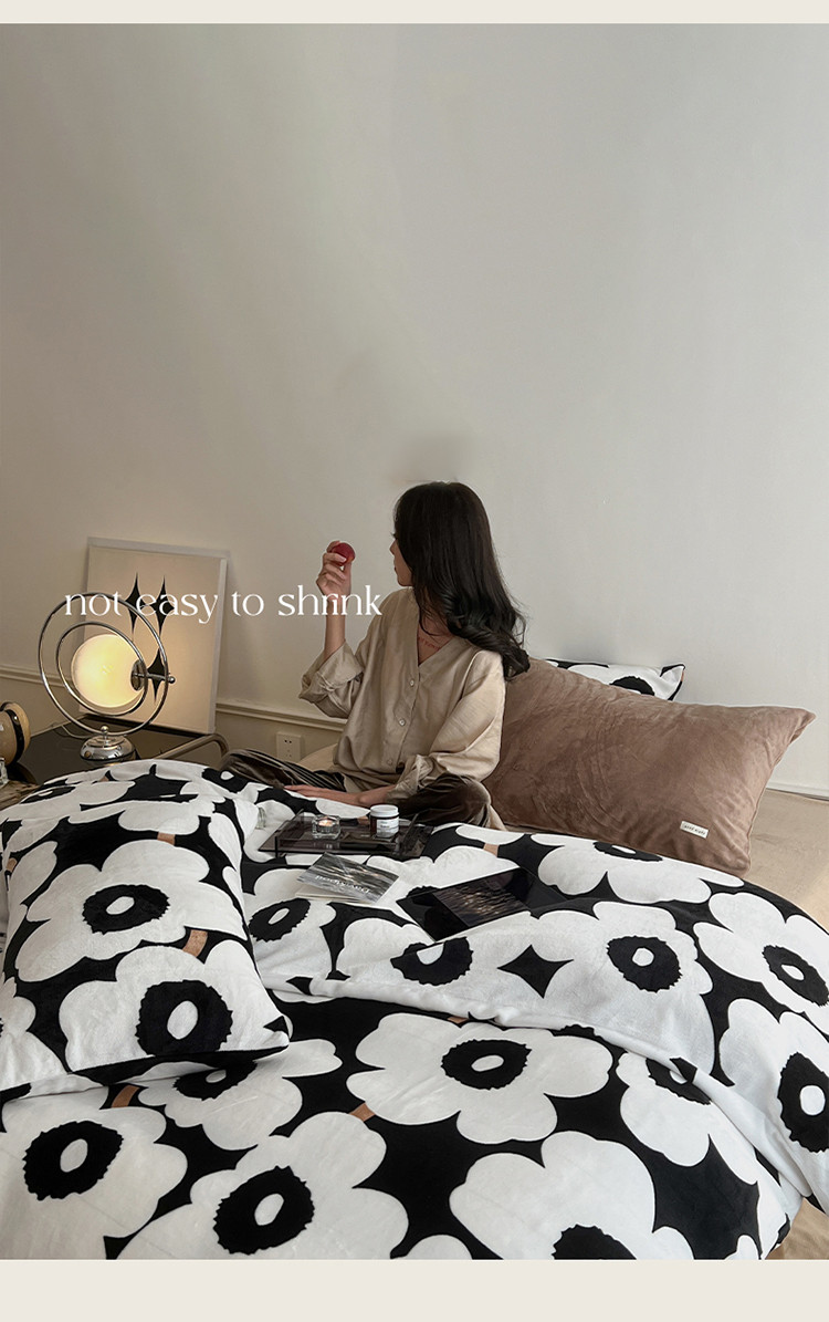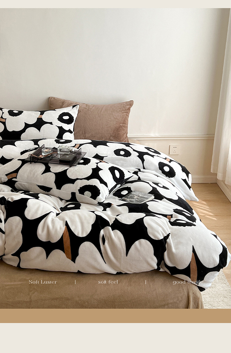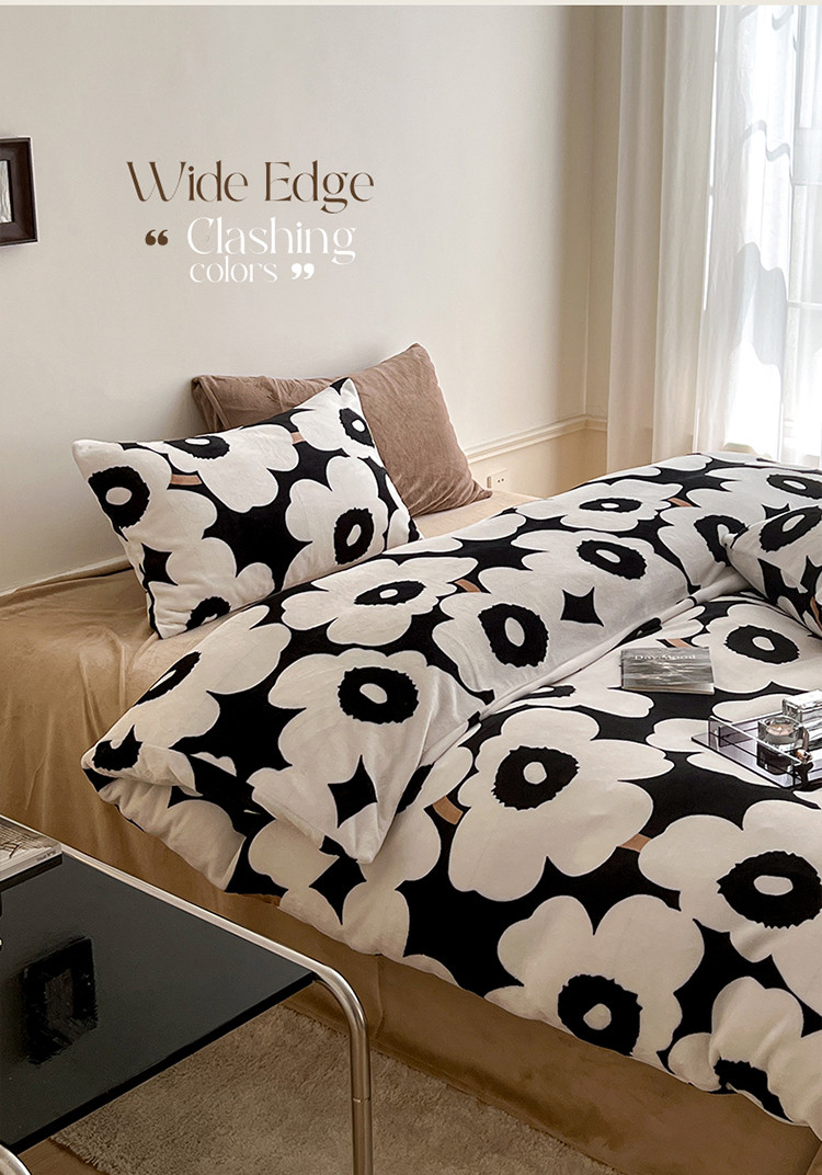 当前位置: 91家纺网 > 商品网购 > 床品套件 > 四件套 > 牛奶绒四件套 > 圆岛家纺 2022新款230克高克重牛奶绒保暖四件套 黑白大霓花