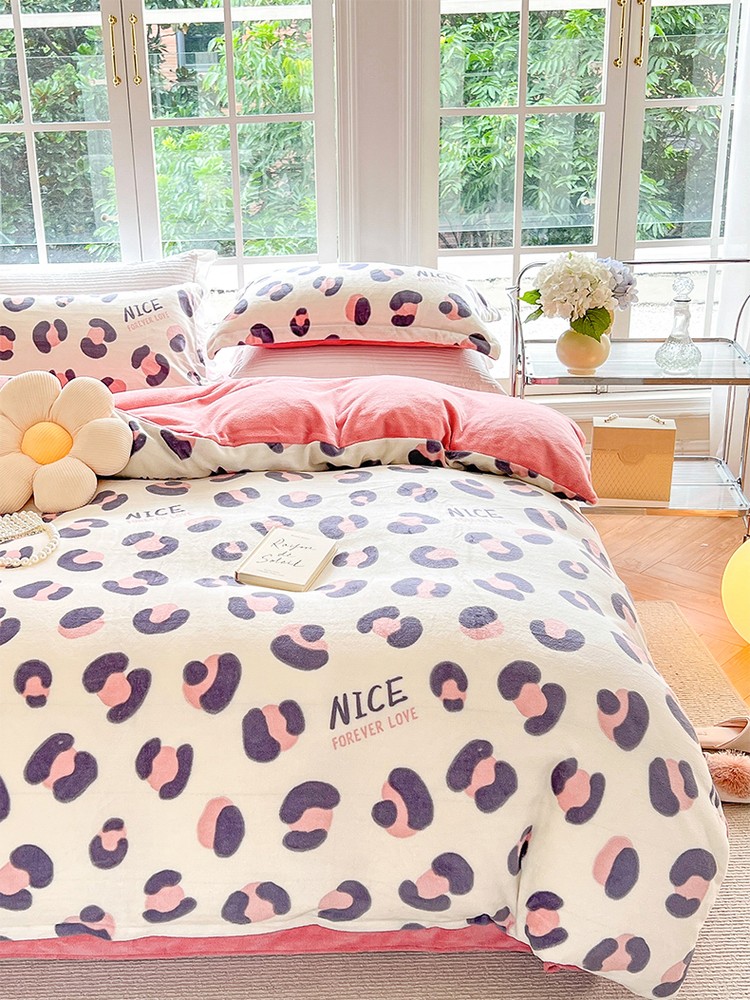 优彩 2022新款高克重印花牛奶绒三件套四件套 粉红豹