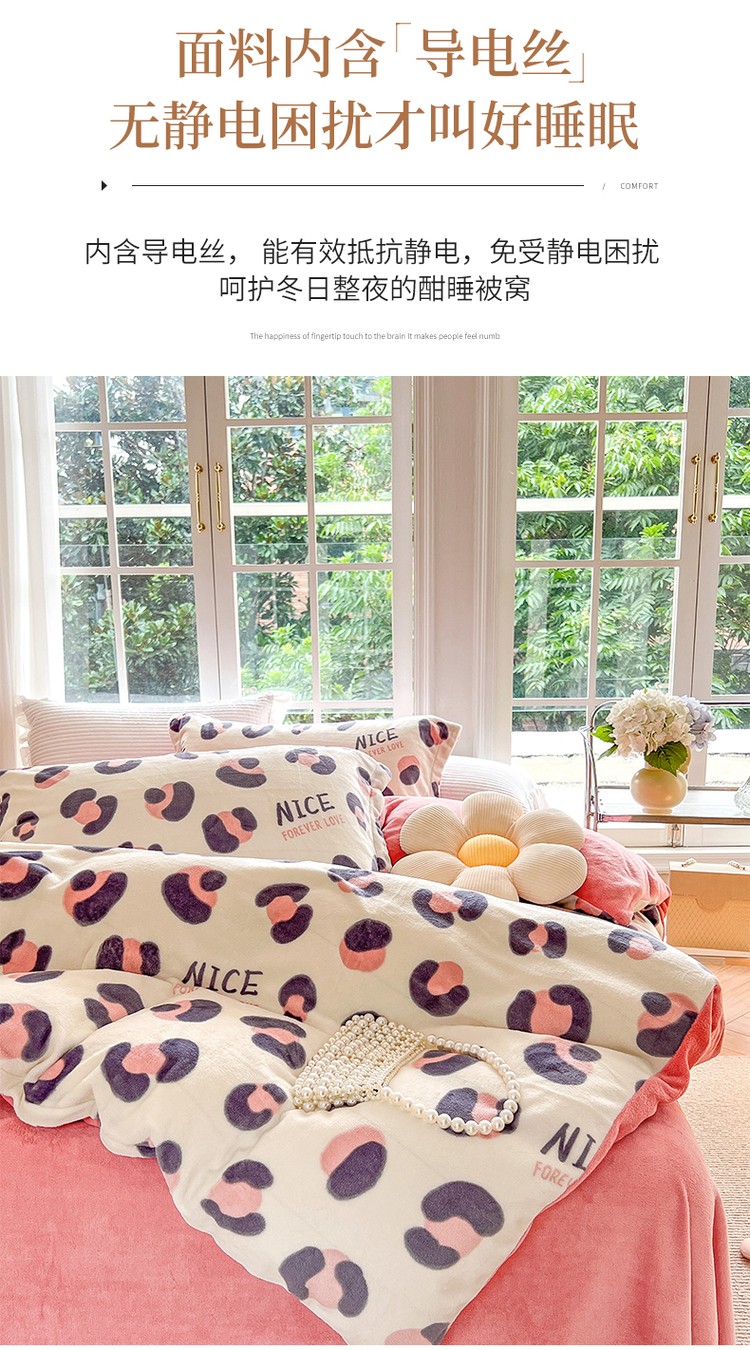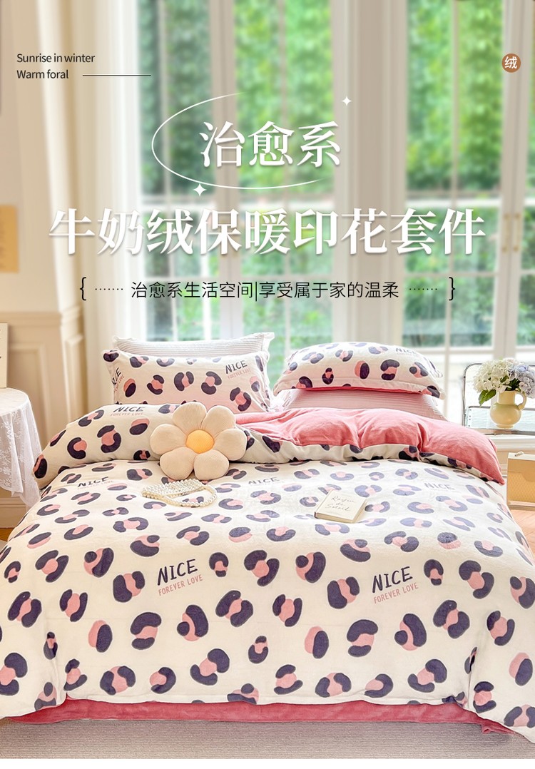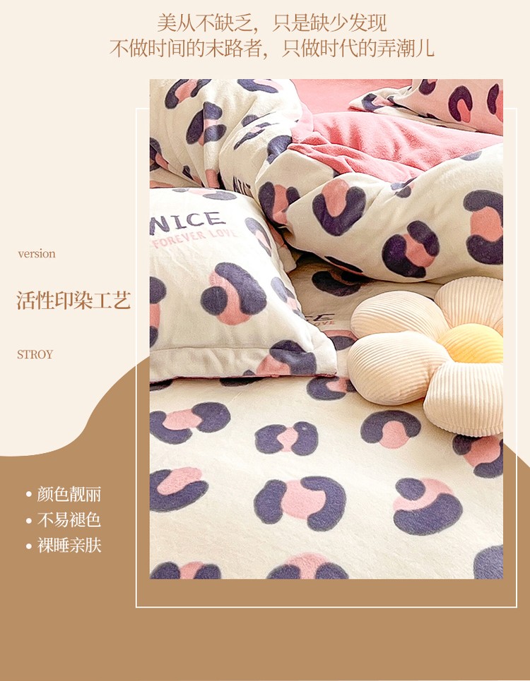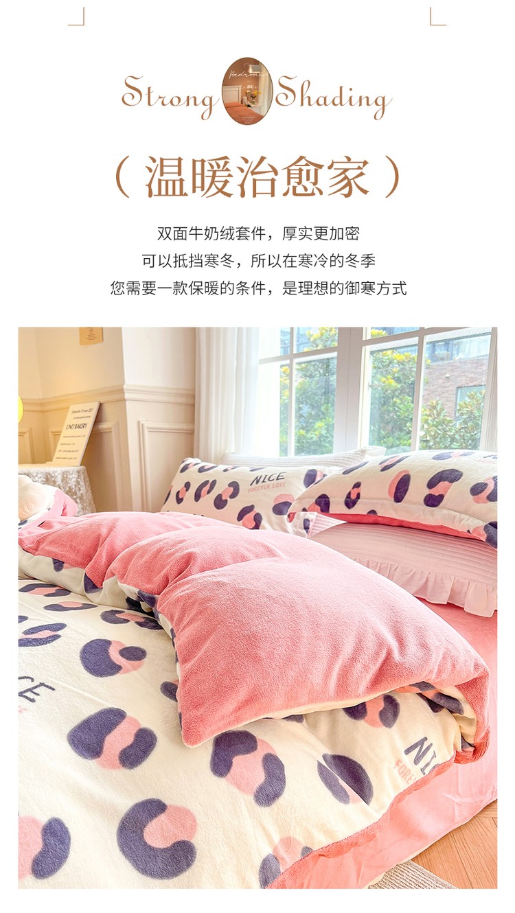 商品名称:优彩 2022新款高克重印花牛奶绒三件套四件套 粉红豹