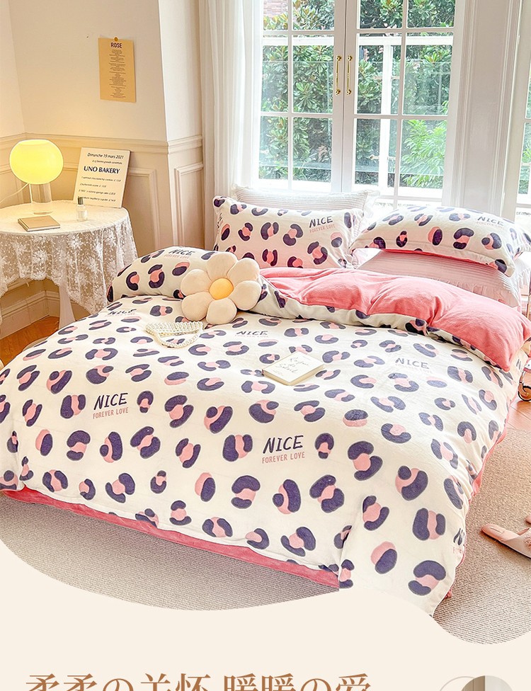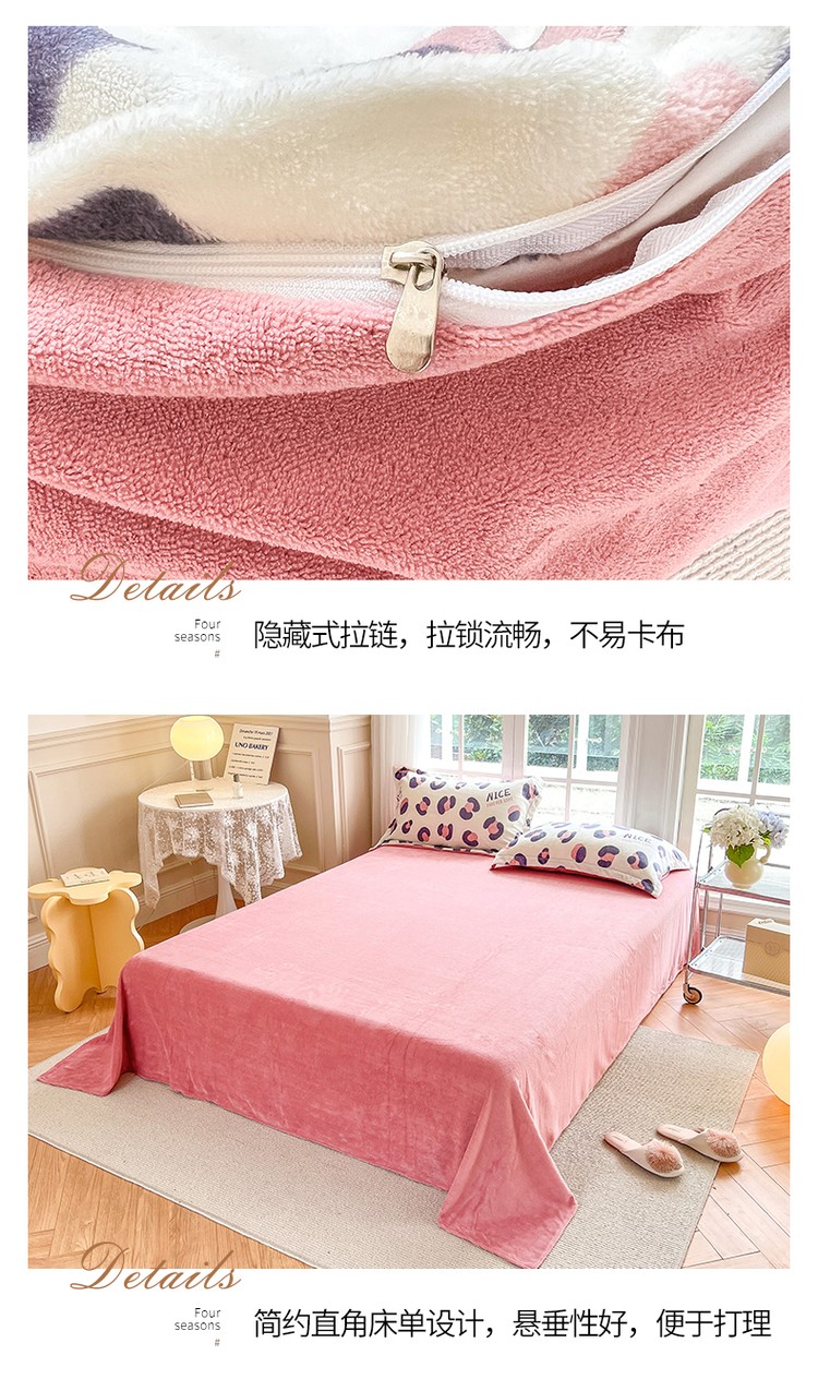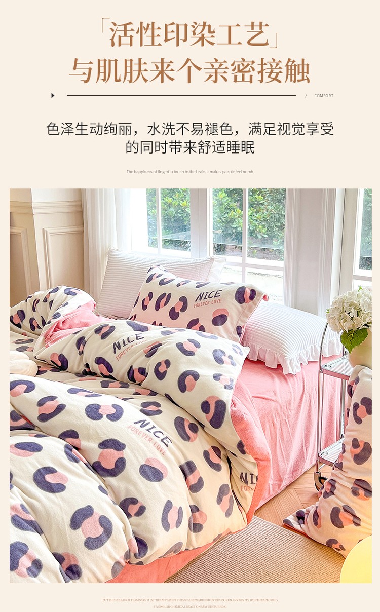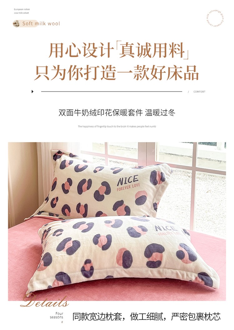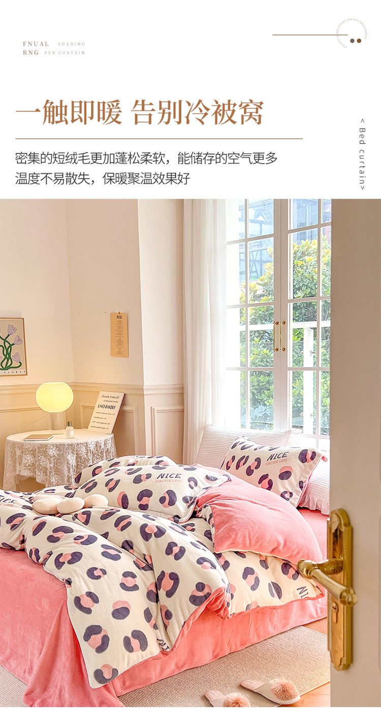 商品名称:优彩 2022新款高克重印花牛奶绒三件套四件套 粉红豹