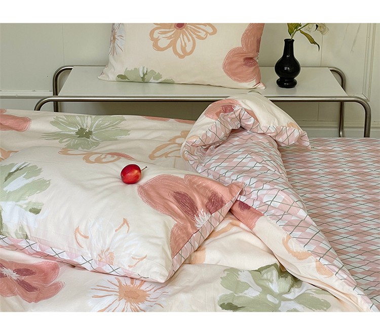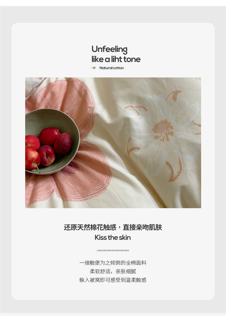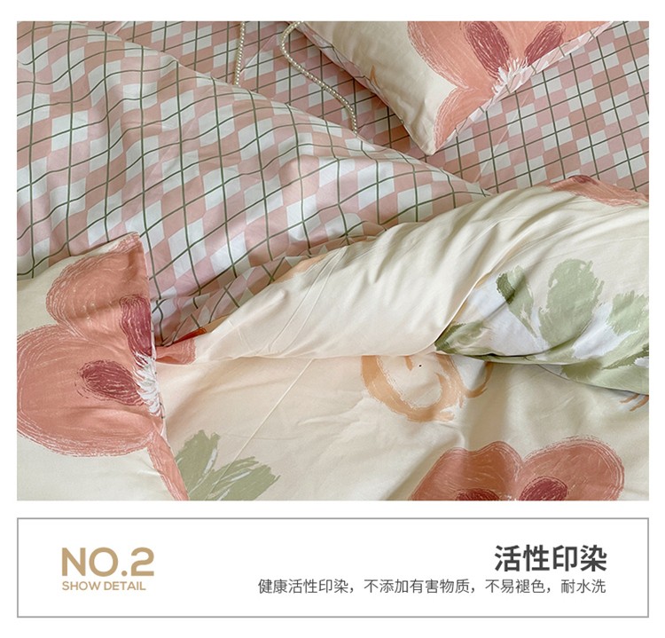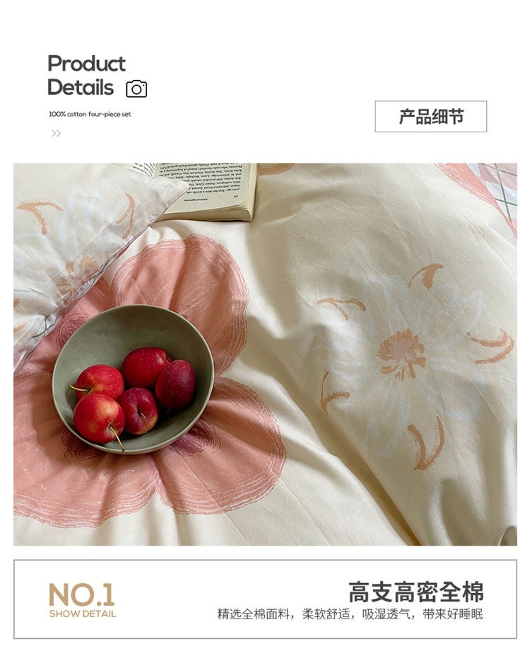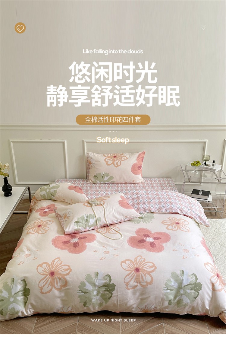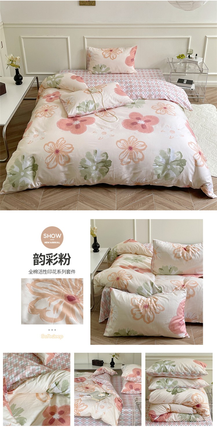 商品名称:窝米 2022秋季新品活性印花全棉四件套12款 韵彩粉