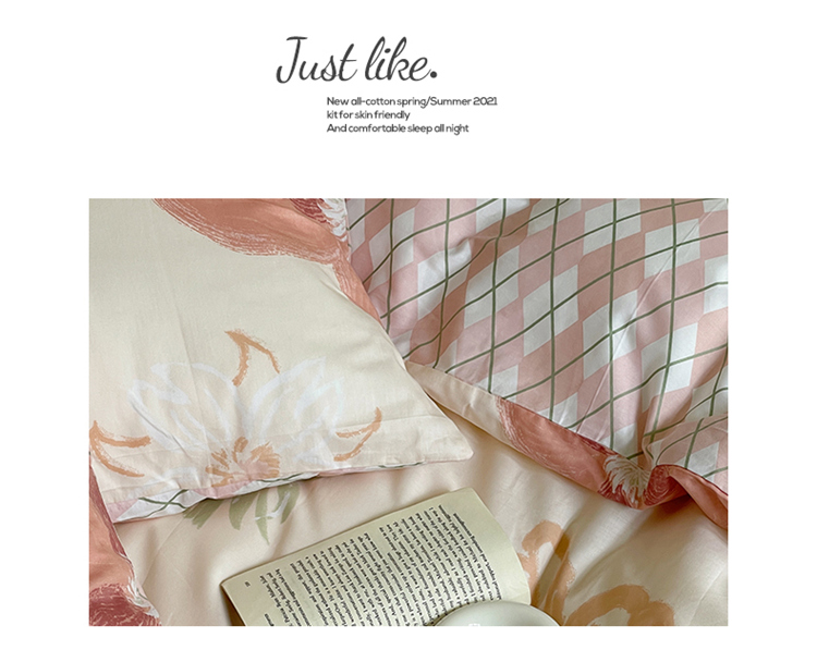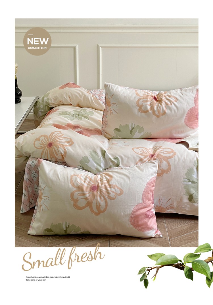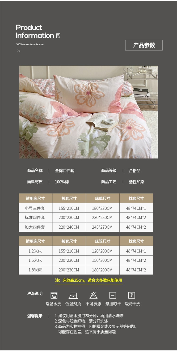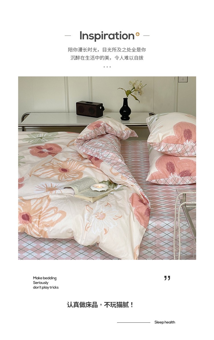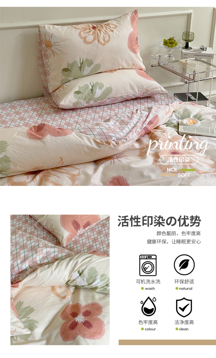 商品名称:窝米 2022秋季新品活性印花全棉四件套12款 韵彩粉