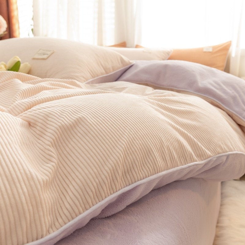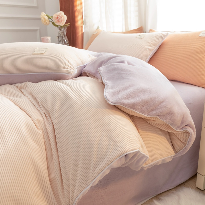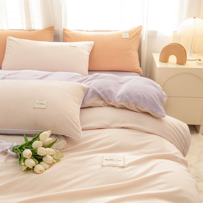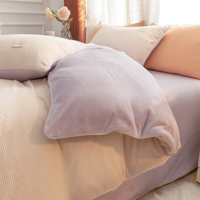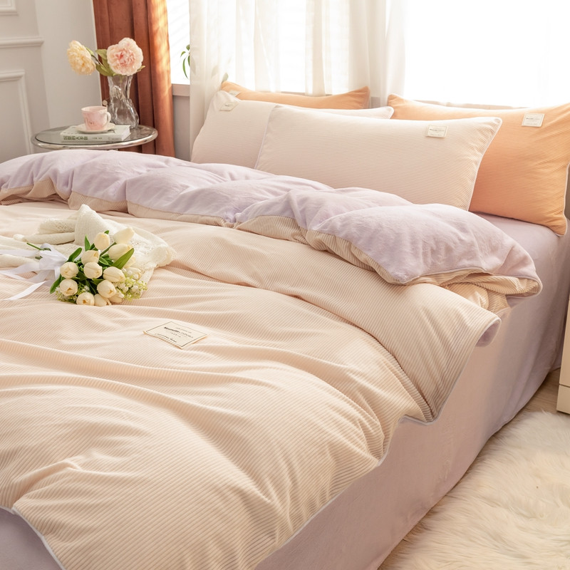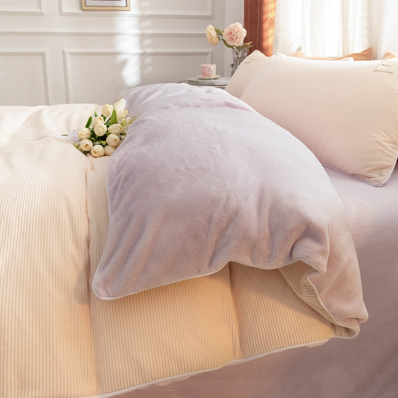 当前位置: 91家纺网 > 商品网购 > 床品套件 > 四件套 > 牛奶绒四件套 > 秀色A类加厚保暖牛奶绒被套珊瑚绒ins风四件套奶昔白+香芋紫
