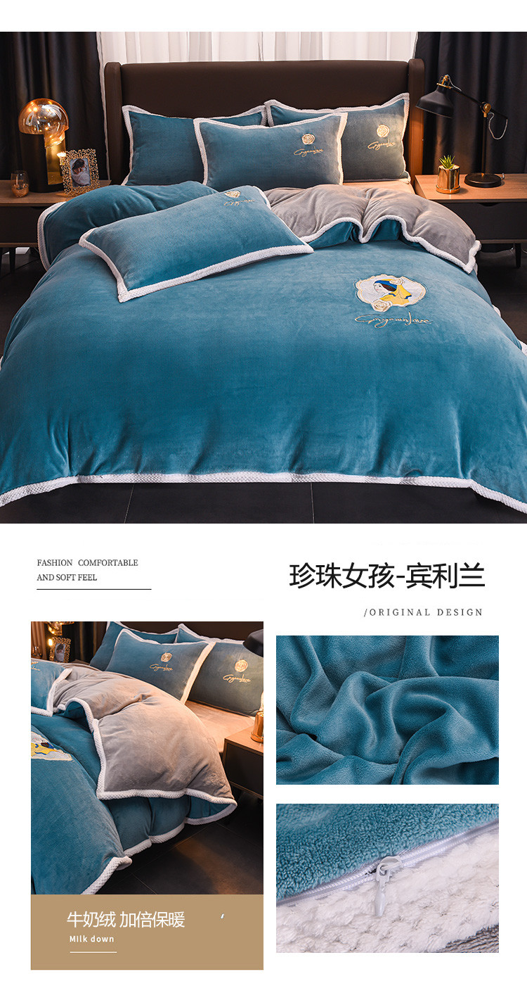 商品名称:(总)芃成 2022新款牛奶绒刺绣包边四件套