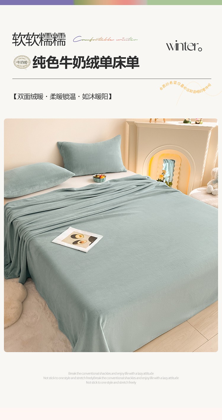眠帛 2022新款纯色牛奶绒单床单 繁星蓝