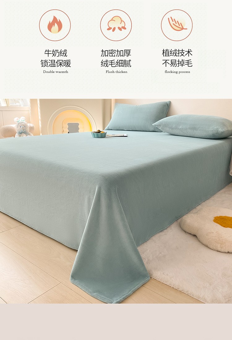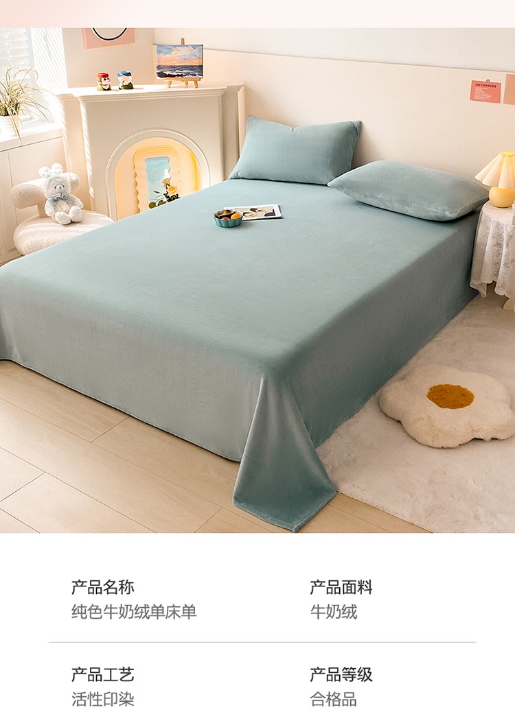 商品名称:眠帛 2022新款纯色牛奶绒单床单 繁星蓝
