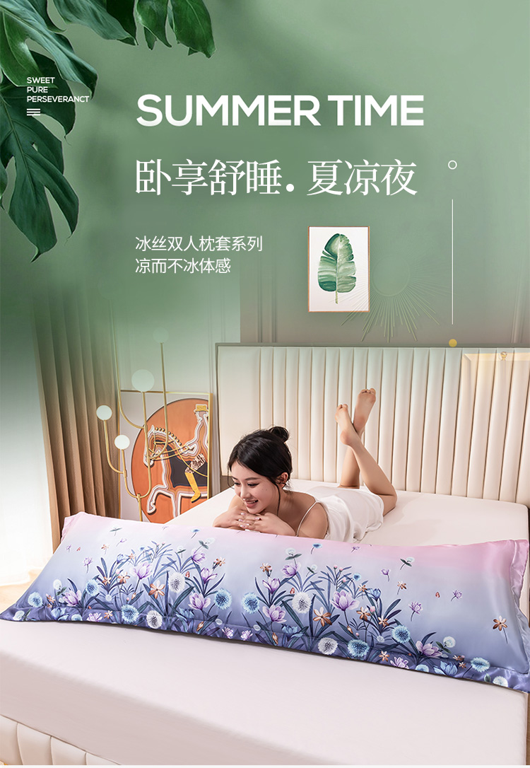 圣比熊新款大版双人可水洗冰丝夏季单人枕头套丝滑宿舍枕芯套迷雾